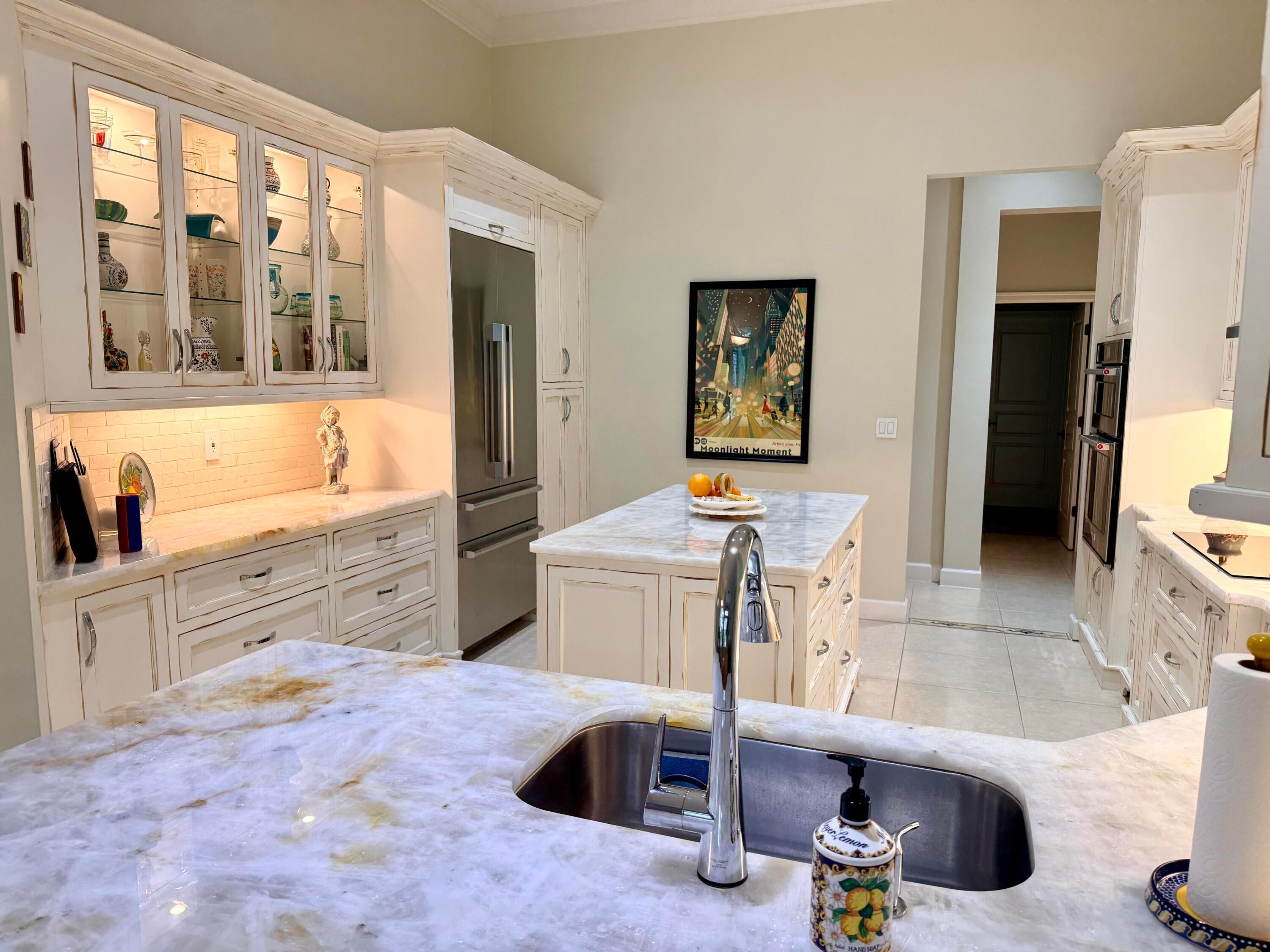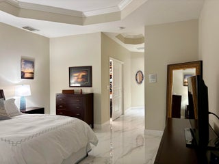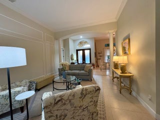 Beautifully renovated 4BR/3BA home in the gated community of The Vineyards in Port Saint Lucie, set on a quiet cul-de-sac with serene preserve views. A travertine-tiled entry and double impact-rated glass doors create a striking first impression. Inside, formal living and dining areas give an elegant welcome and flow to sliding glass doors opening to the outdoor living space. The remodeled kitchen features custom cabinetry, quartzite countertops, new appliances, and a Signature 36-inch counter-depth refrigerator. A separate bar area includes matching cabinetry and quartzite counters. Tile flooring throughout, including a spacious primary suite with 2'x4' porcelain tile, dual closets, and a fully redesigned bathroom. One guest bedroom has an en-suite bath, with two additional bedrooms