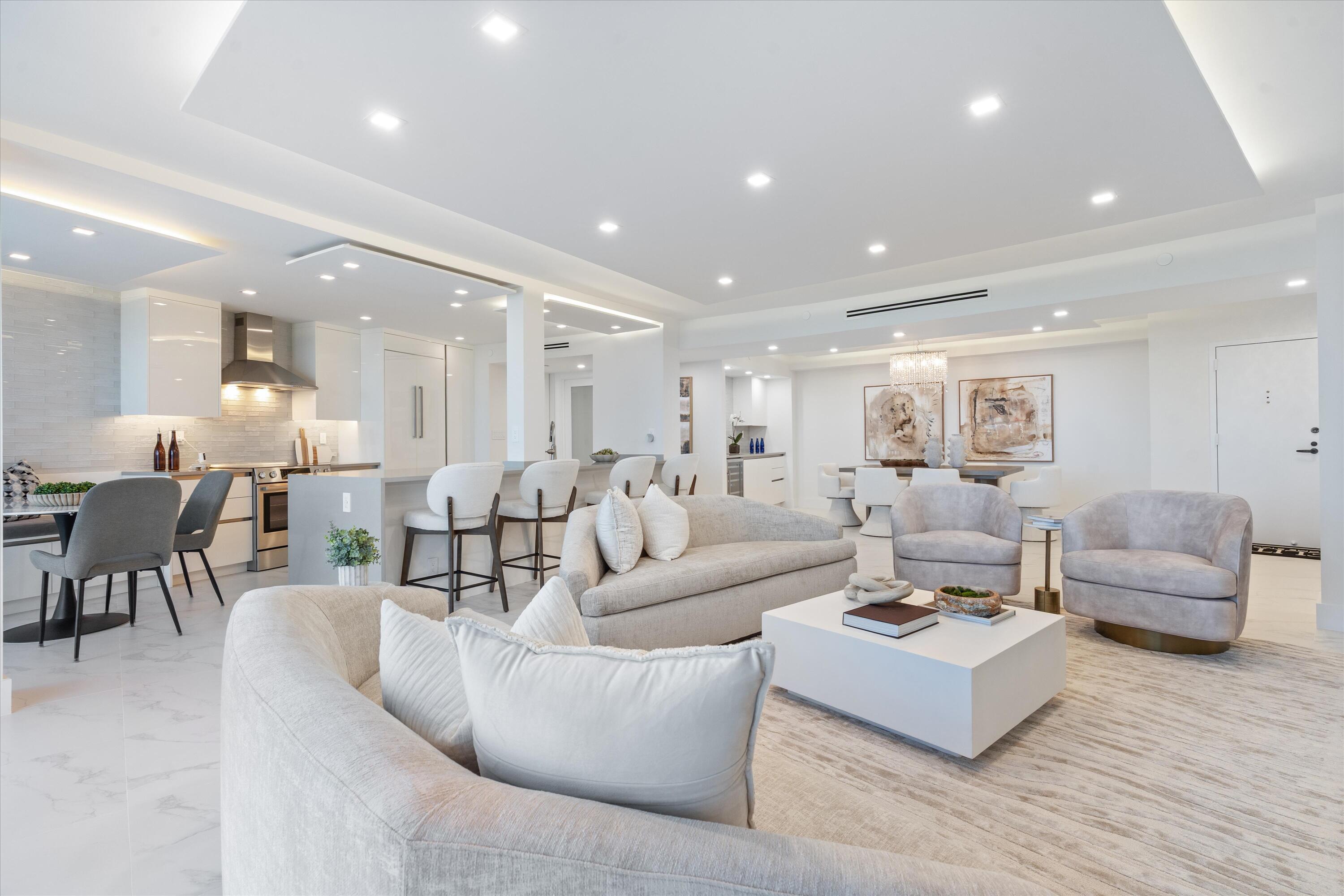 Highly desired SPLIT-BEDROOM floor plan with INTRACOASTAL VIEWS from the 5TH floor, visible from every bedroom. This 2 bed/2 bath residence offers 2050 sq ft and features TWO PRIMARY SUITES. Completely upgraded in 2025 with a true quality renovation, including all new electrical and plumbing, new AC, new water heater and IMPACT GLASS throughout. Modern dropped ceilings with integrated LED lighting throughout. The expansive open-concept layout features a beautifully designed chef's kitchen with Bosch appliances, ample cabinetry, and a clean, modern finish. Located in a fully renovated building with ALL ASSESSMENTS PAID IN FULL by the seller. Building offers: 24-hour concierge and security, PRIVATE BEACH CLUB, tennis courts, resort-style pool, clubhouse, gym, and a marina with boat slips.