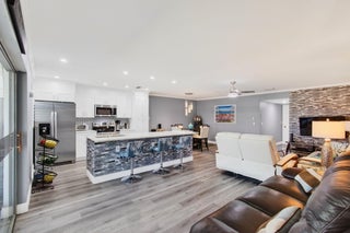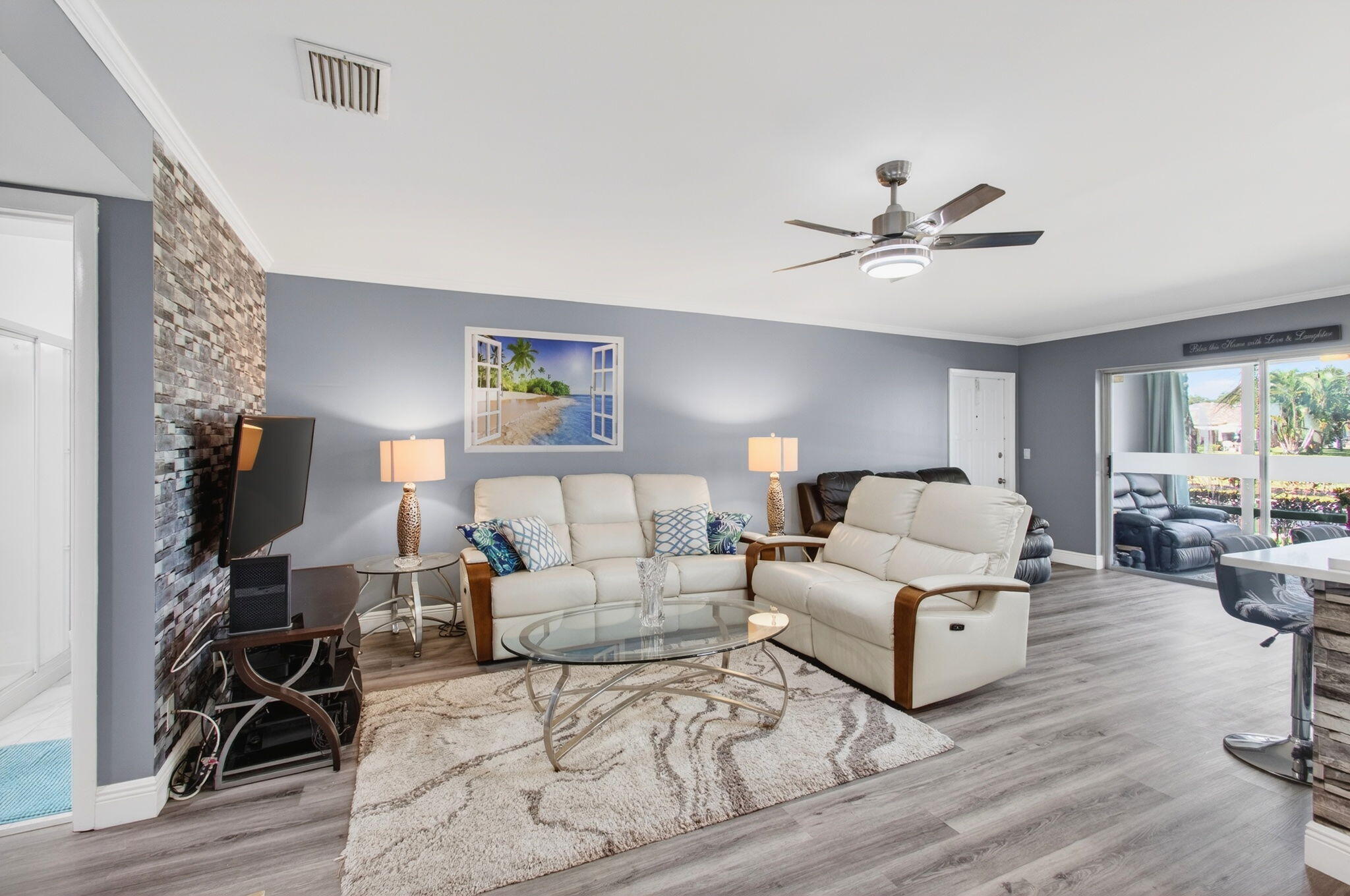 This remodeled 1BR/2BA villa shows clear pride in ownership. This updated home features: an open-concept kitchen with white soft-close shaker cabinets, quartz countertops, a neutral subway tile backsplash, High Hat Lighting, neutral vinyl flooring throughout, a full guest bathroom in the hallway, all-new hurricane-impact windows, window plantation shutters, AC August 2023, no popcorn ceilings are smooth, and crown molding, enclosed Florida room under air, back yard patio where you can BBQ. Enjoy Florida living at its best in this very active 55+ community where you'll enjoy many planned social activities, a large, heated resort-style saltwater pool with a clubhouse, pickleball courts, tennis courts, and shuffleboard. Located close to all amenities,just minutes to the beach and downtown Delray, where you'll discover quaint shops, open-air cafes, fine restaurants, shopping malls, theater, close to I-95/Turnpike, and Places of worship. Each building of 4 villas shares a coin-operated washer and dryer. HP6 allows rentals after 2 years of ownership, then only 3 months to 6 months (no Annual rentals). **All information is deemed reliable but not guaranteed and subject to change without notice.**