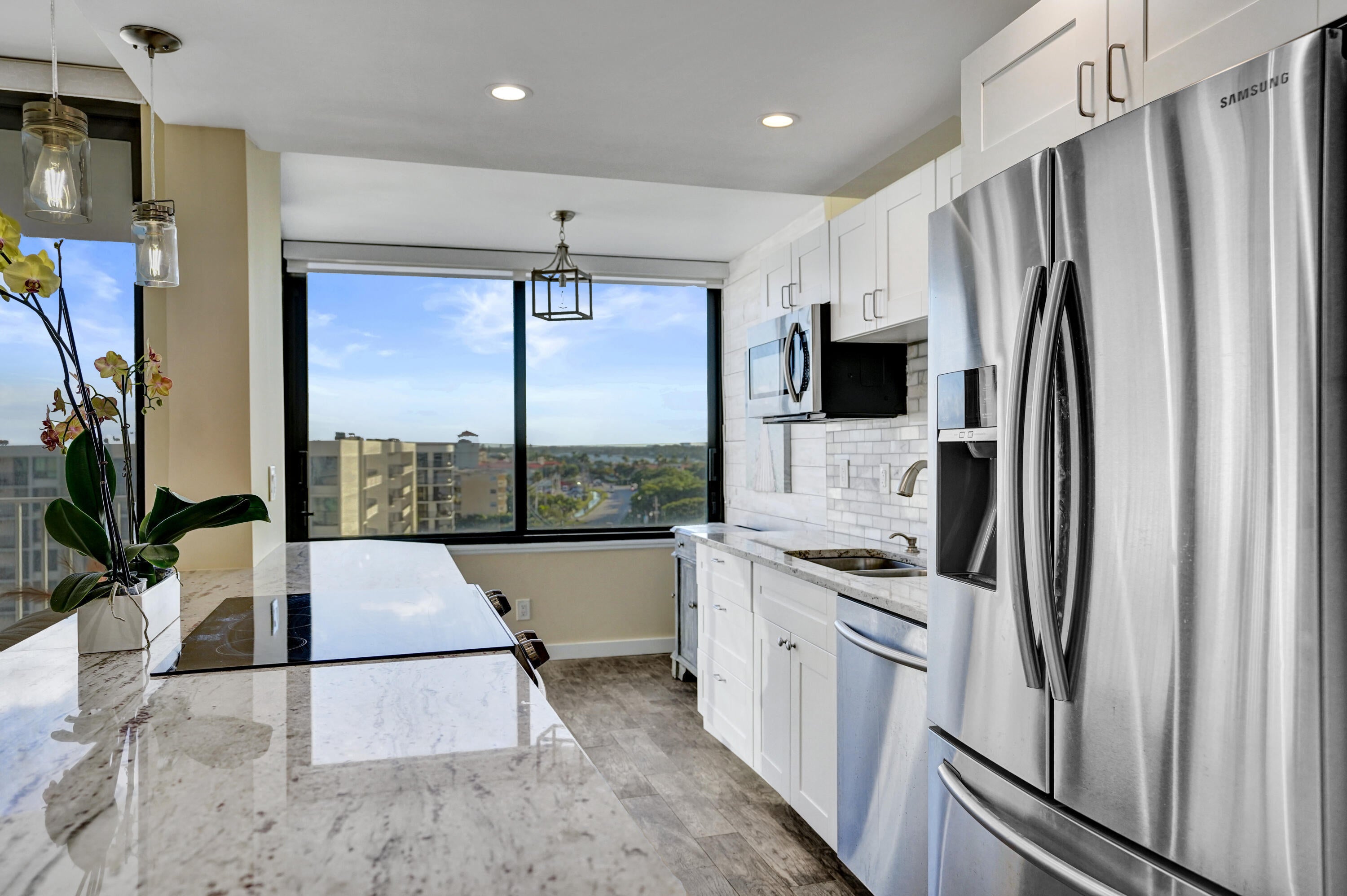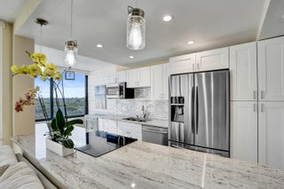 Experience oceanfront living in this updated 2-bedroom, 2-bath residence at the Mayfair House, offering both ocean and Intracoastal views. Floor to ceiling impact glass windows & doors fill the home with natural light, complemented by new tile flooring throughout and fresh interior paint. The split floor plan features an updated kitchen with granite countertops and stainless steel appliances, along with a spacious primary bathroom highlighted by a walk-in shower. Mayfair House has recently completed major improvements including a new roof, new elevators, and a redesigned lobby, with concrete restoration and hurricane upgrades completed in prior years. Enjoy sunrise views from the oceanfront deck and evening walks along Ocean Boulevard. A short distance away from shops & dining.