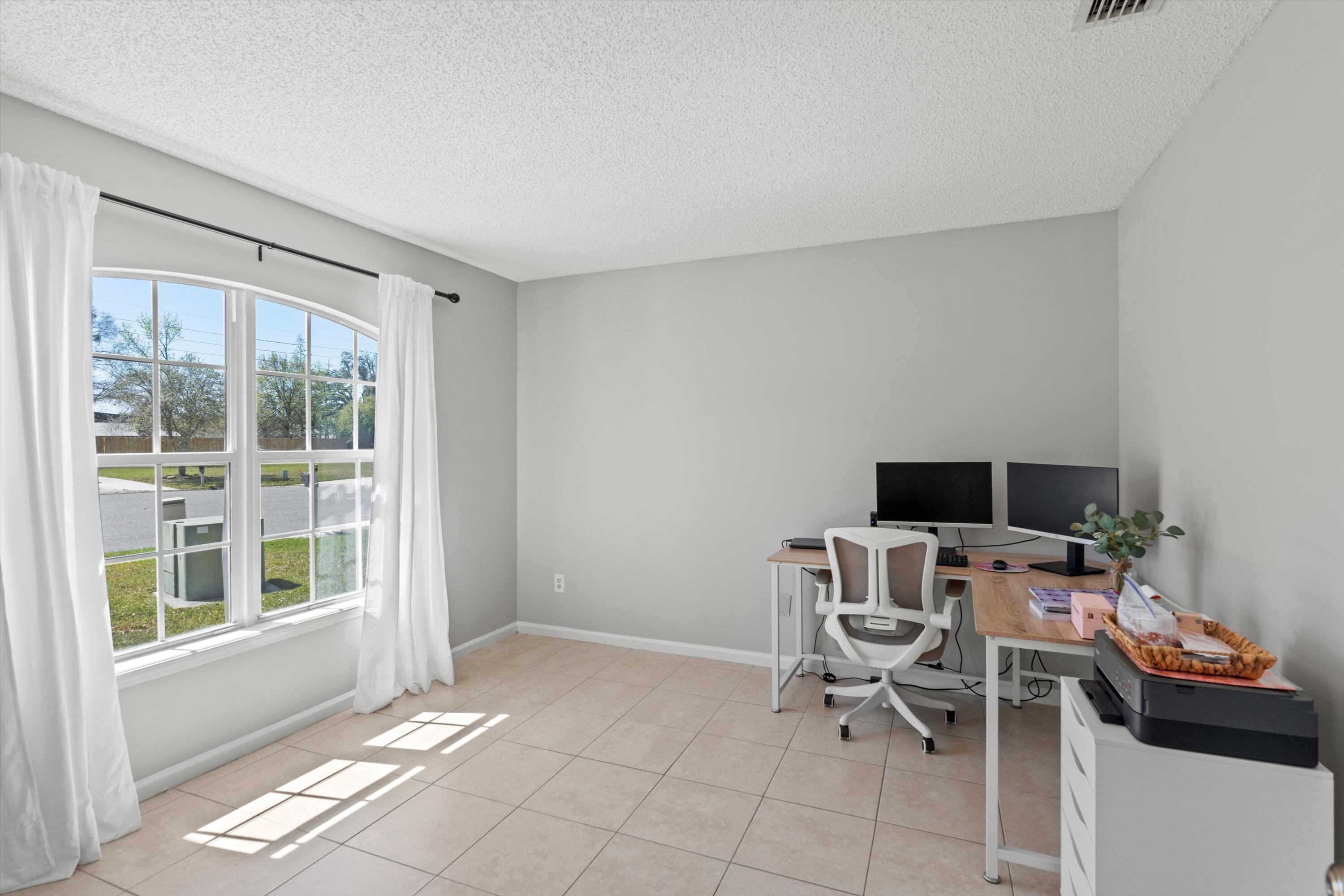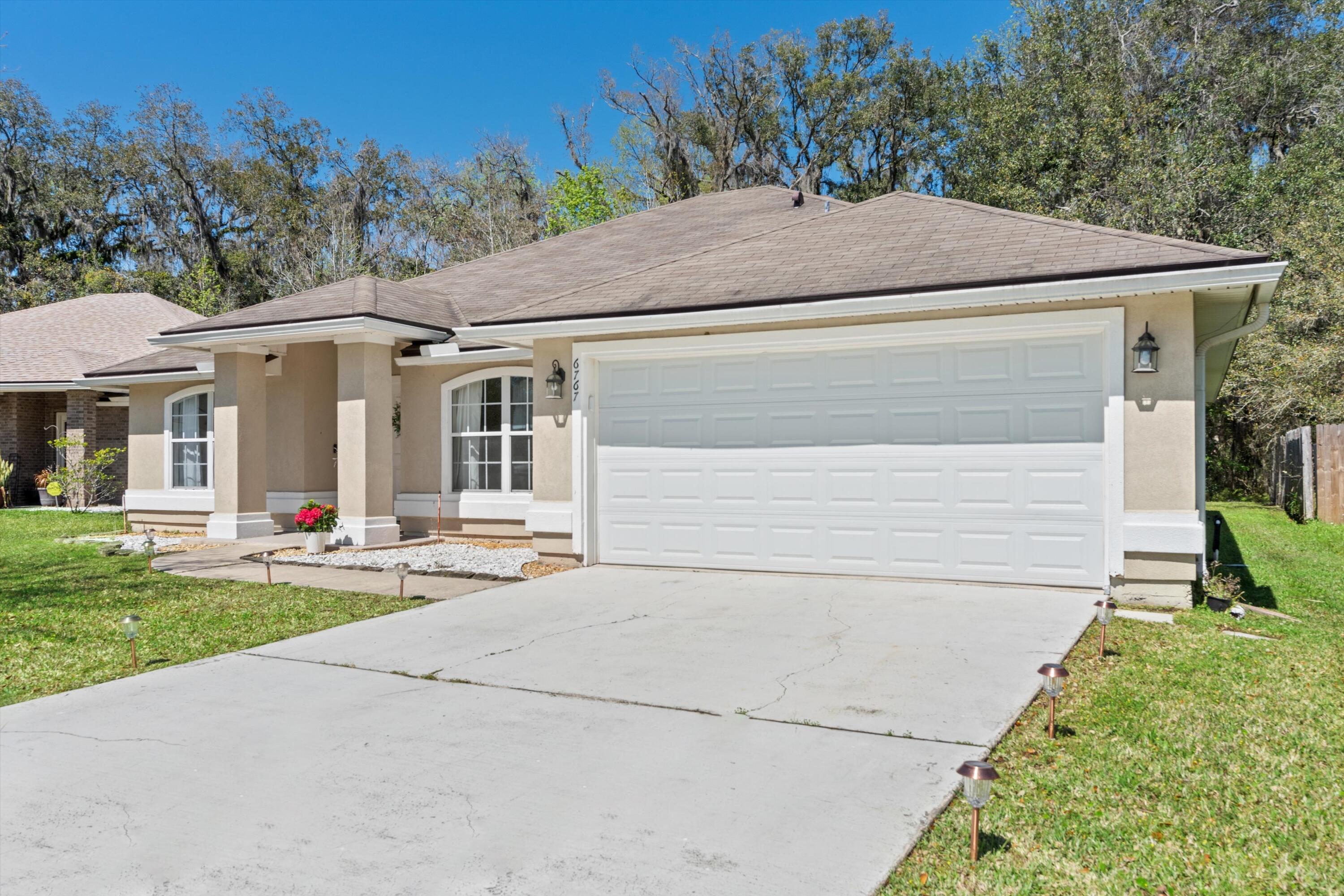 Welcome to Gentle Woods! Impeccably maintained one-story home located at the entrance of a cul-de-sac providing minimum traffic with a long driveway and two-car garage. The layout offers three bedrooms plus a separate den/office providing flexible living space suitable for everyday living, remote work or additional guest accommodations. The kitchen features shaker cabinetry, a breakfast area and 2023 appliances (dishwasher excluded). Formal dining room offers a dedicated space for gatherings, while the living room features vaulted ceilings, a cozy fireplace, tons of natural light creating a bright and welcoming main living area. Washer and dryer are conveniently housed in it's own utility room. Tile flooring runs through the main living areas with comfy carpetedbedrooms. Recent updates include a 2023 air conditioning system and 2019 roof! The home also benefits from a hip roof design and documented wind mitigation features, adding peace of mind and long-term ownership value. The backyard offers a private setting with room for a pool or future outdoor enhancements, making it well-suited for both personal enjoyment and long-term value. Gentle Woods has a low HOA of only $200 a year and no rental restrictions, offering flexibility for owner-occupants or investors!