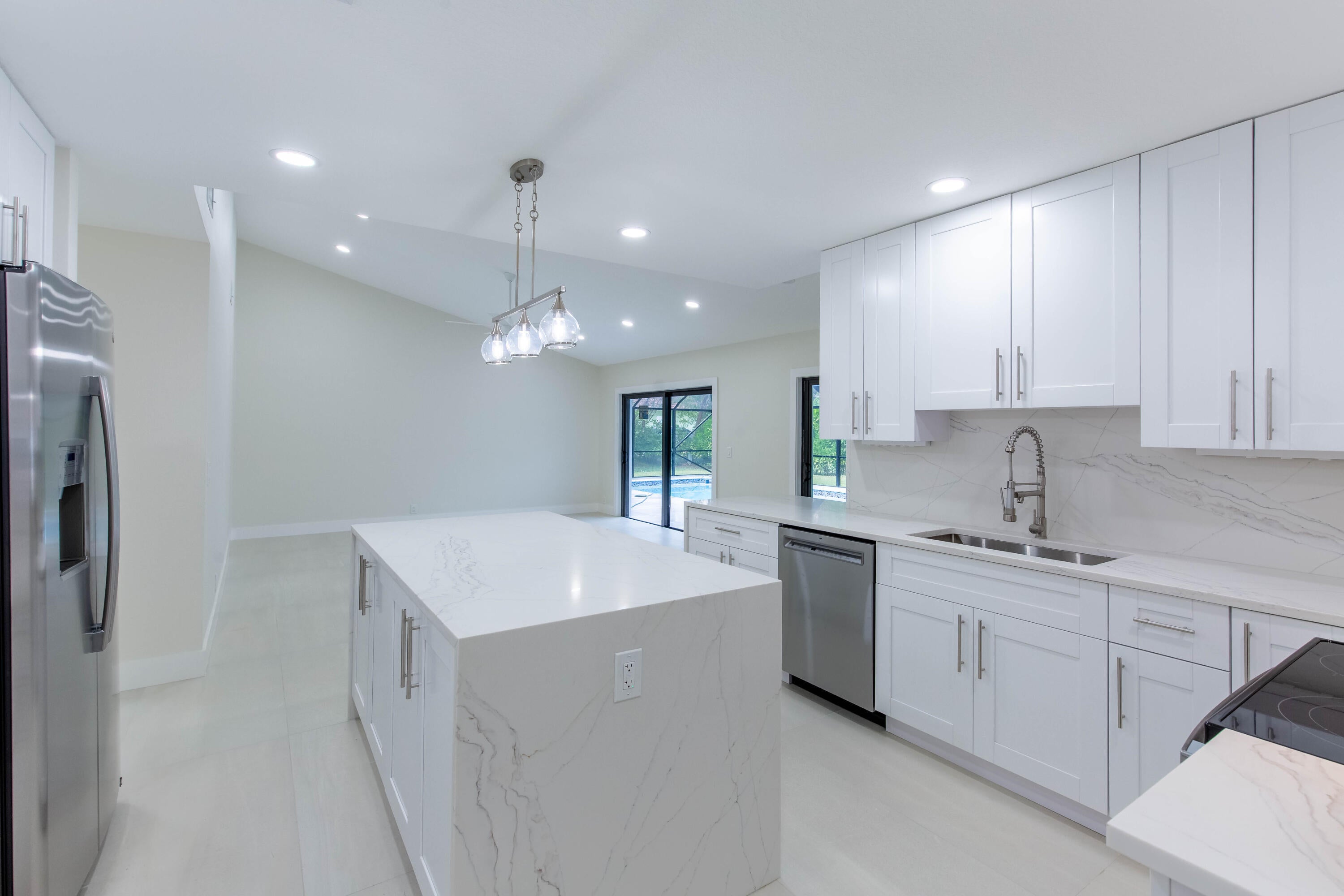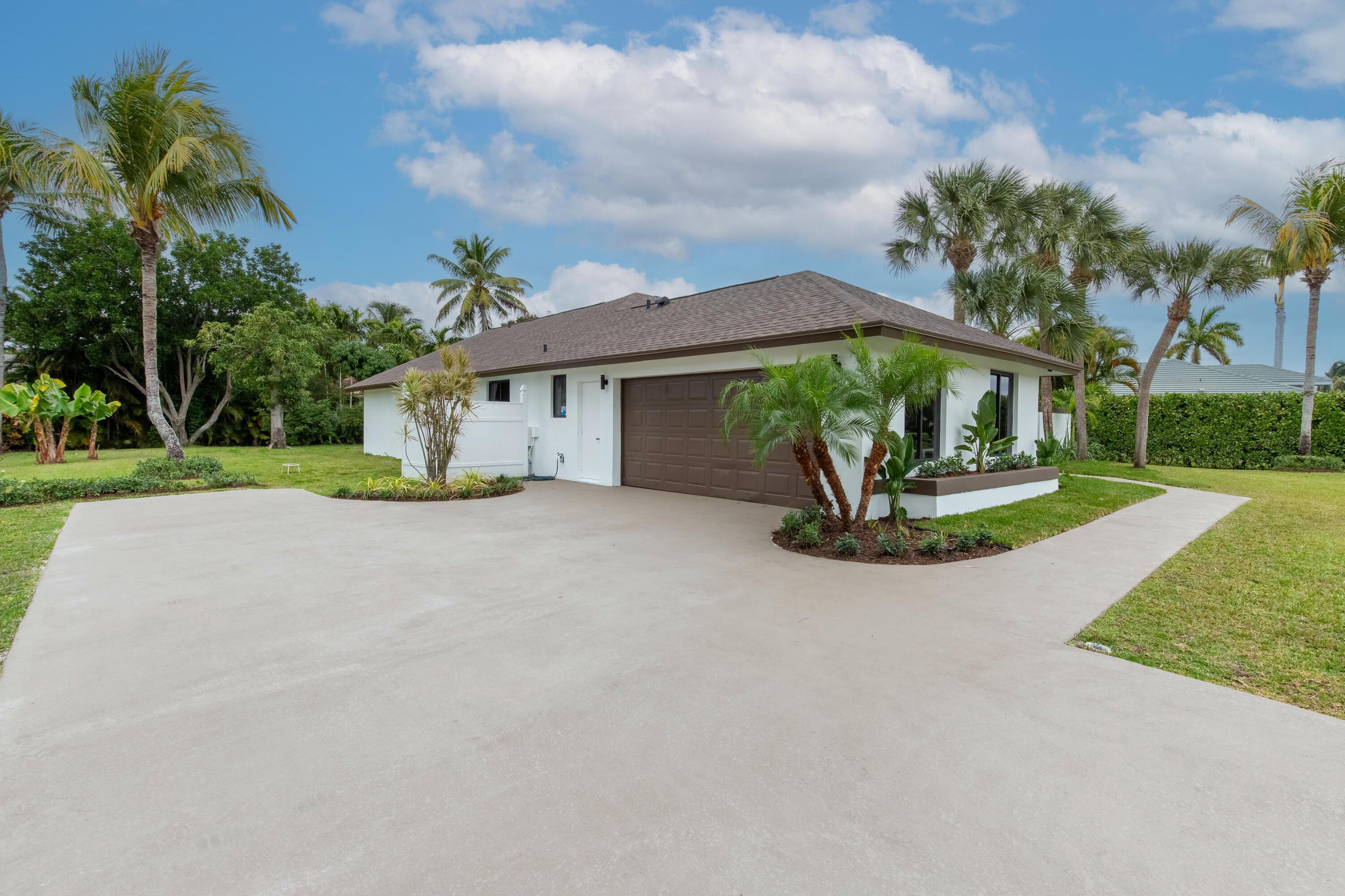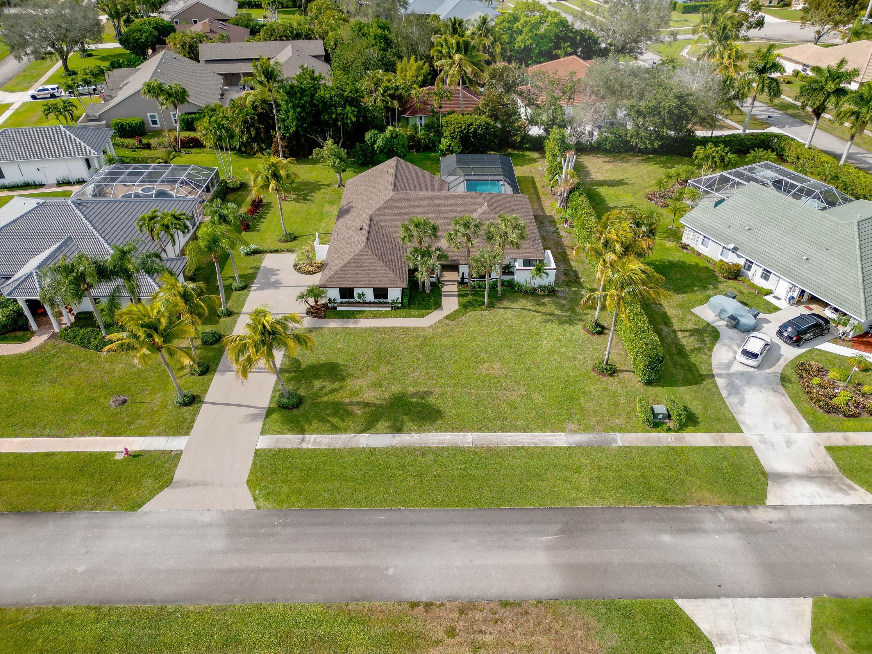 Modern luxury in the heart of Wellington. Large 1/2 acre lot with plenty of beautiful palm trees. Completely rebuilt in 2025 with new roof, new impact windows and doors, new designer kitchen & bathrooms. Screened in swimming pool with new diamond brite & outdoor shower as well as custom stone pool deck. Large covered loggia with room for outdoor kitchen. Built in closets throughout. All new appliances including laundry set. Modern landscaping provides great curb appeal. Must see!