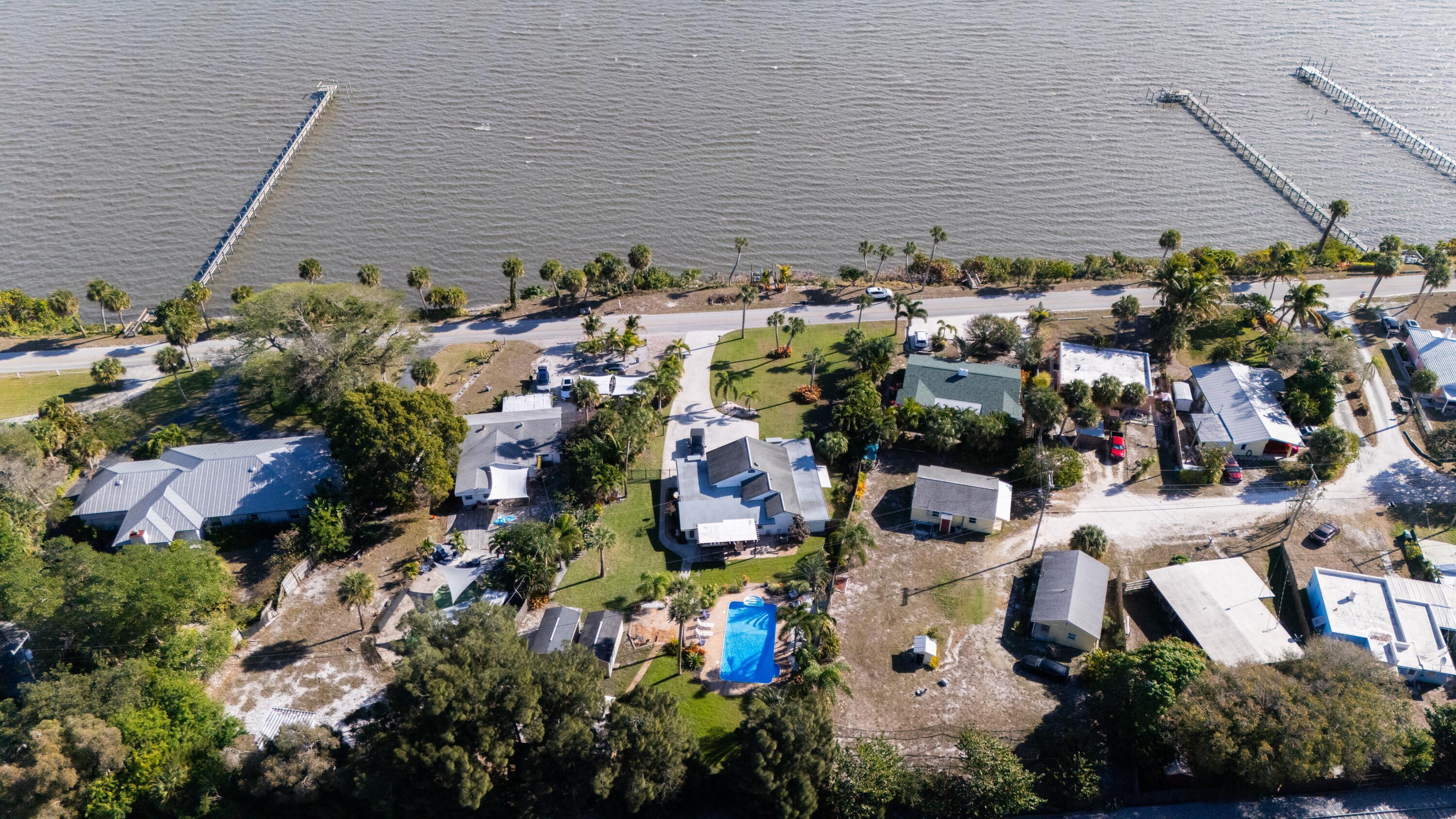 Experience the ultimate coastal lifestyle in this stunning waterfront pool home situated on nearly an acre along the prestigious and historic Indian River Drive. This meticulously renovated 3-bedroom, 2-bathroom residence offers over 2,400 square feet of bright, open living space featuring ceramic tile throughout, two cozy propane fireplaces, and expansive windows that frame breathtaking views of the Indian River Lagoon. The modern kitchen is a chef's dream with granite countertops, stainless steel appliances, and a beautiful outlook where you might even spot manatees or dolphins. Retreat to the spa-like primary suite, which now features dual vanities, a soaking tub, and a glass-enclosed shower, complemented by a massive 9x13 walk-in closet. Step outside to your private tropical oasis feaExperience the ultimate coastal lifestyle in this stunning waterfront pool home situated on nearly an acre along the prestigious and historic Indian River Drive. This meticulously renovated 3-bedroom, 2-bathroom residence offers over 2,400 square feet of bright, open living space featuring ceramic tile throughout, two cozy propane fireplaces, and expansive windows that frame breathtaking views of the Indian River Lagoon. The modern kitchen is a chef's dream with granite countertops, stainless steel appliances, and a beautiful outlook where you might even spot manatees or dolphins. Retreat to the spa-like primary suite, which now features dual vanities, a soaking tub, and a glass-enclosed shower, complemented by a massive 9x13 walk-in closet. Step outside to your private tropical oasis featuring a massive 18x40-foot pool with LED lighting and deck jets, a 12x32 veranda, and a private path leading to over 100 feet of direct water frontage with a large riverfront deck for fishing or enjoying the sunrise. Complete with a private well, Pelican water purification system, and two large outbuildings for extra storage, this rare find offers unmatched privacy and luxury less than five miles from vibrant downtown Fort Pierce.