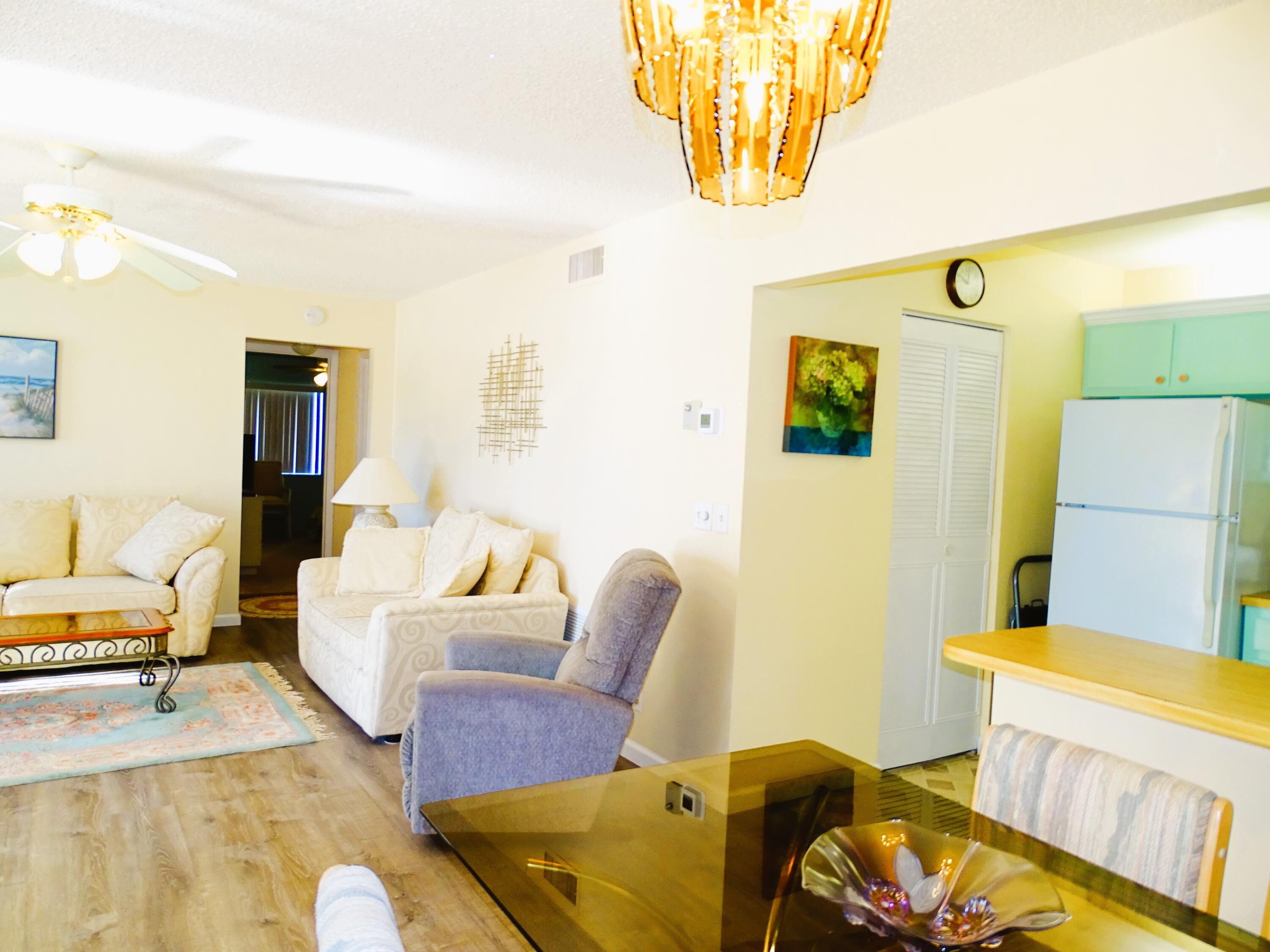 Lovely 2nd Floor 2bed/1bath Fully Furnished Condo located in the desirable 55+ and over community. This home is immaculate. Tons of Storage including walk-in closets in both bedrooms plus additional storage in Laundry/Utility room and another Closet on the front porch. Laundry Utility room comes with a Full Size Washer and Dryer. The basic cable included by the HOA . Short walk to clubhouse, shuffleboard, pool and other amenities. Schedule your Showing today before it's to Late!! Seasonal rental are welcome