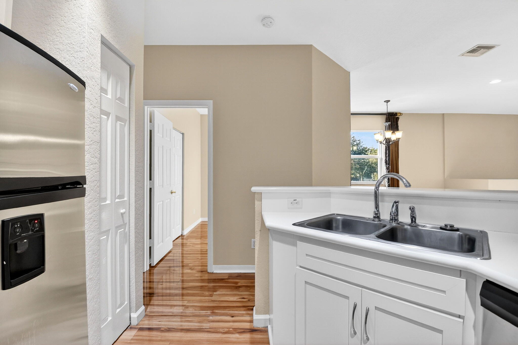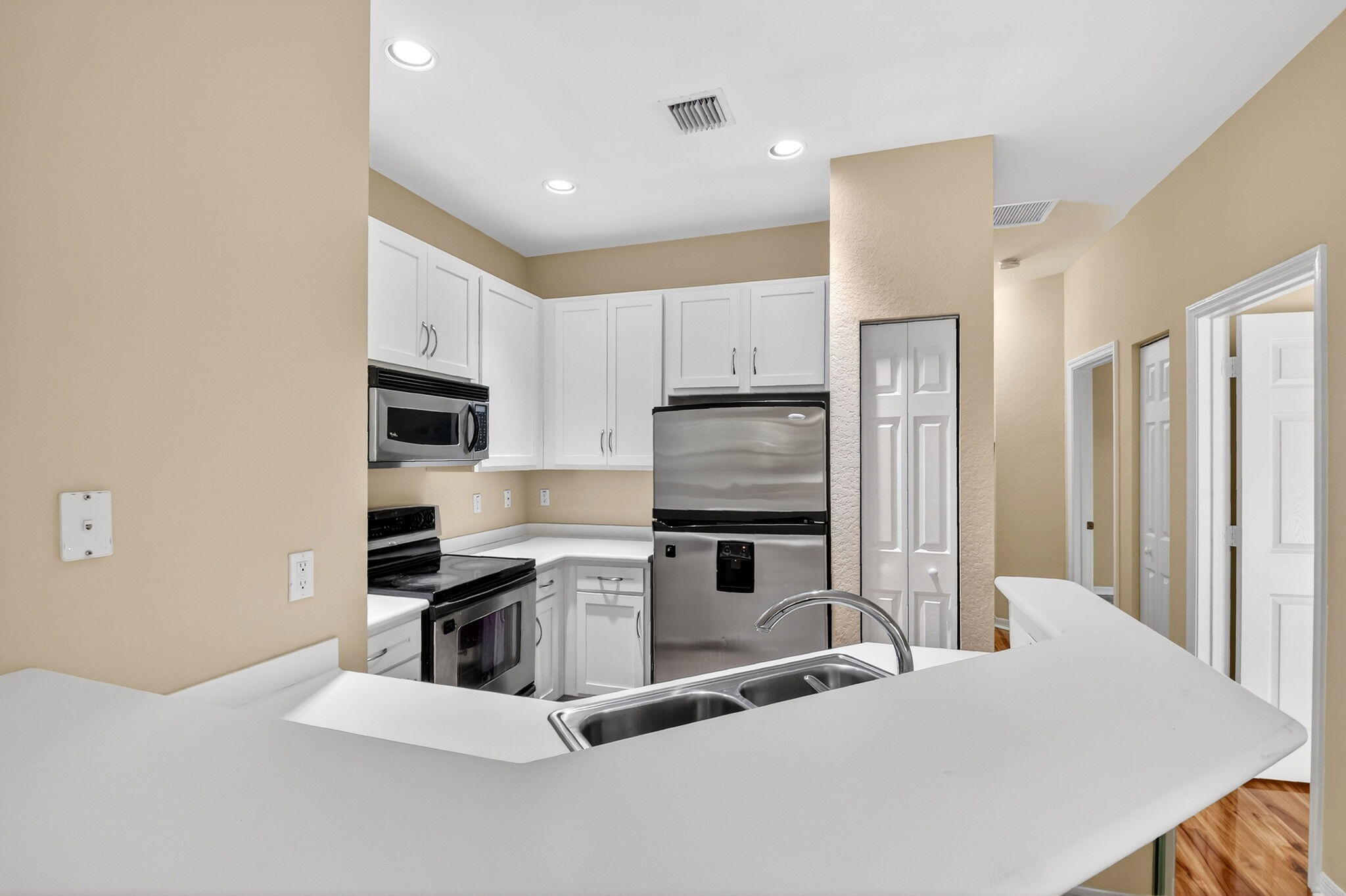 Beautiful 3-Bedroom Condo with GarageLight and bright corner unit located in a gated community. This 3-bedroom, 2-bath condo features a private first-floor entry with a small foyer and an attached 1‑car garage. All living areas are on the second floor, offering laminate flooring throughout and tile in the kitchen and bathrooms.The open balcony overlooks a peaceful garden view. The kitchen includes 42'' cabinets and stainless steel appliances. Community amenities include a pool.