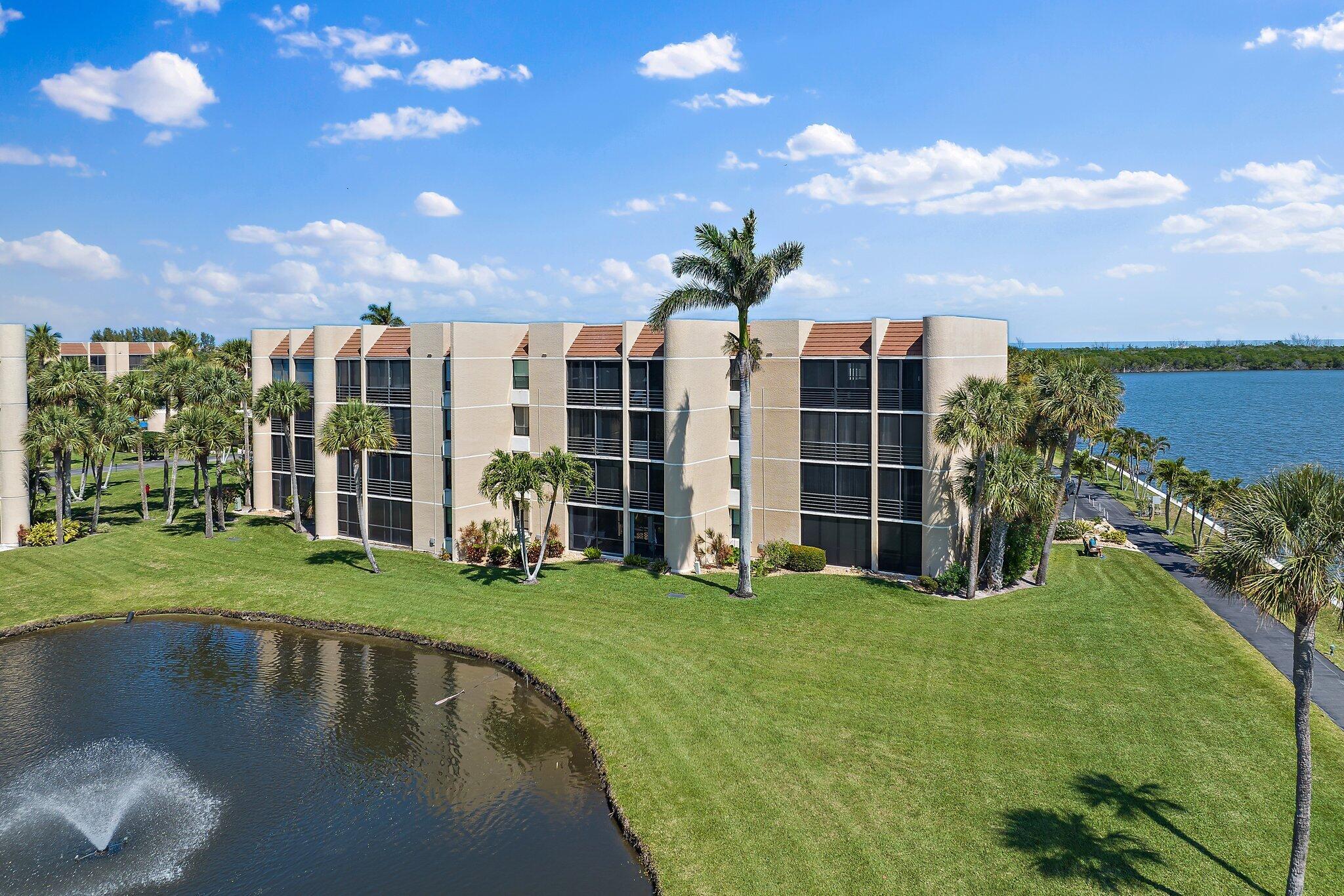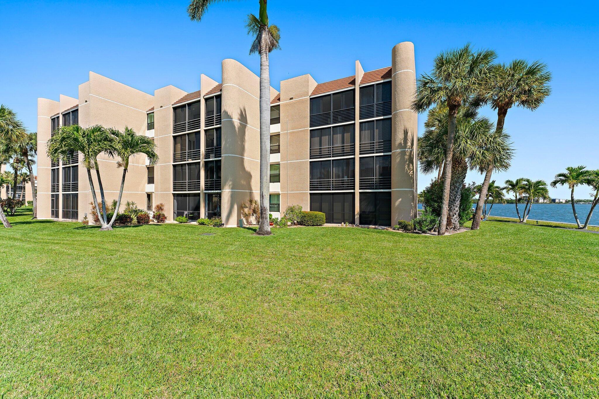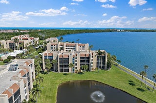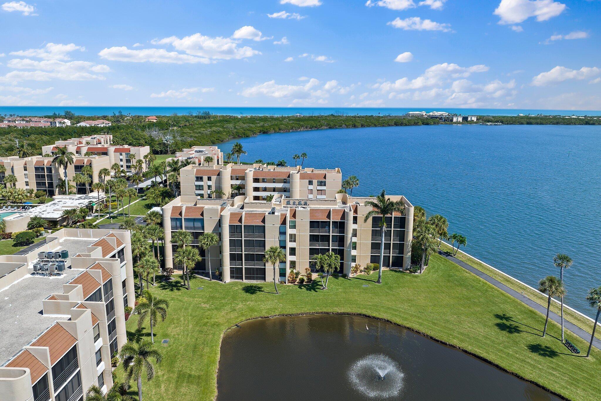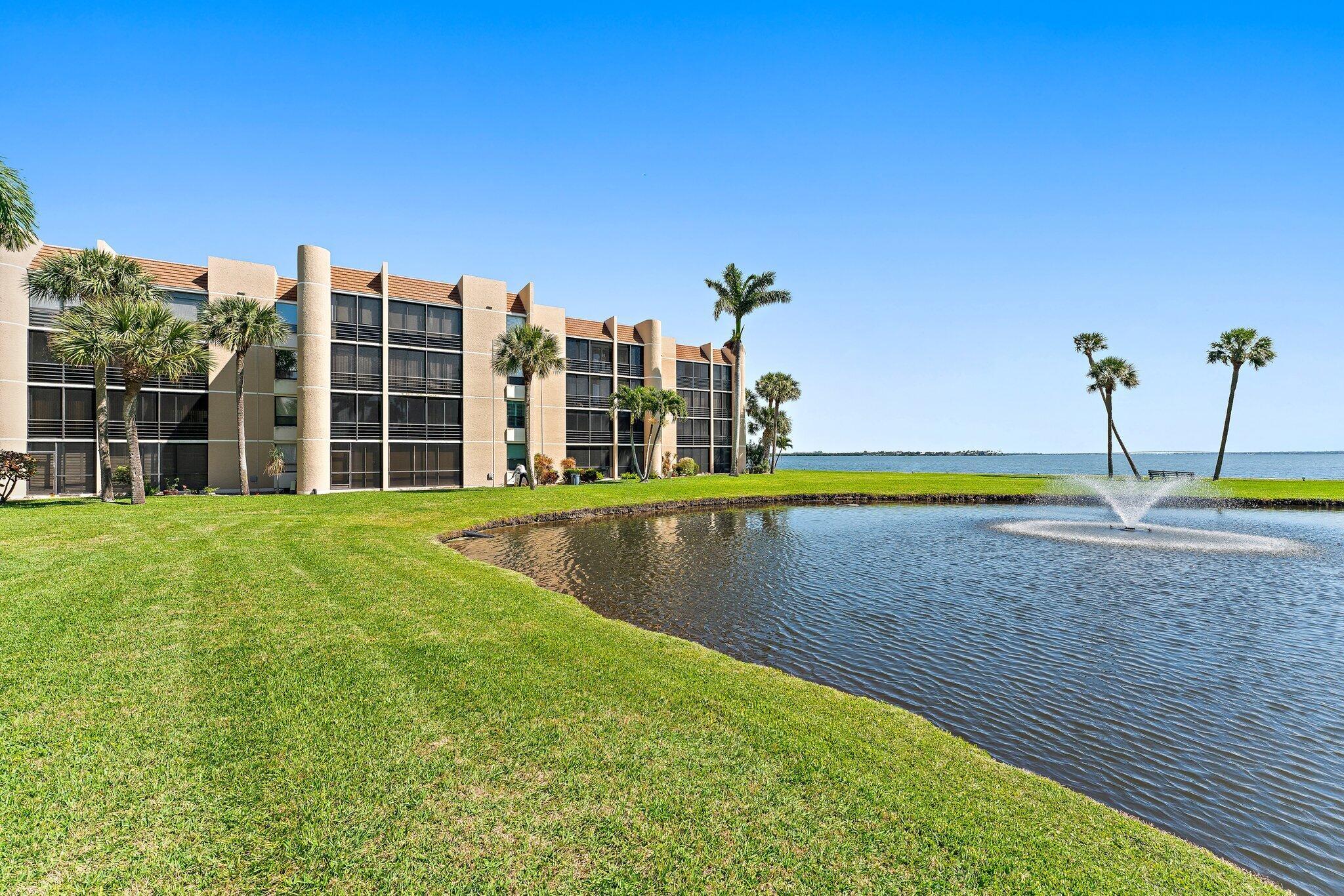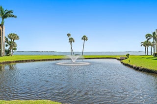 Premium waterfront condo with panoramic Indian River Lagoon views! Beautifully renovated 2BR/2BA residence ready for immediate move-in. Features a new white quartzite custom kitchen with upgraded appliances, utility area with updated washer/dryer, hurricane impact windows and doors, and a new tankless water heater. Light and bright interior offers volume ceilings, recessed lighting, new fans, plantation shutters, upgraded tile floors, and renovated baths. Custom touches include lighted glass display cabinetry and a quartzite buffet ideal for entertaining. Owner's suite features a walk-in closet with custom built-ins. Flexible floorplan includes guest suite/den with walk-in closet and updated bath. Resort-style community with riverfront walking path, clubhouse, two pools, tennis, and more!