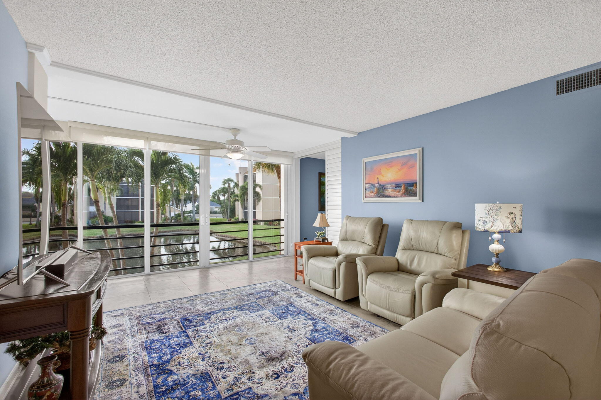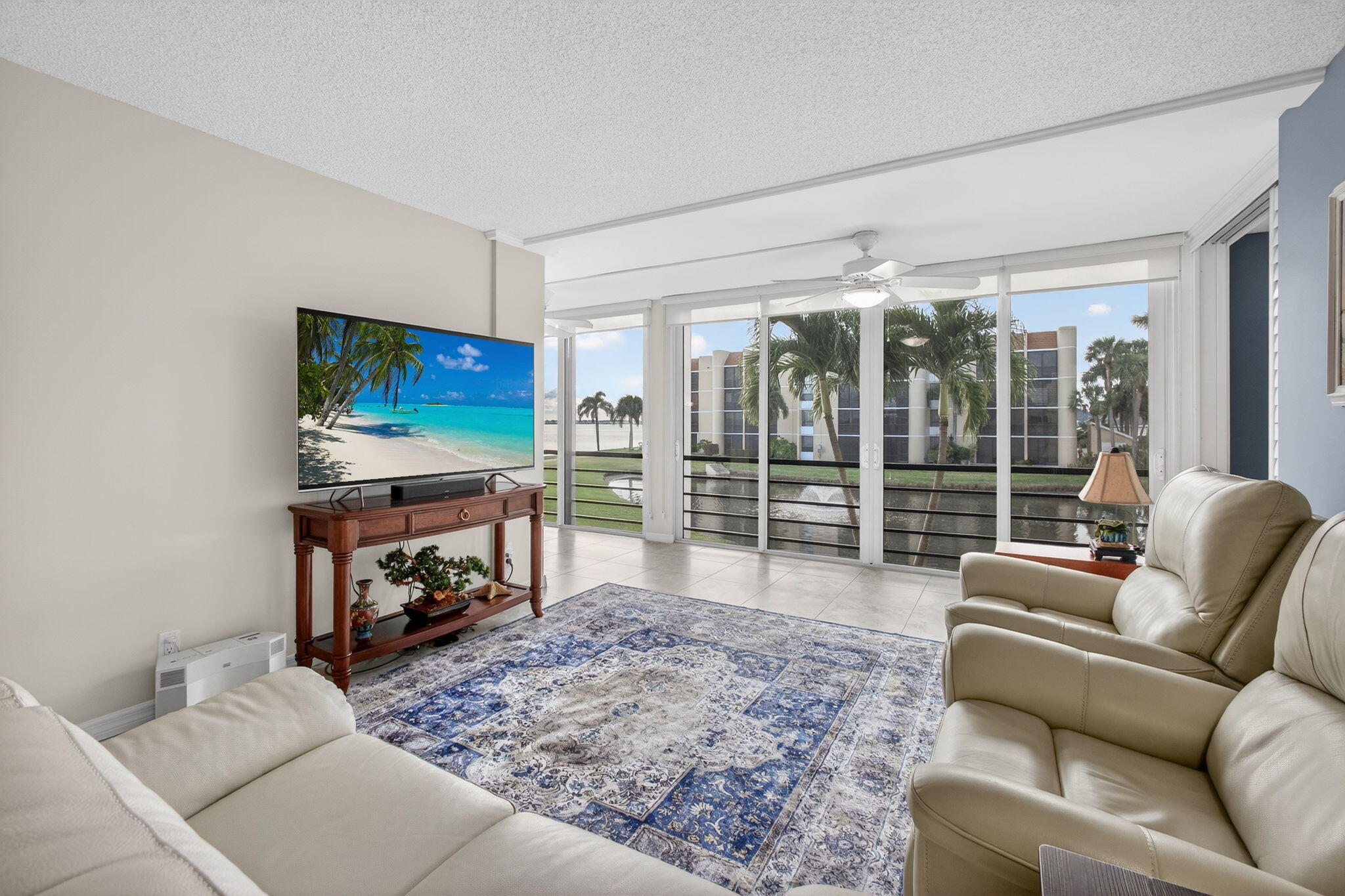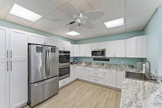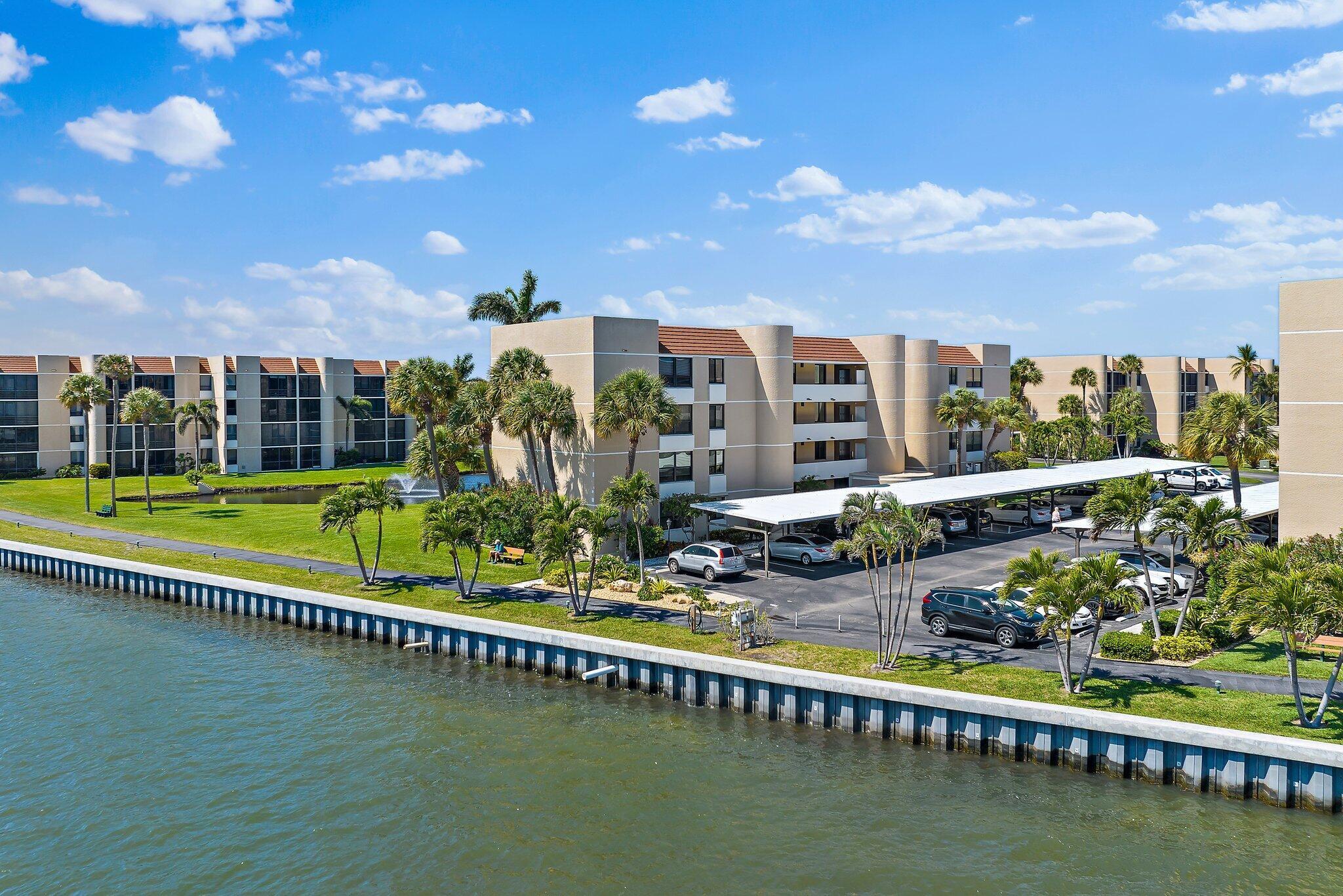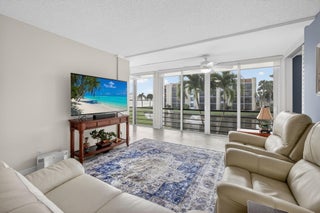 Premium waterfront condo with panoramic Indian River Lagoon views! Beautifully renovated 2BR/2BA residence ready for immediate move-in. Features a new white quartzite custom kitchen with upgraded appliances, utility area with updated washer/dryer, hurricane impact windows and doors, and a new tankless water heater. Light and bright interior offers volume ceilings, recessed lighting, new fans, plantation shutters, upgraded tile floors, and renovated baths. Custom touches include lighted glass display cabinetry and a quartzite buffet ideal for entertaining. Owner's suite features a walk-in closet with custom built-ins. Flexible floorplan includes guest suite/den with walk-in closet and updated bath. Resort-style community with riverfront walking path, clubhouse, two pools, tennis, and more!