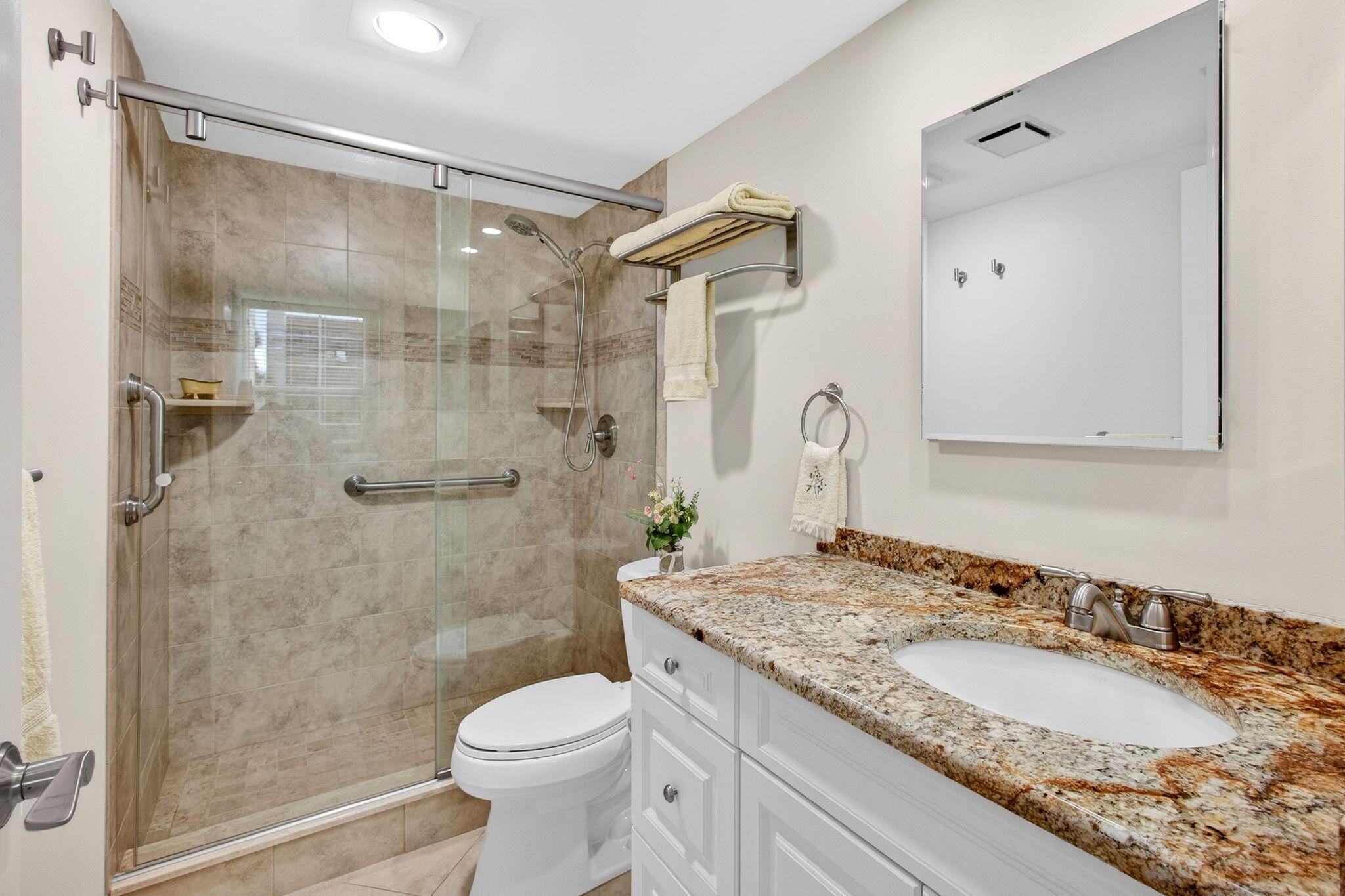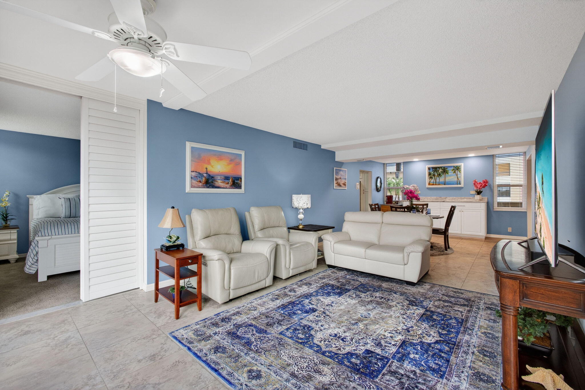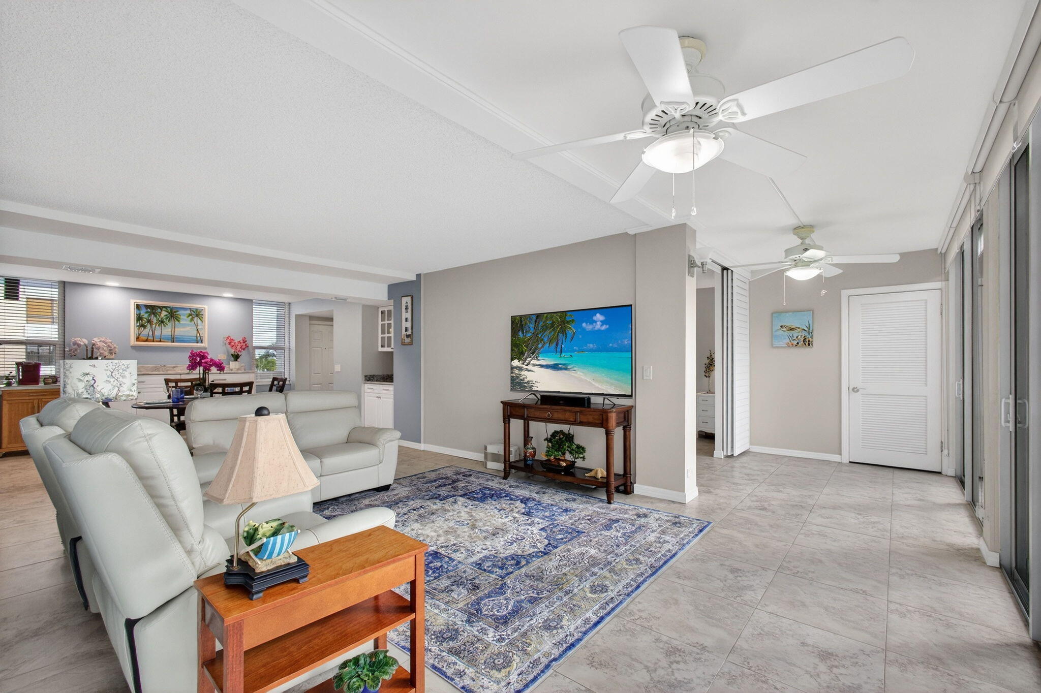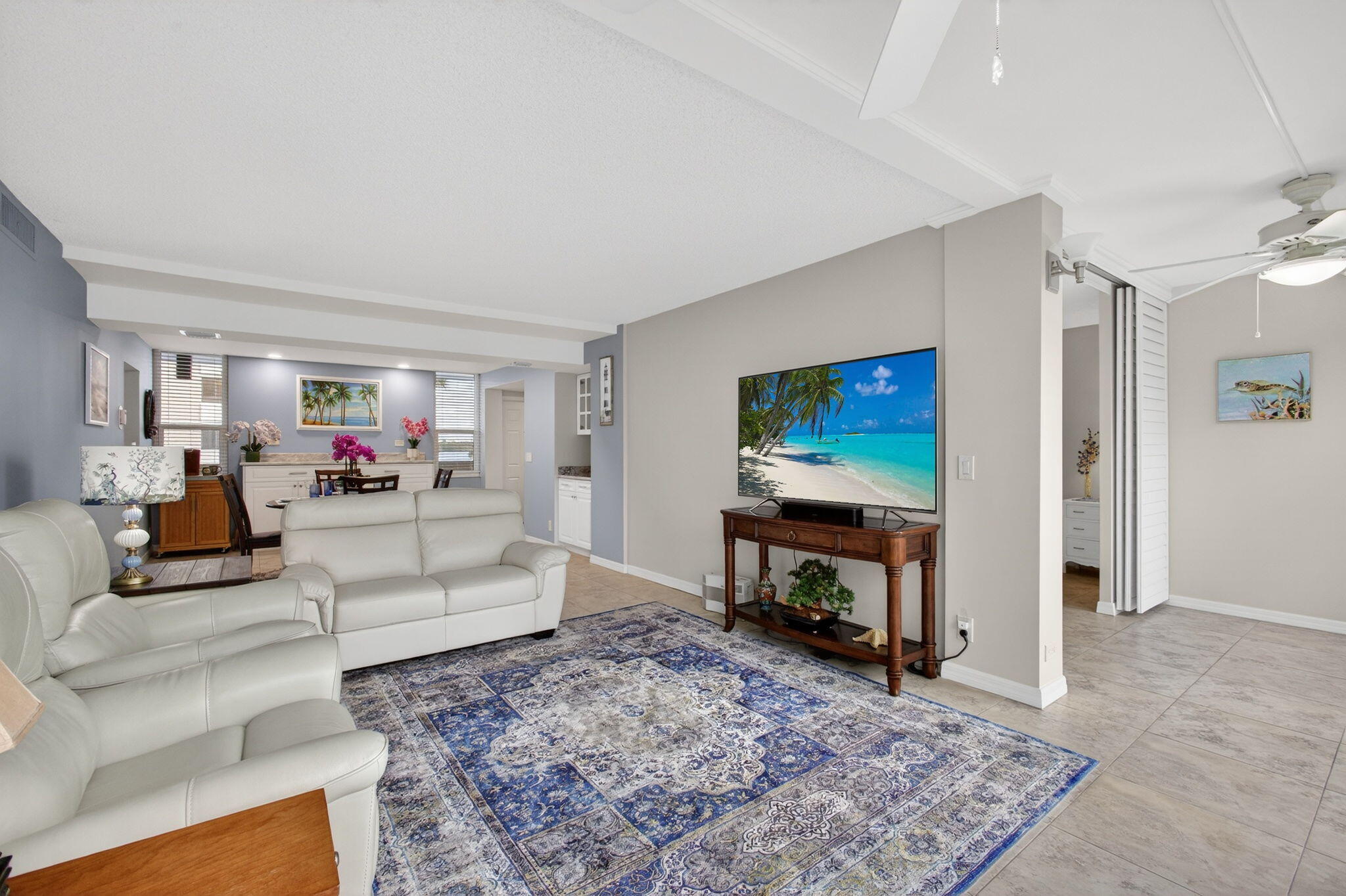 Premium waterfront condo with panoramic Indian River Lagoon views! Beautifully renovated 2BR/2BA residence ready for immediate move-in. Features a new white quartzite custom kitchen with upgraded appliances, utility area with updated washer/dryer, hurricane impact windows and doors, and a new tankless water heater. Light and bright interior offers volume ceilings, recessed lighting, new fans, plantation shutters, upgraded tile floors, and renovated baths. Custom touches include lighted glass display cabinetry and a quartzite buffet ideal for entertaining. Owner's suite features a walk-in closet with custom built-ins. Flexible floorplan includes guest suite/den with walk-in closet and updated bath. Resort-style community with riverfront walking path, clubhouse, two pools, tennis, and more!