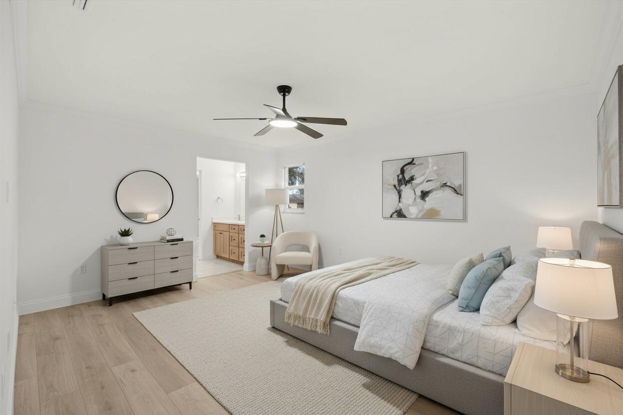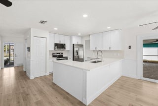 Showings must be scheduled with Showingtime. Exquisite 3-bedroom, 2-bathroom pool home with solar! Fully renovated in 2026. The gourmet kitchen boasts luminous Calacatta quartz countertops, bespoke soft-close shaker cabinetry, and premium high-end finishes, designed to inspire culinary excellence. Luxurious spa-inspired bathrooms feature sophisticated tile work, free standing tub, gorgeous vanities, and contemporary fixtures, elevating daily rituals to a serene escape. Impeccable waterproof laminate flooring, freshly painted interiors and exteriors, and brand-new, top-tier appliances blend style with functionality. Enjoy effortless access to I-95, premier shopping, and dining, with the freedom of no HOA restrictions. This residence seamlessly blends modern luxury with timeless comfort.
