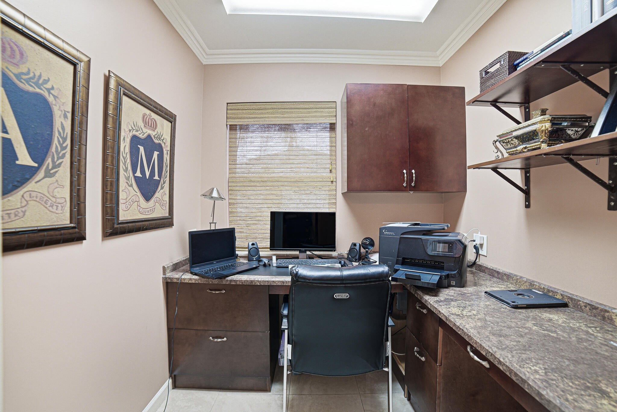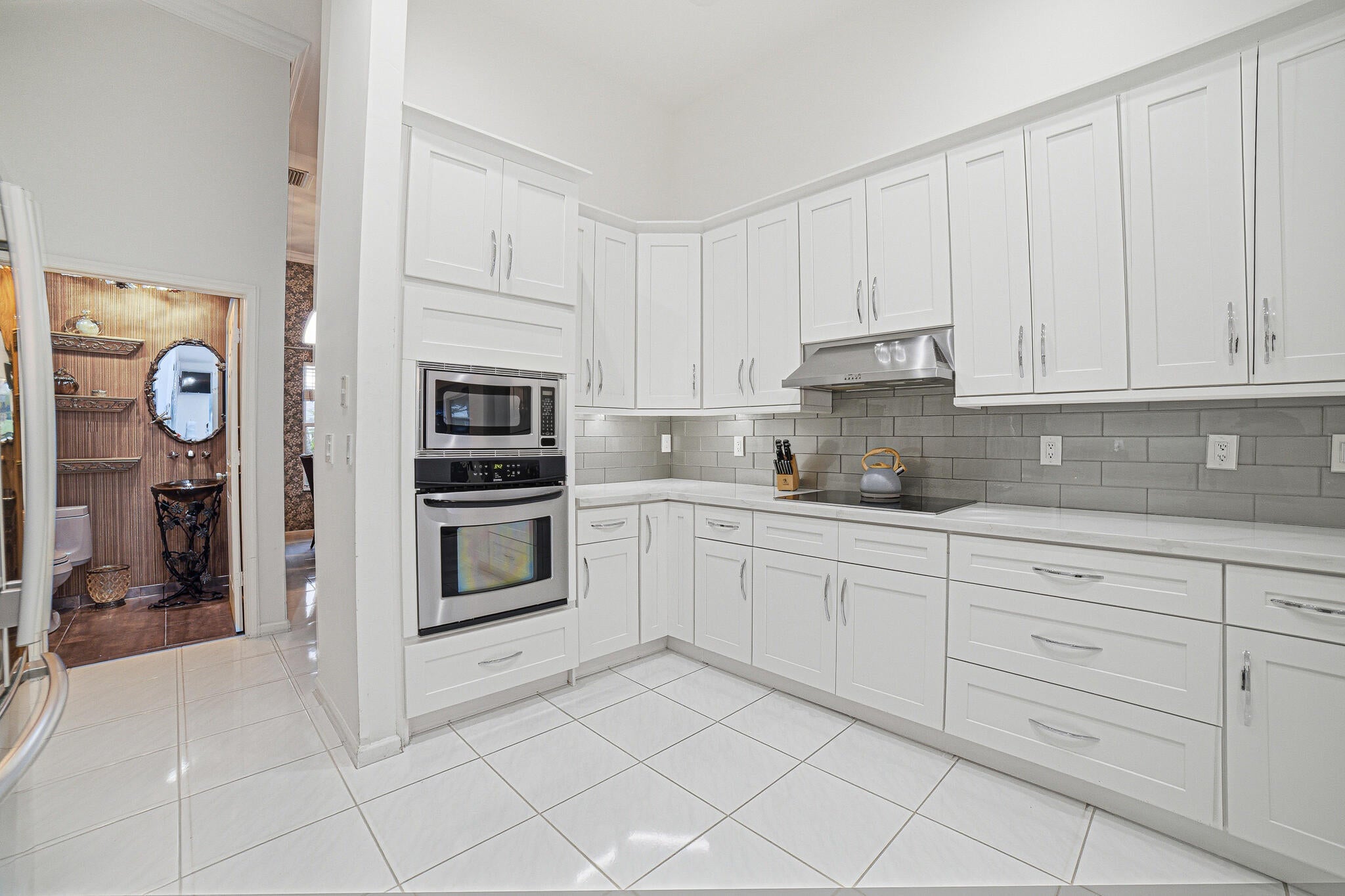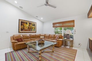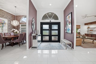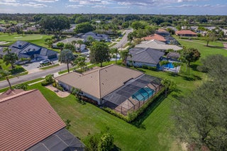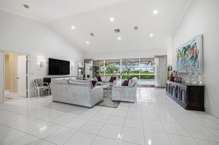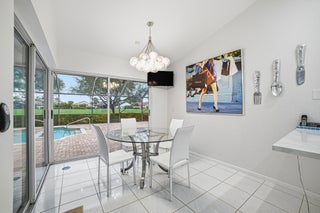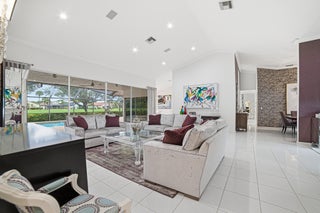 This stunning single-family home is located in the heart of Boca Woods Country Club (mandatory membership of $120,000). Situated in a peaceful cul-de-sac with south exposure, this property offers breathtaking views and a huge screened pool area.The home features an extended Brittany floor plan, which is ideal for those looking for a very private master bedroom. The master suite includes a luxurious bathroom with a freestanding tub and marble floors, as well as a private office. The second bathroom is also a convenient cabana bath.Additional highlights include:- Living Space: A large open floor plan with a great dining area and an inviting media room.- Gourmet Kitchen: An immaculate chef's kitchen featuring a double wall oven and a breakfast area with fantastic views.An in-door laundry room and a two-car garage with a separate golf cart garage. Exceptions: Sconces in living room, dining room fixture, master bedroom fixture and kitchen fixture