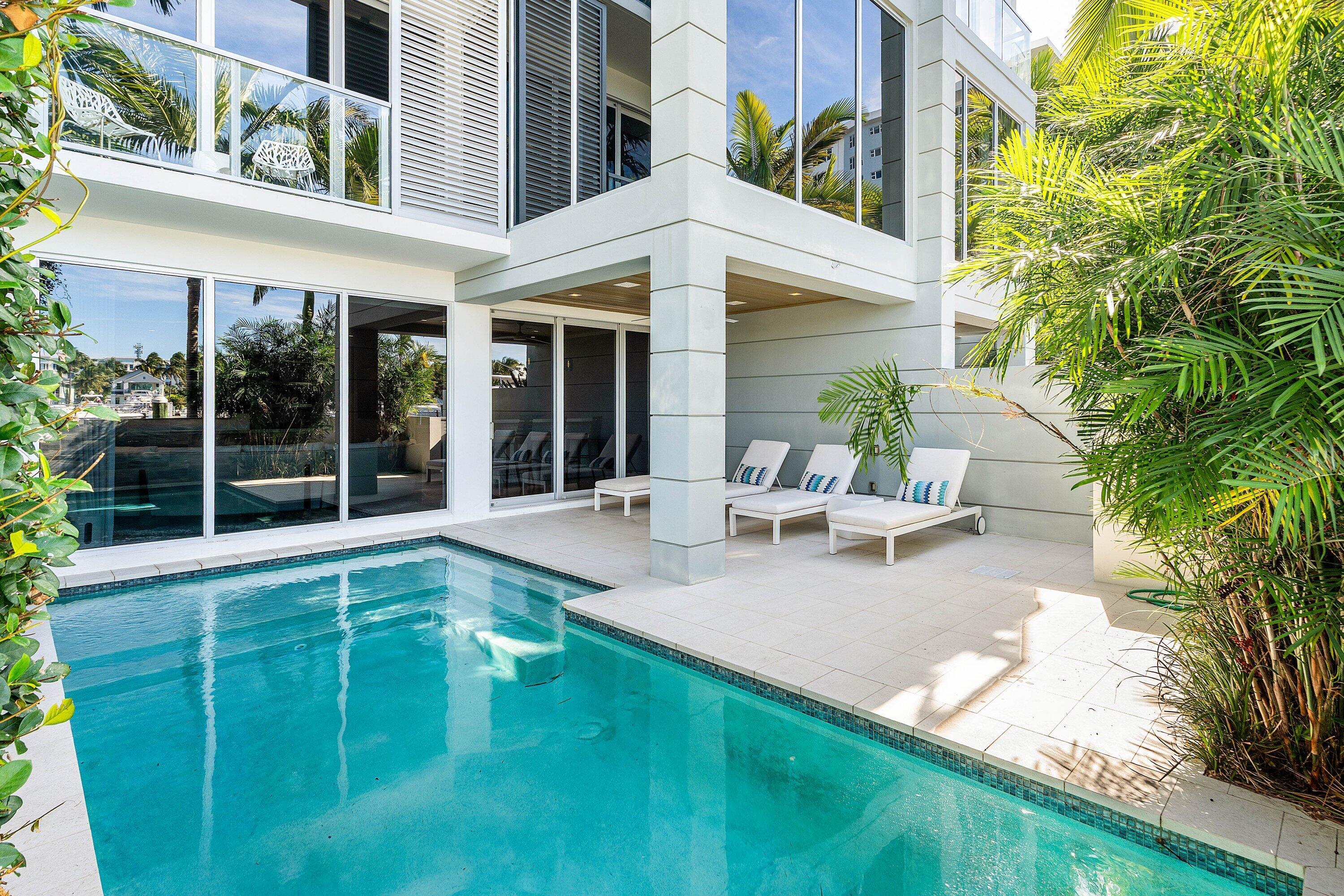 Welcome to the Seagate Yacht Club Residences. This contemporary, end-unit, waterfront townhome offers refined coastal living in a private enclave of just ten homes along the Intracoastal Waterway. Built in 2016 and located just three blocks from the beach and steps from Atlantic Avenue, this residence pairs an exceptional location with sweeping water and marina views, framed by expansive walls of glass throughout. Designed to make everyday life feel effortless and entertaining feel natural, the home delivers a calm, elevated vibe with comfort and convenience built into every level. A chef's kitchen with Miele appliances anchors the main living space, while multiple terraces, a private pool, and a rooftop retreat with summer kitchen and fire pit create seamless indoor-outdoor living.This residence provides the ultimate private setting in the heart of Delray Beach, just moments to the sand and Atlantic Avenue's dining, shops, and nightlife. Additional highlights include: ~End-unit ~1st Floor Bar and Club Room ~Electric Shades ~Generator ~Steam shower (1st floor) ~Extended kitchen island ~Gas fireplace (1st floor) ~Gas firepit (rooftop) ~Impact windows and doors ~Culligan whole-house water filtration system ~Built-in wine cooler (2nd floor) ~Rooftop Summer Kitchen w/ gas grill ~Rooftop Privacy Wall ~Rooftop Spa/Hot Tub ~All Impact Windows and Doors ~ADT security ~Three-zone air conditioning