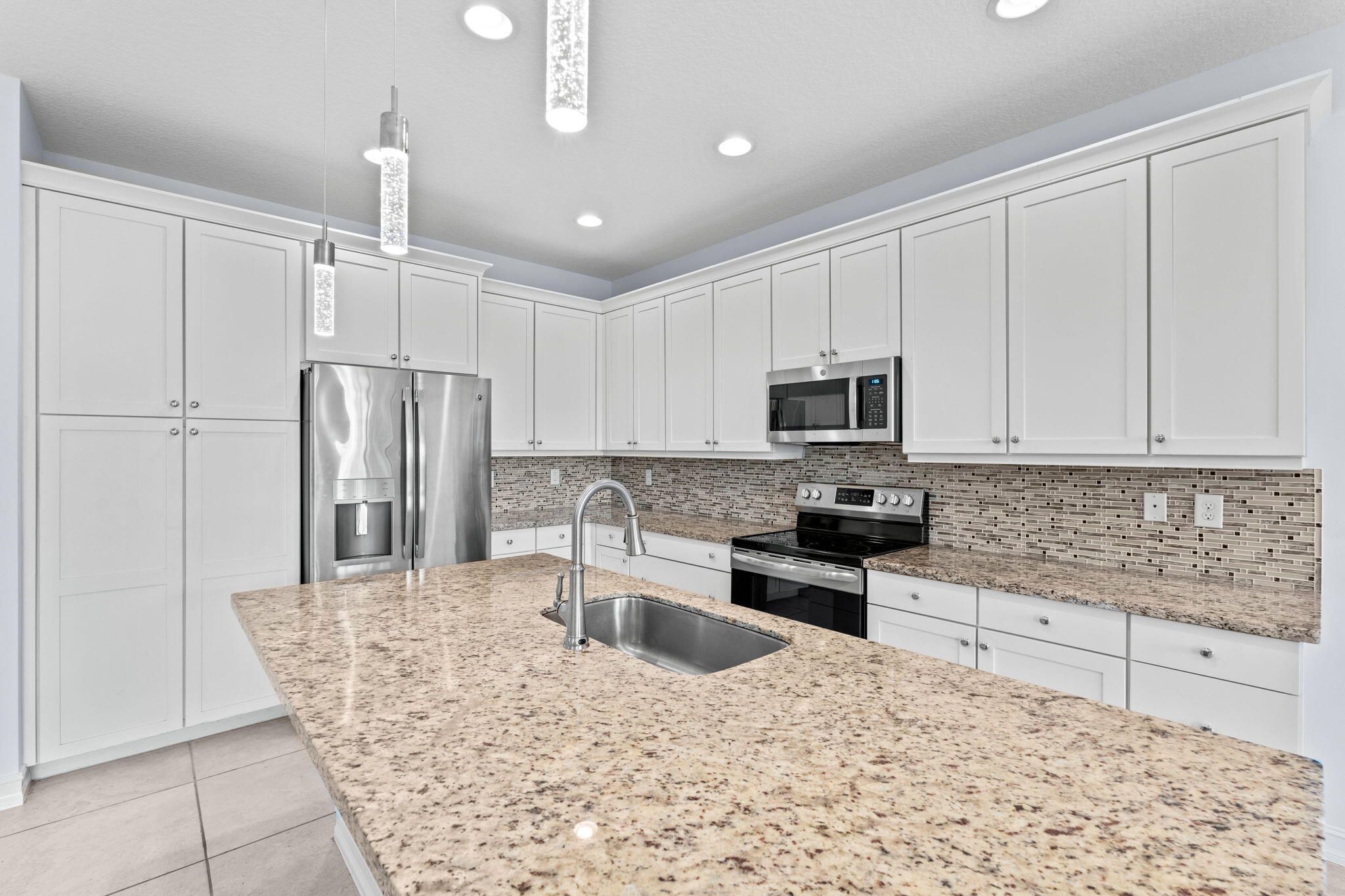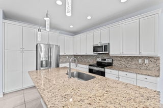 Welcome home to this beautiful 5b4b home with den/office in gated Tuscany North. The open floor plan features a modern kitchen with white cabinets, stainless steel appliances and a large island. The living area offers a stunning lake view. The first floor includes a bedroom with a full bath for guests. Upstairs includes a spacious loft, primary suite with custom double walk-in closets and ensuite bath, plus a secondary bedroom with private bath and walk-in closet. AC replaced in 2025 and interior painted in January 2026. Hurricane impact windows throughout. Enjoy a well-maintained side garden and lake views. Home is just 30 seconds from the clubhouse provides additional guest parking. Amenities include clubhouse, fitness center, pool, tennis, basketball, pickleball, and playgrounds.