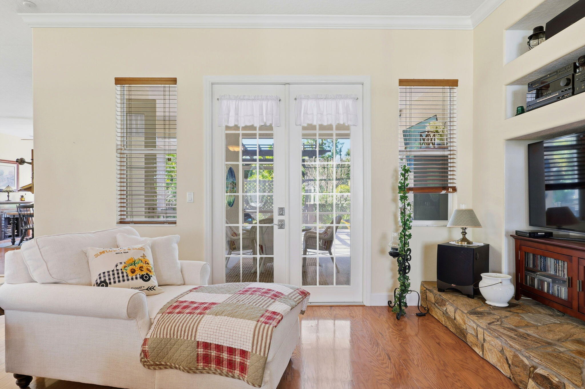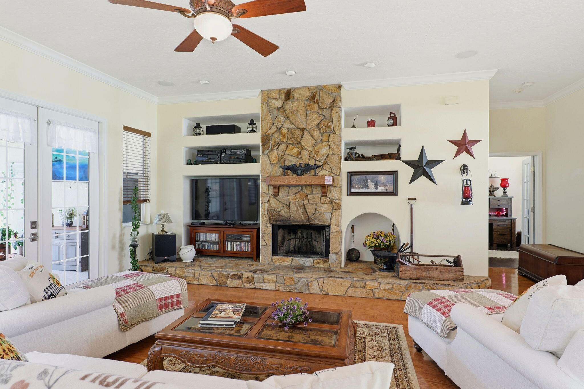 Beautifully upgraded colonial-style home on an oversized corner lot in the desirable Cypress Creek community. This well-maintained residence features an open floor plan with New Hybrid heat pump for water heater that is 50 gallon, wood flooring throughout the main living areas, recessed lighting, and plantation shutters. The gourmet kitchen offers granite countertops, stainless steel appliances, a pantry, and ample workspace.The spacious primary suite includes a Jacuzzi tub, dual vanities, a walk-in closet, and an attached office with a built-in safe. Bathrooms feature durable tile flooring. Additional highlights include a wood-burning fireplace and whole-house speaker system.Outdoor living is enhanced with a screened patio, built-in fire pit with arbor, and ample yard space. The home is equipped with hurricane shutters, an alarm system, and a reverse osmosis water system. Recent upgrades include a newer A/C unit, 3-year-old roof, new attic insulation, and a recently serviced septic system. Low HOA. Move-in ready and ideally located.