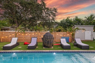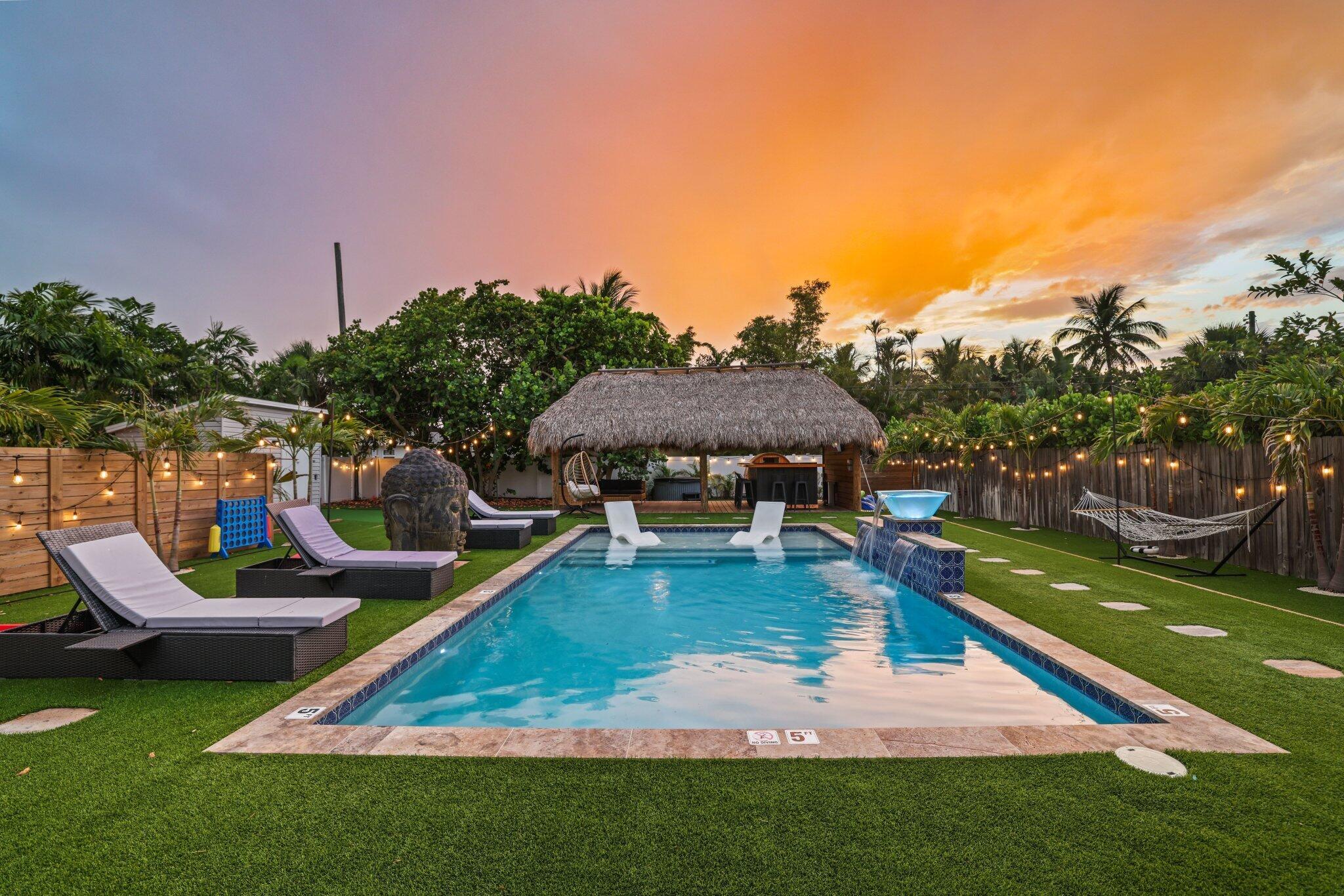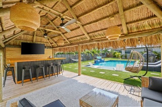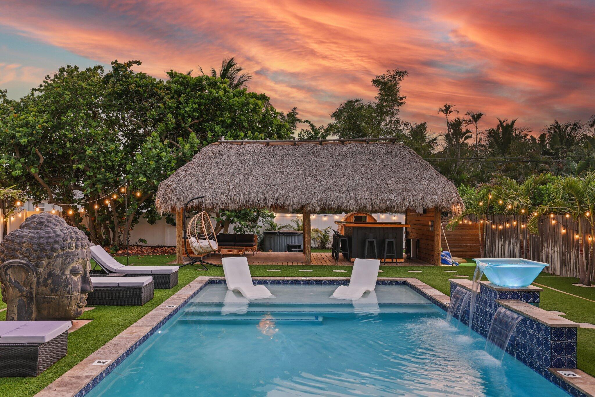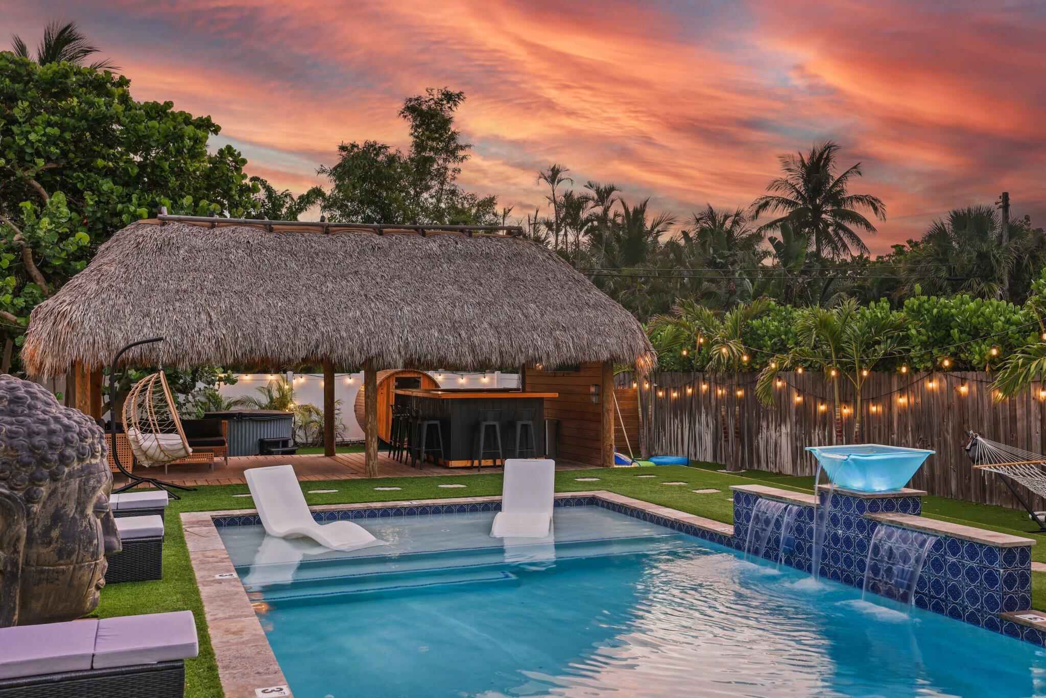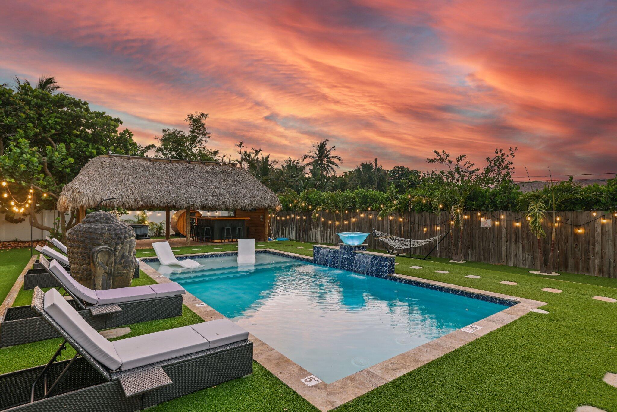 Welcome to an exceptional coastal offering in the heart of Delray Beach, where resort style living meets prime downtown convenience. This lucrative short-term rental presents a proven income producing opportunity with flexibility for personal use or long-term appreciation. Situated on an expansive 0.26 acre lot, this beautifully maintained three bedroom residence presents a rare opportunity to enjoy a private retreat while being just moments from the energy of Atlantic Avenue.The outdoor space is a true highlight, designed to evoke the feel of a private resort. The lush, tropical backyard features a sparkling swimming pool, relaxing hot tub, and private sauna, creating an ideal environment for both entertaining and unwinding. A thatched tiki hut with a built in BBQ and generousseating area serves as the perfect backdrop for gatherings, while mature landscaping ensures privacy and tranquility. Inside, the home offers a bright and functional layout tailored to modern living. The kitchen is well-appointed for both everyday use and entertaining, and a dedicated workspace accommodates today's work from home lifestyle. Additional conveniences include a washer and dryer, EV charging capability, and ample onsite parking, ideal for guests or rental use. Located just minutes from Delray Beach's renowned Atlantic Avenue, residents enjoy easy access to award-winning dining, boutique shopping, nightlife, and cultural attractions. With Delray Beach recently recognized as the Best Beach in Florida by USA Today, pristine coastline, nearby parks, and premier golf courses are all within close reach. Adding to the property's long-term value, the oversized lot allows for future expansion. City-approved plans permit the addition of a guest cottage or in-law suite, and architectural renderings for a 520-square-foot accessory dwelling unit (ADU) are available upon request. Whether envisioned as a primary residence, a vacation getaway, or a high-performing investment, this turnkey property offers unmatched versatility in one of South Florida's most desirable coastal communities. The owner is open to exploring creative financing options, making this a truly unique opportunity in downtown Delray Beach. DISCLAIMER: Information published or otherwise provided by the listing company and its representatives including but not limited to prices, measurements, square footages, lot sizes, calculations, statistics, and videos are deemed reliable but are not guaranteed and are subject to errors, omissions or changes without notice. All such information should be independently verified by any prospective purchaser or seller. Parties should perform their own due diligence to verify such information prior to a sale or listing. Listing company expressly disclaims any warranty or representation regarding such information. Prices published are either list price, sold price, and/or last asking price. The listing company participates in the Multiple Listing Service and IDX.DISCLAIMER: Information published or otherwise provided by the listing company and its representatives including but not limited to prices, measurements, square footages, lot sizes, calculations, statistics, and videos are deemed reliable but are not guaranteed and are subject to errors, omissions or changes without notice. All such information should be independently verified by any prospective purchaser or seller. Parties should perform their own due diligence to verify such information prior to a sale or listing. Listing company expressly disclaims any warranty or representation regarding such information. Prices published are either list price, sold price, and/or last asking price. The listing company participates in the Multiple Listing Service and IDX.