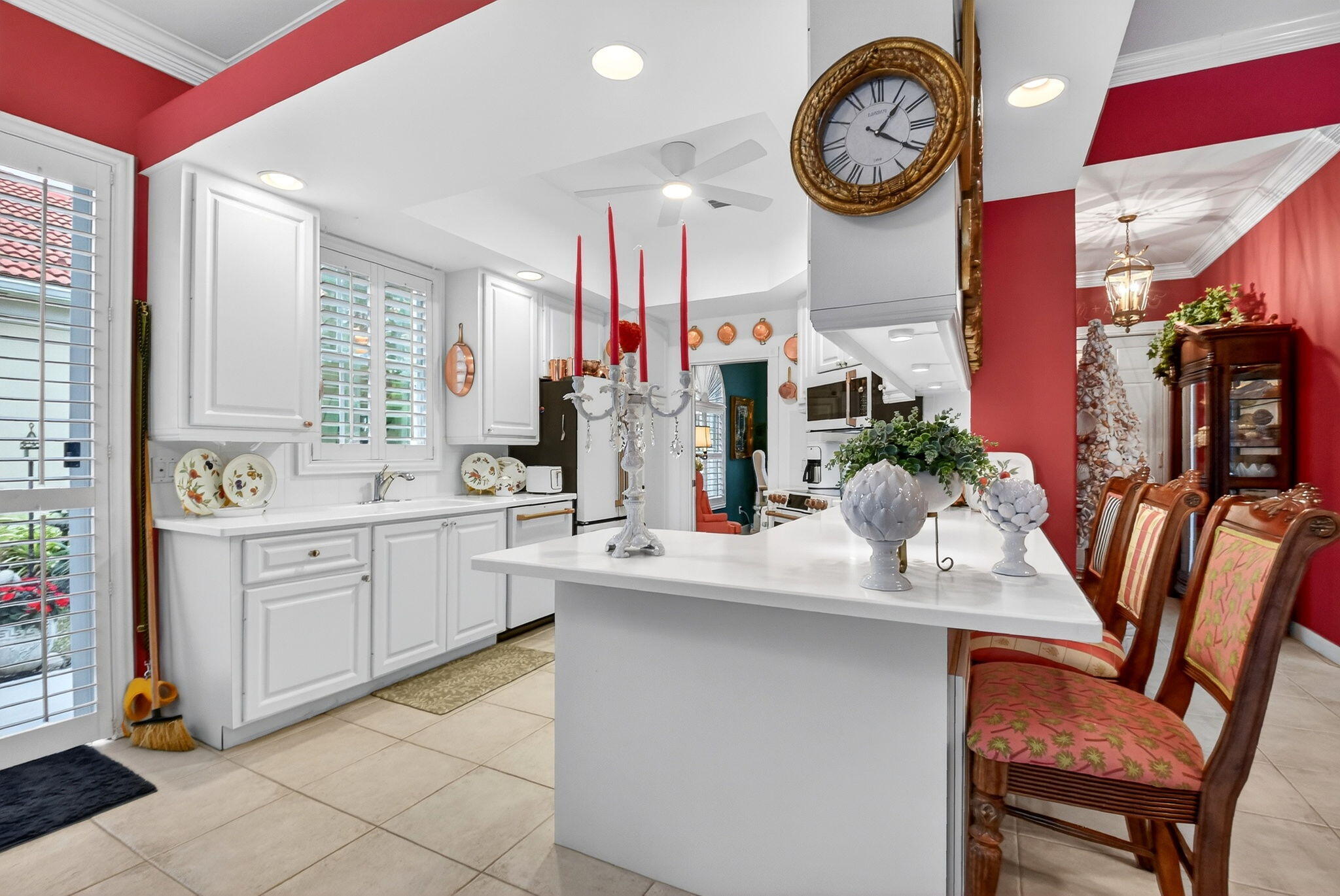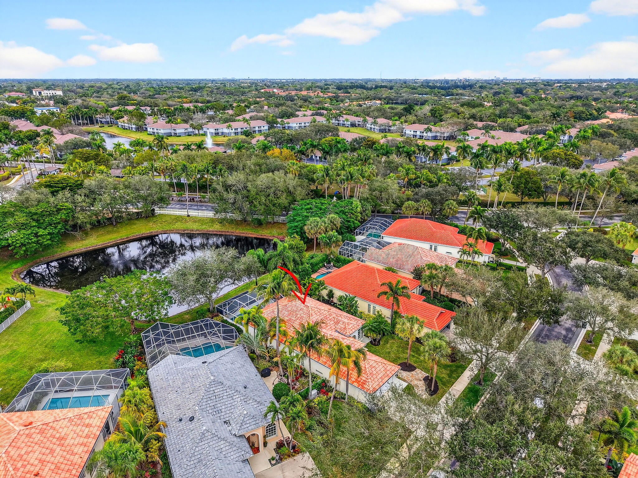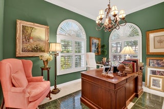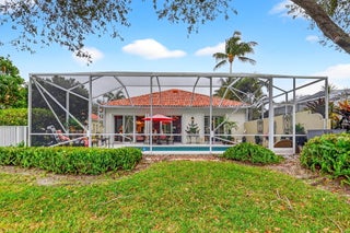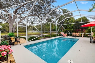 Be prepared to fall in love with this stunning residence on one of the best lots in the neighborhood nestled within the quiet, gated community of Hammock Reserve. From the moment you step inside this extended Oakmont model, you're welcomed by soaring 12-foot ceilings, crown molding, and elegant plantation shutters throughout the entire home, including the garage. The open concept living/great room showcases custom built-ins and flows seamlessly into the dining and kitchen areas, creating an ideal space for both everyday living and entertaining. The home features neutral tile throughout the living areas, primary suite and den/office, complemented by laminate wood flooring in the guest bedrooms. A desirable split-bedroom floor plan offers maximum privacy, with generous bedrooms outfittedwith California closets and additional custom built-ins. The spacious primary suite is a true retreat, featuring his-and-her bathrooms, plenty of closet space and access to the pool/patio. The beautifully renovated kitchen is a chef's dream, boasting 42-inch white cabinetry with pull-out drawers, a large pantry, GE Cafe appliances, gleaming countertops and backsplash, and under-cabinet lighting. Additional interior highlights include upgraded chandeliers/lighting and ceiling fans, central vacuum system, phantom screens, and a large laundry room complete with cabinetry and a utility sink. Step outside to your own private tropical oasis. The screened lanai overlooks a serene lake with no rear neighbors, providing exceptional privacy. Enjoy year-round outdoor living with a newly refinished pool (with a new pool heater) surrounded by lush landscaping and ambient lighting completing this tranquil retreat. Hammock Reserve offers residents a community pool, meeting house, scenic lakes, and sidewalks ideal for walking, biking, or jogging. The location is unbeatablewalking distance to schools and shopping, and just minutes from Downtown Delray Beach, renowned dining, entertainment, and pristine beaches. This meticulously maintained home reflects true pride of ownership, with no expense spared in its upgrades. A rare opportunity to own a private, lakefront gem in one of Delray Beach's most desirable communities.