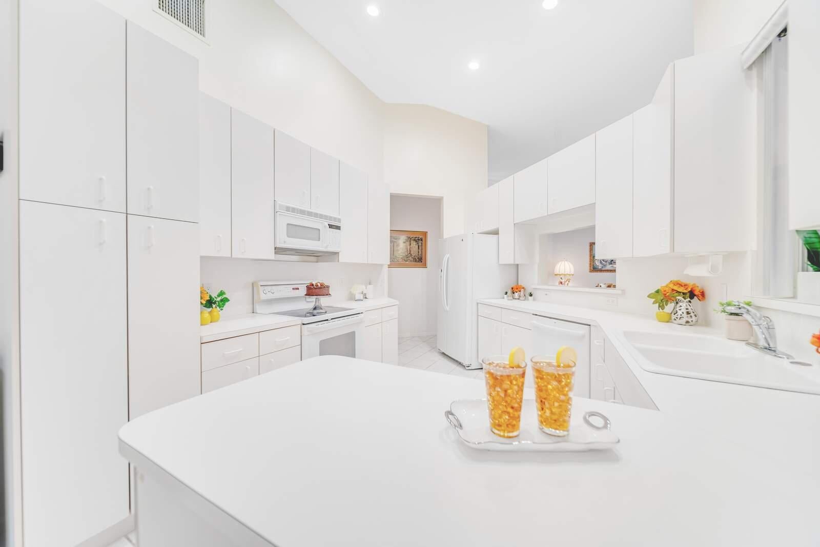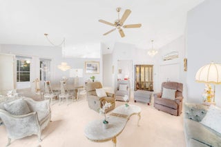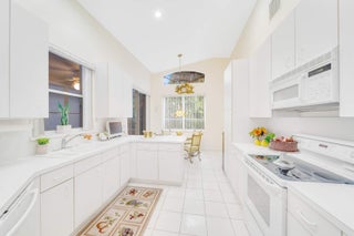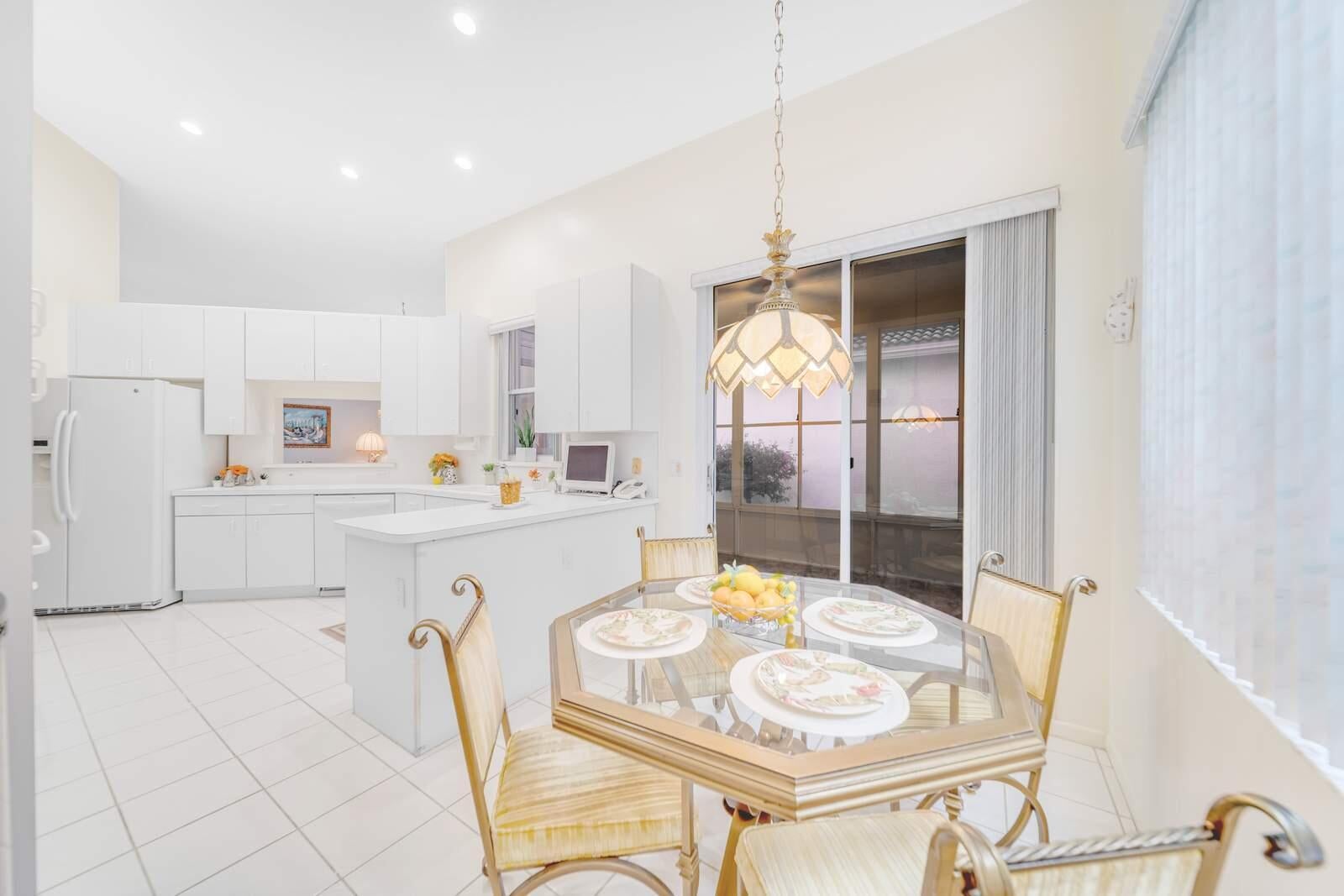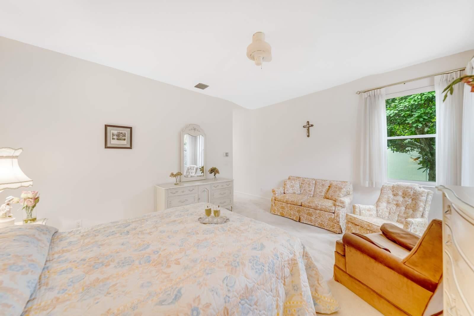 Meticulous one story home featuring 3 bedrooms, 2 baths, 2 car garage in Costa Brava in Boca Pointe. Dramatic entrance w/soaring cathedral ceilings where you can enjoy the sense of openness, volume & space. All three bedrooms are spacious, have vaulted ceilings & all are split from each other which offers privacy. Large eat in kitchen has tons of cabinetry and counter tops, and a slider that leads to screened in/covered patio and backyard. Master suite features a huge walk in closet. Spa-like retreat master bathroom features a large therapeutic walk in jetted bathtub, separate shower, & dual sinks with quartz countertops and wood vanity. French doors from the living/dining room lead to the screened in/covered patio. Nice backyard that is tropical, private, and serene.Perfect for Entertaining or Relaxing. The community pool just steps away! Two Car Garage. Large inside laundry/utility room. ROOF 2018. Accordion shutters for all windows. This home has been well maintained by the original owner and is move in ready! Furniture negotiable. Pet friendly community. All ages. Amazing Schools include Verde Elementary, Boca Raton Community Middle & Boca Raton Community High School. Costa Brava is a 24 hour manned gated beautiful enclave of 139 homes. Costa Brava also has a community pool & includes: landscaping services, bush and tree trimming, Hotwire basic cable & internet, alarm monitoring, complete periodic exterior painting of homes, pressure cleaning of the roofs and walkways, and more. Club Membership is Not Mandatory but you have the option of choosing to belong to the Club at Boca Pointe, which includes an 18-hole golf course, tennis, upscale dining facilities, complete athletic and recreational facilities & many social programs.