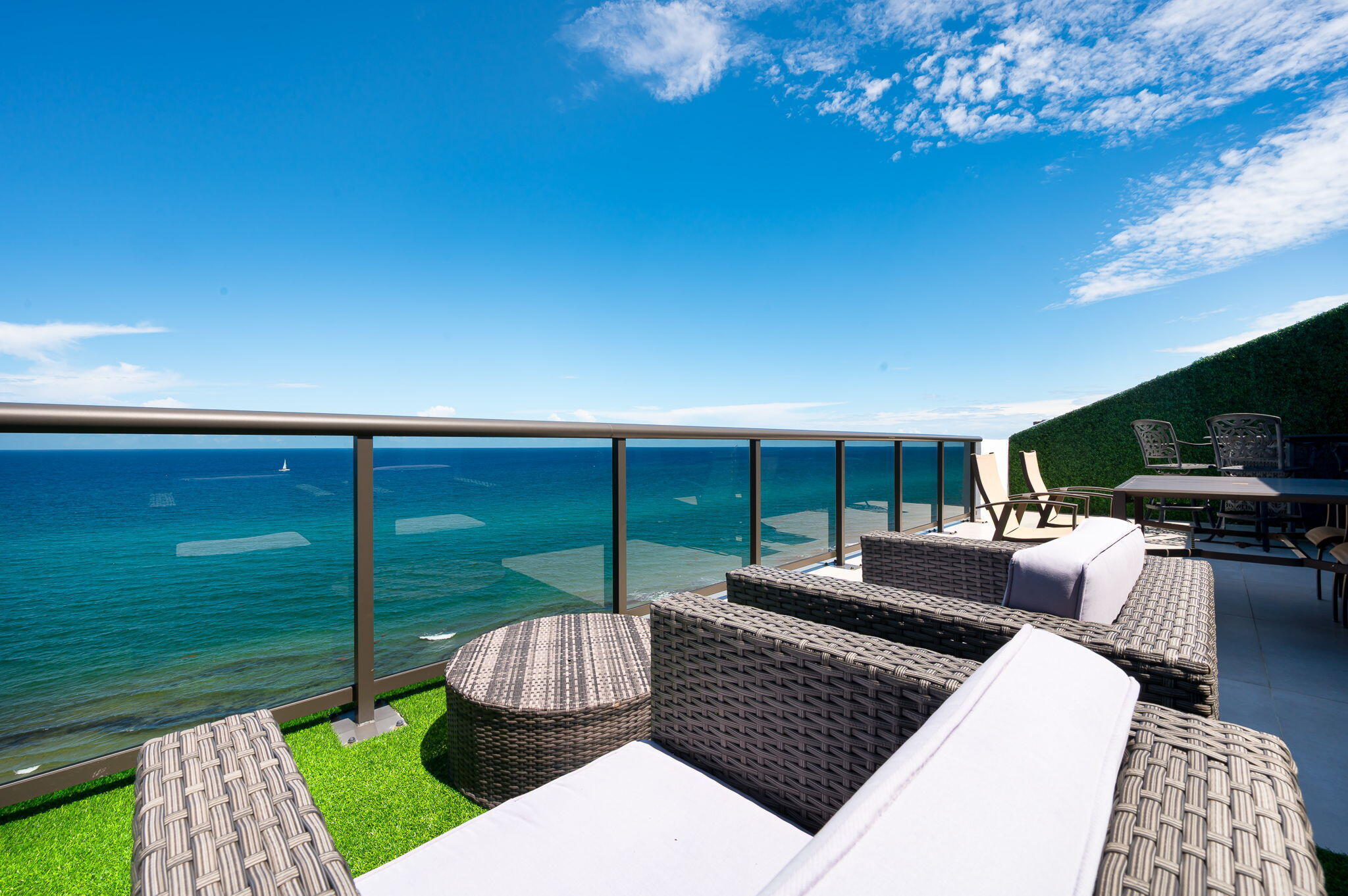 Discover the pinnacle of oceanfront living in this exceptionally rare, never before rented, beautifully renovated 3-bedroom, 4-bath, TWO STORY PENTHOUSE featuring a PRIVATE ELEVATOR INSIDE THE CONDO directly on the sand, available for annual or seasonal lease (min 4 mo). Comprised of 3,288 square feet under air with 4,000 total square feet, this home in the sky offers unobstructed ocean and intracoastal views throughout. Thoughtfully designed with modern elegance and comfort, this stunning residence features a PRIVATE ELEVATOR, offering seamless access to both levels. Bask in the ocean grandeur on any of your 4 private balconies - one of them a large unobstructed oceanfront terrace which can accommodate 30+ guests, outfitted with a bar, dining table, and outdoor TV overlooking the ocean.Discover the pinnacle of oceanfront living in this exceptionally rare, never before rented, beautifully renovated 3-bedroom, 4-bath, TWO STORY PENTHOUSE featuring a PRIVATE ELEVATOR INSIDE THE CONDO directly on the sand, available for annual or seasonal lease (min 4 mo). Comprised of 3,288 square feet under air with 4,000 total square feet, this home in the sky offers unobstructed ocean and intracoastal views throughout. Thoughtfully designed with modern elegance and comfort, this stunning residence features a PRIVATE ELEVATOR, offering seamless access to both levels. Bask in the ocean grandeur on any of your 4 private balconies - one of them a large unobstructed oceanfront terrace which can accommodate 30+ guests, outfitted with a bar, dining table, and outdoor TV overlooking the ocean. This is the perfect place to entertain or unwind while enjoying the breathtaking panoramic ocean views both day and night. This residence boasts 2 luxurious Primary Suites - one up and one down - each with spa-like en-suite baths and expansive closet space with custom built-ins, along with a third spacious bedroom and a convertible 4th bedroom, all designed for ultimate comfort. All bedrooms feature ocean-facing impact windows that flood the home with natural light and frame stunning water views. The upper-level suite features his and her baths, one with a tub and balcony with beautiful intracoastal views and another with a shower, bidet, and a bonus storage room. The bedroom showcases three adjacent floor-to-ceiling glass doors that open simultaneously, creating a seamless, open-air connection to the breathtaking ocean and sky - a truly unparalleled and rare experience. The open, modern, ocean facing, newly renovated state-of-the-art chef's kitchen is equipped with premium Bosch appliances, sleek cabinetry, and elegant finishes, perfect for culinary enthusiasts. For your entertainment and wellness needs, the home includes a Peloton, a TV wall projector mounted on the second floor for cinematic experiences on the large living room wall, motorized window shades, and a Sonos sound system throughout. Step outside to your private beach cabana on the sand where you'll enjoy a season of oceanfront lounging in style with fresh cushions replaced daily. Set within a full-service building, residents enjoy a resort-style pool, direct beach access, club room, and a state-of-the-art fitness center. Featuring 2 garage parking spaces while combining elegance, privacy, convenience, and unmatched views, this rare gem is your chance to live the beachfront lifestyle you've always dreamed of. ***Available annually for $19,500/month or seasonally for 6 months at $23,500/month, 4 months at $27,500 or 3 months at $29,000 or 2 months at $40,000. 2 months is the minimum lease timeframe*** Just fyi... Between taxes and HOA fees alone the owner pays over $7,700 a month.