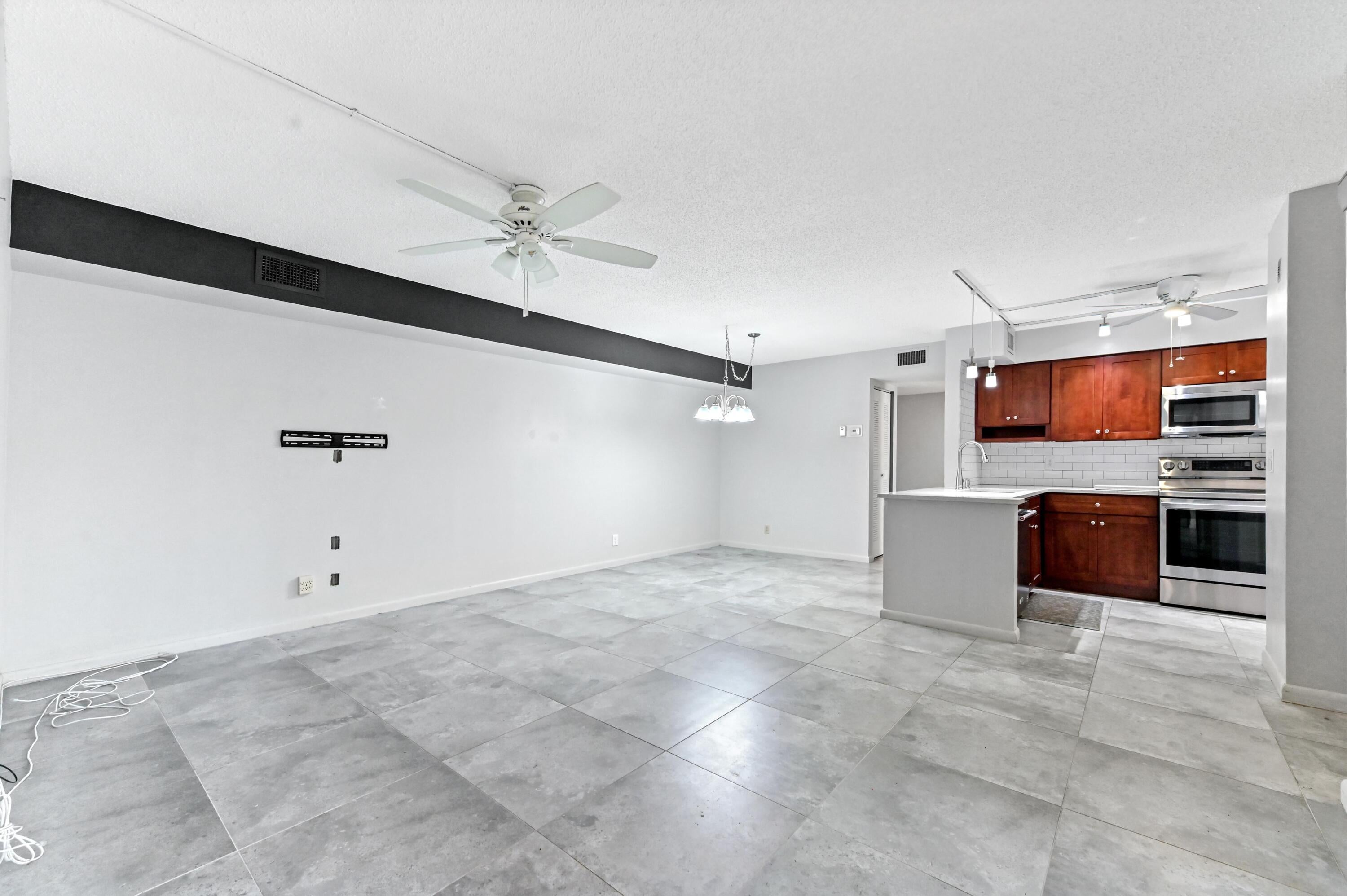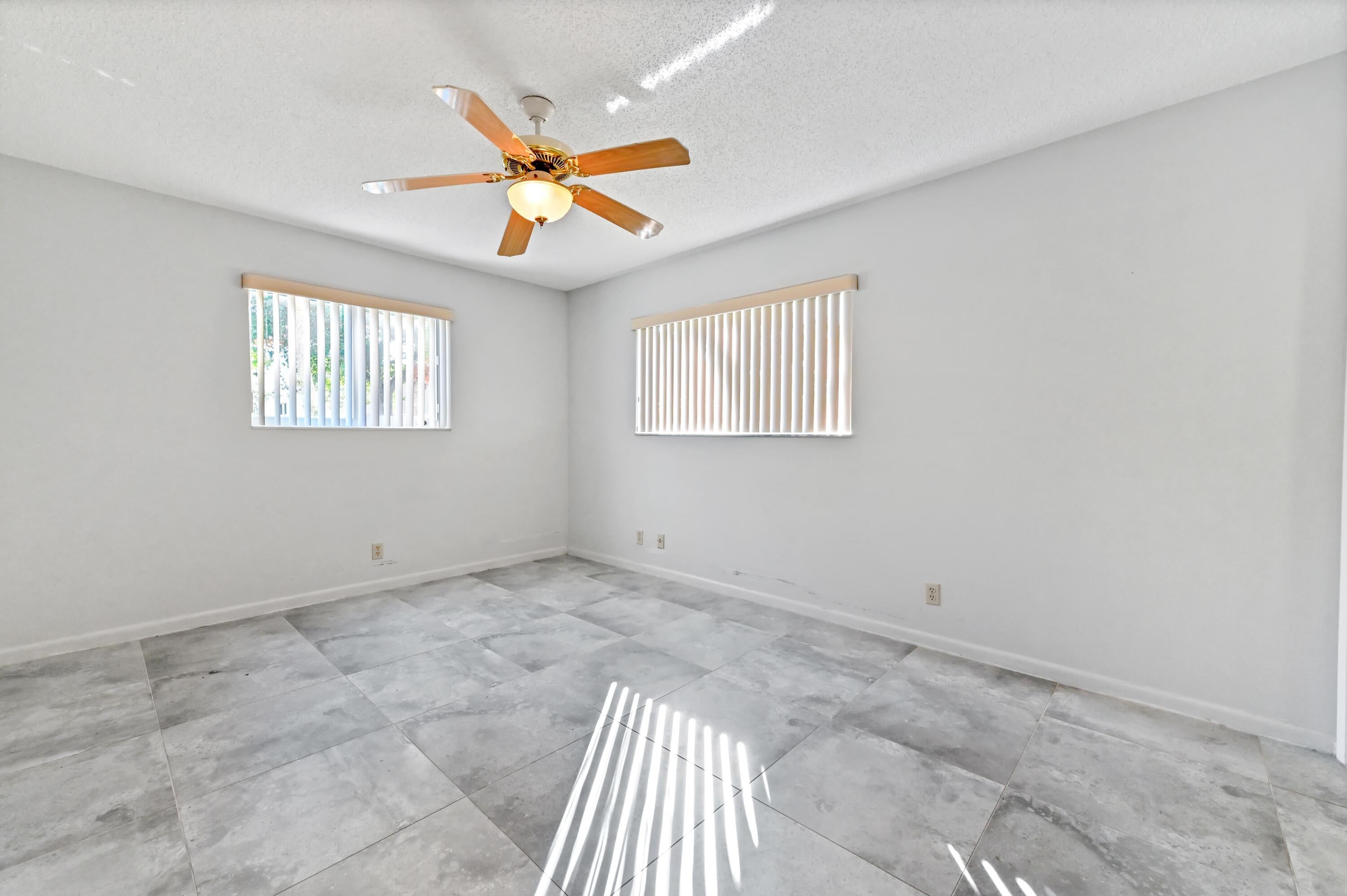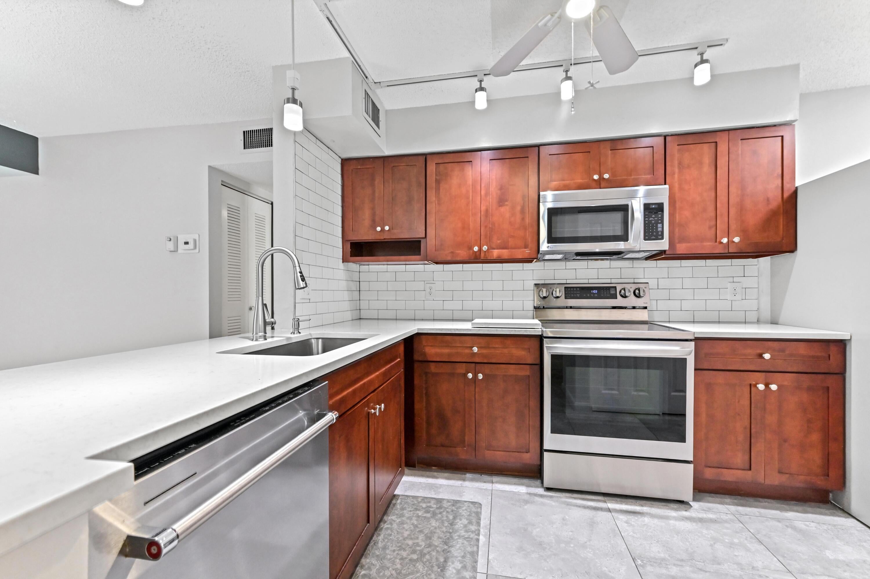 Welcome to the International Club at Villages of Oriole! This desirable 55+ first-floor condo features 2 bedrooms, 2 bathrooms, and valuable upgrades throughout. The kitchen was beautifully remodeled 3 years ago, boasting sleek quartz countertops, new appliances, bar seating, and an enlarged pantry. Enjoy peace of mind with hurricane windows installed approximately 10 years ago. The functional layout includes a combined living and dining area leading to an enclosed patio with roll-up shutters for year-round relaxation, while the primary bedroom offers a spacious walk-in closet for ample storage.Beyond the unit, the lifestyle here is exceptional. You will have access to a pool exclusively for this neighborhood, offering a quiet retreat close to home. Additionally, the main clubhouse serves as the social hub of the community, featuring a movie theater for entertainment and two additional poolsone indoor and one outdoorensuring you can swim comfortably in any weather. Conveniently located near shopping and dining, this home offers the perfect blend of modern comfort and resort-style recreation.