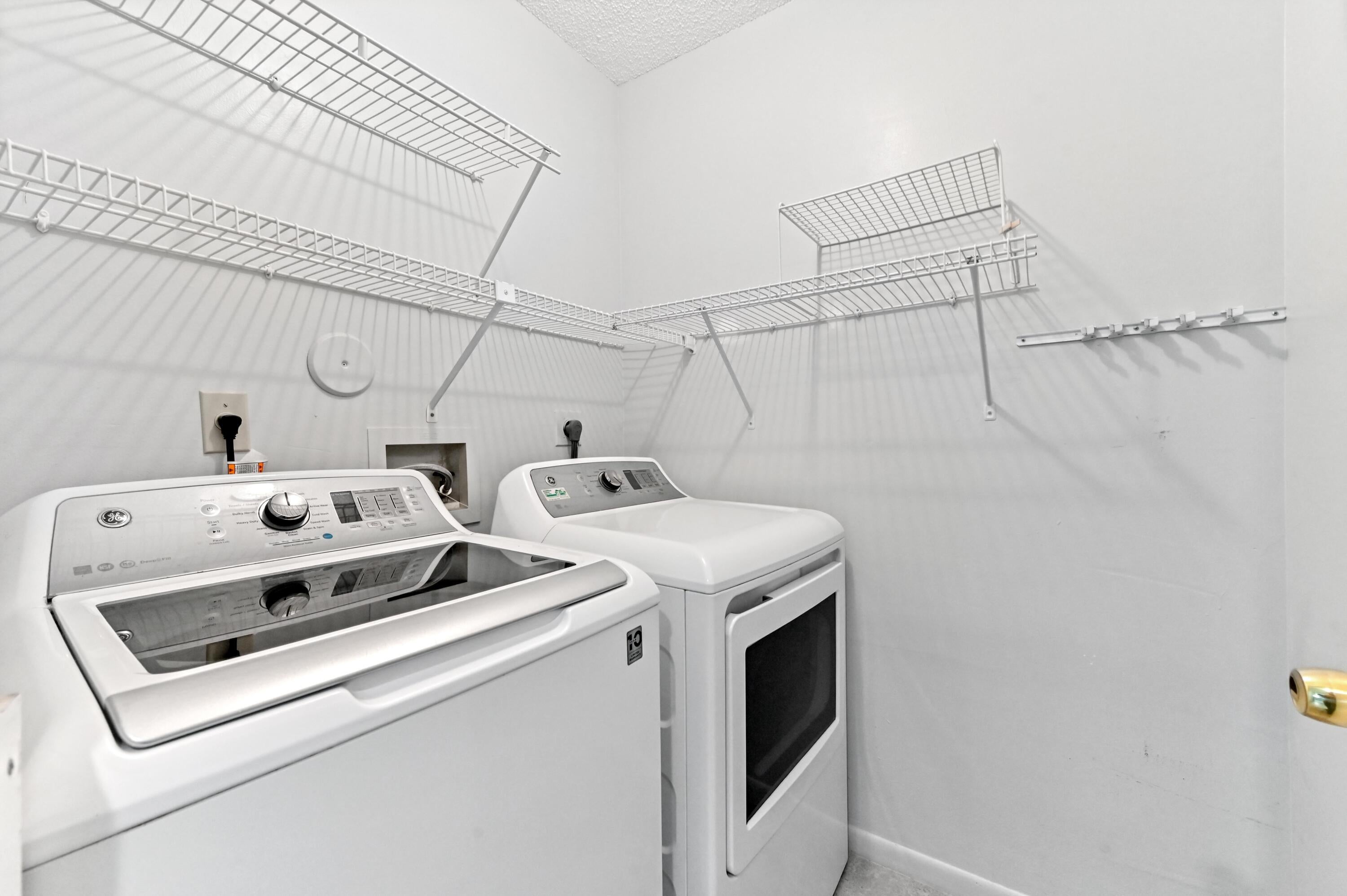 Dishwasher, Disposal, Dryer, Fire Alarm, Ice Maker, Microwave, Range - Electric, Refrigerator, Smoke Detector, Storm Shutters, Washer, Washer/Dryer Hookup, Water Heater - Elec