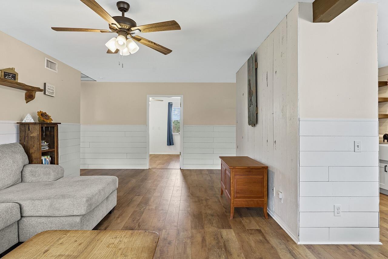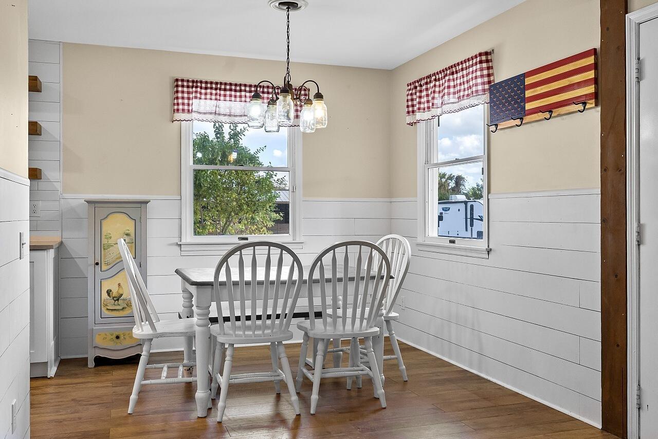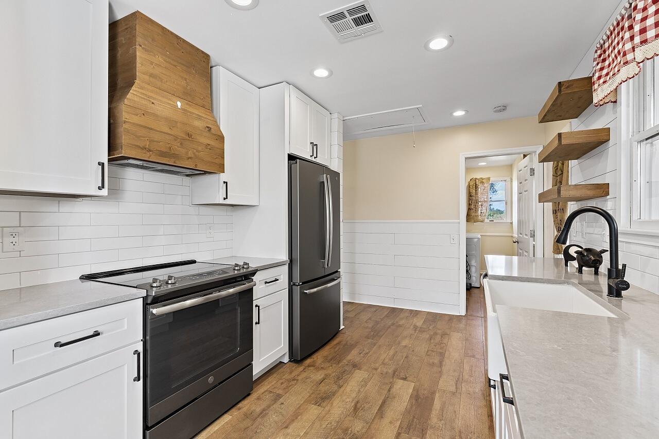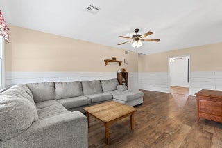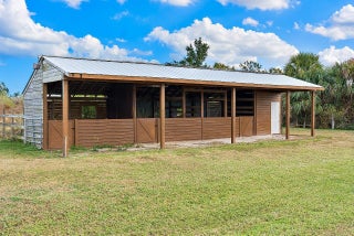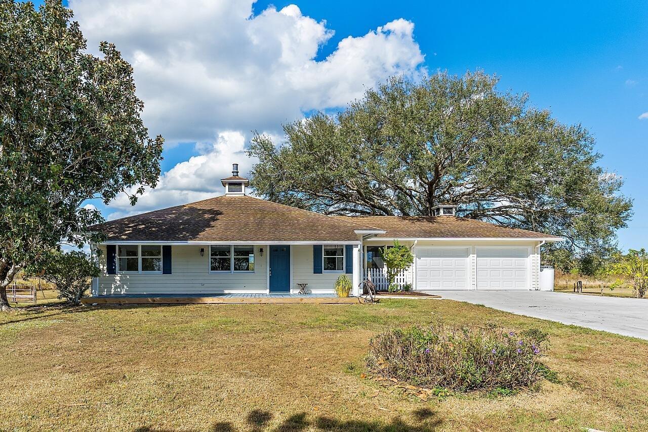 Charming farmhouse style ranch on a 1.32 acre lot. Zoned AG-1, designed for relaxed country living. This 3-bed, 2-bath home offers a 2-car garage, abundant parking & wide open space. Equestrian ready with 3 horse stalls & storage room. Enjoy peace of mind with a 2023 AC & a new roof in process. The upgraded kitchen features white cabinets, custom vent hood, gray quartz counters, slate GE stainless appliance package, backsplash & floating shelves. Inviting living space w/ shiplap accents, adding warmth and character. A rare blend of modern updates & rural charm.
