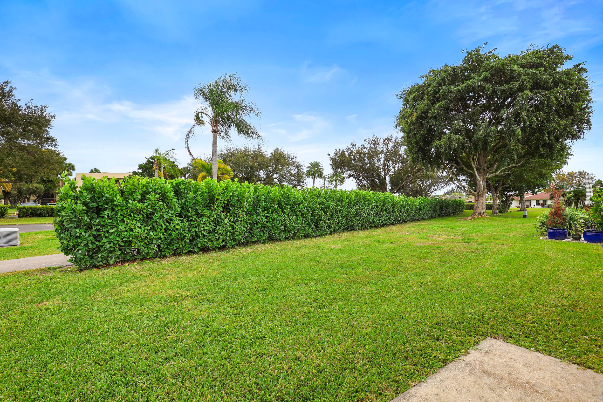 Welcome to this beautifully maintained 2-bedroom, 2-bath villa nestled in the highly desirable 55+ section of Las Verdes in Delray Beach--perfectly positioned just steps from one of the community pool. Enjoy the rare luxury of having what feels like your own private pool just outside your door, with all the convenience and none of the cost or maintenance.Filled with natural light, this bright and open home features a spacious living area with tile flooring, high-hat lighting, and a flexible layout ideal for both everyday living and entertaining. The kitchen offers warm wood cabinetry and stainless steel appliances, while both the primary and guest suites feature ensuite baths for comfort and privacy. A charming den with sliding glass doors that open to an expansive back yard area,creating a beautiful indoor-outdoor flow, perfect for enjoying the South Florida lifestyle. The garage includes a washer and dryer, and major updates such as a brand-new A/C (2024) and water heater (2025) provide peace of mind. Las Verdes offers an exceptional resort-style lifestyle with three pools and Jacuzzis, pickleball and tennis courts, a fitness center, clubhouse, library, bocce, shuffleboard, scenic walking trails, and a full calendar of social and fitness activities. All of this is just minutes from Delray's beautiful beaches, Atlantic Avenue, renowned dining, shopping, and everyday conveniences. With a prime corner location and low HOA fees that include cable, and exterior maintenance, this move-in-ready villa is ideal for full-time living or a seasonal retreat. Come experience the lifestyle and value that make Las Verdes one of Delray Beach's most sought-after 55+ communitiesschedule your private showing today!