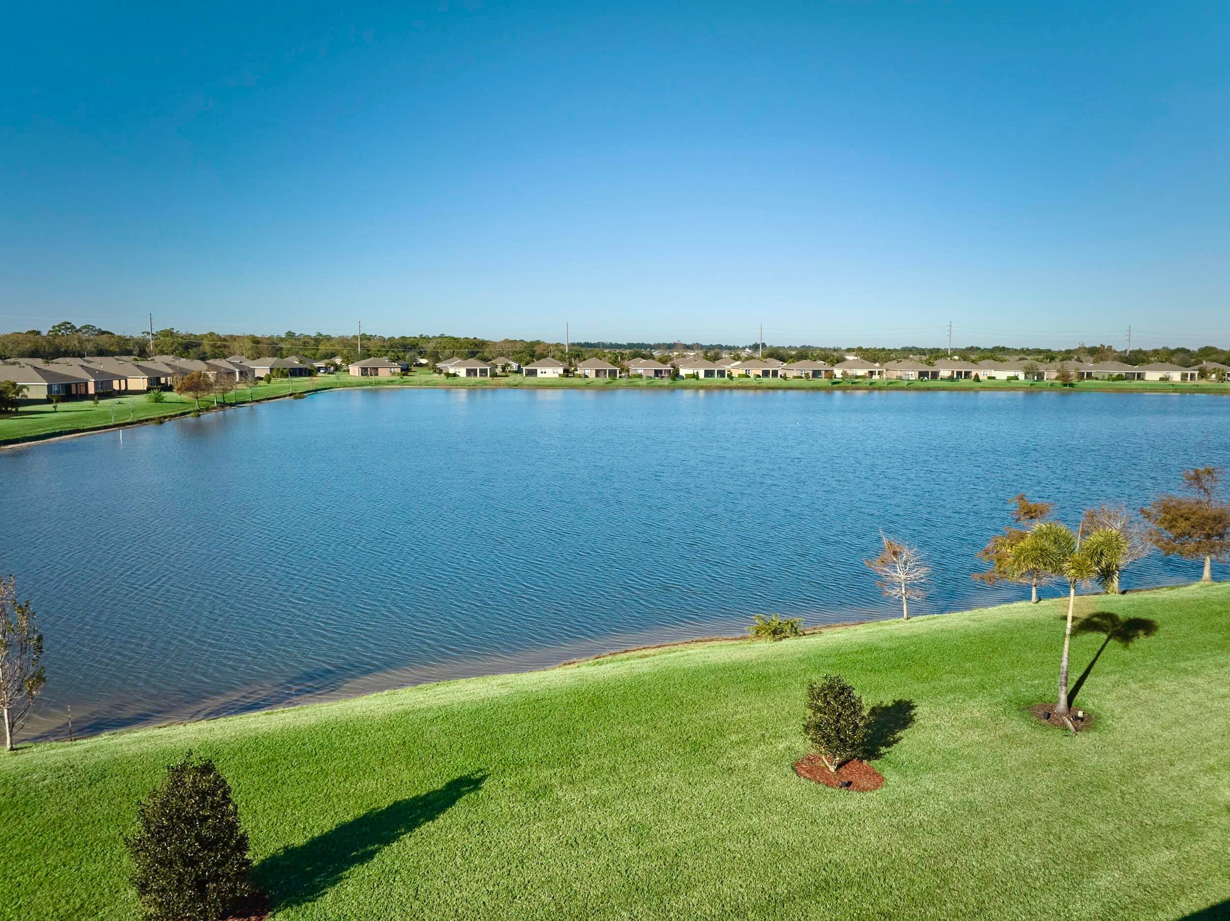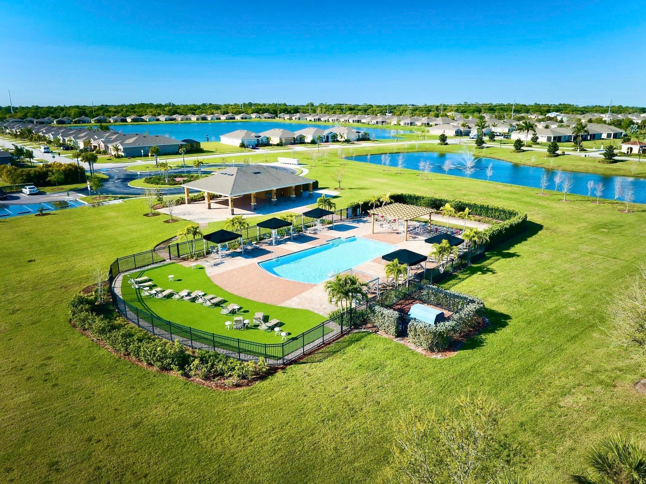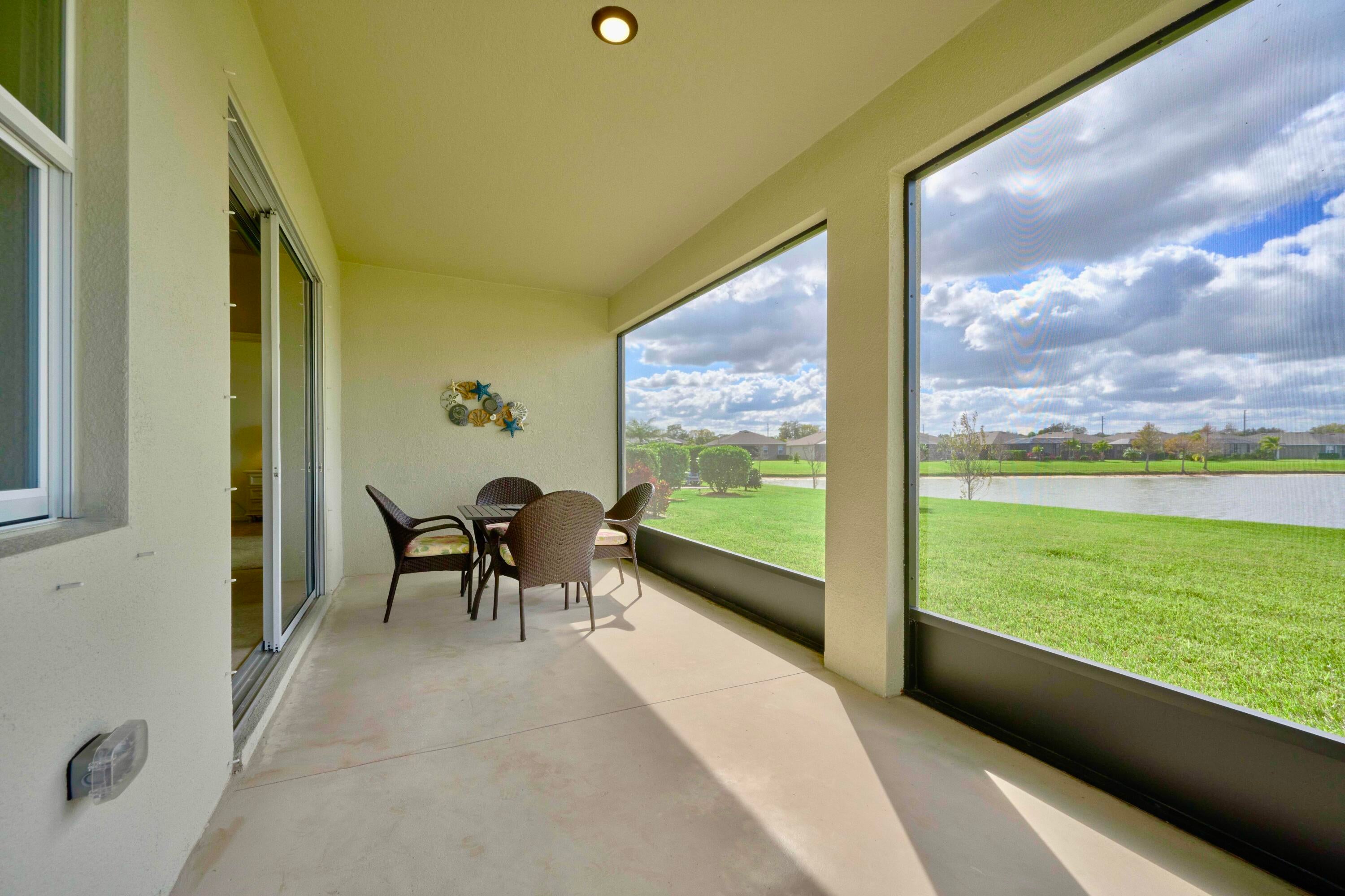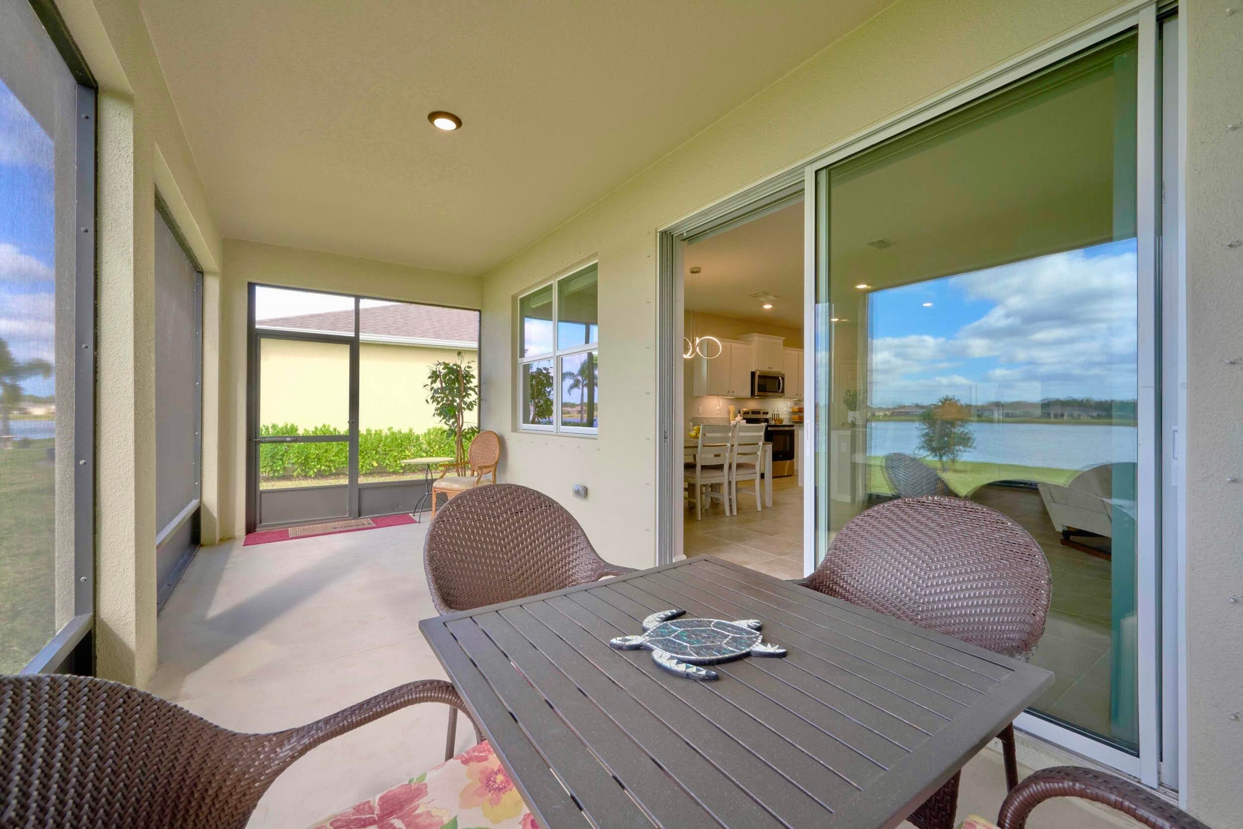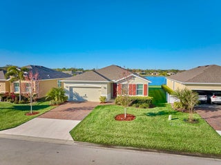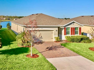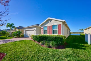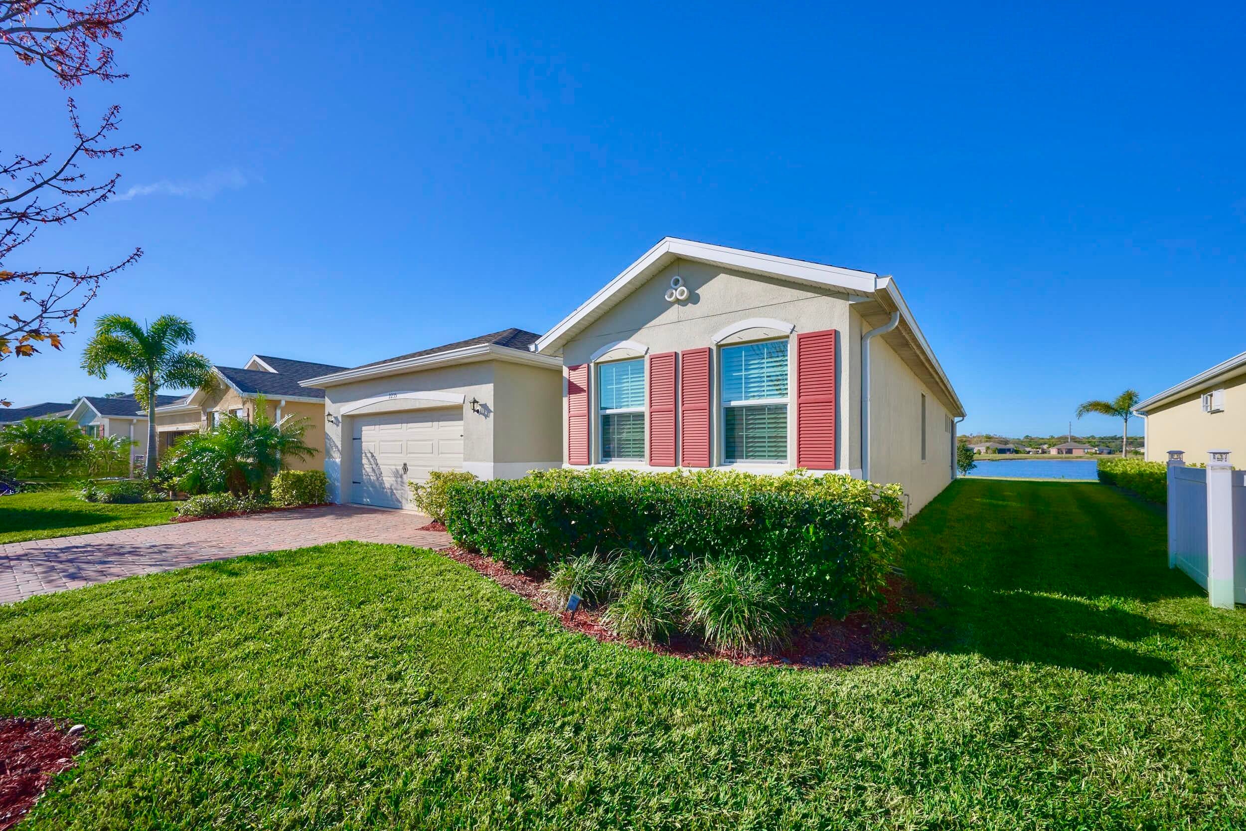 UNDER CONTRACT - 2021 BEAUTIFUL WATERFRONT HOME at The Cove at Falcon Trace -- a desirable community of newer concrete block homes w/fountained lakes & amenities in the coastal town of Vero Beach. Lightly occupied seasonally, this Delray OPEN CONCEPT home of over 2,000sf/ac, approx 2,700 gross sf, w/4BD, 2BA & 2CAR Gar. KITCHEN w/white cabs, granite c/t, walk-in pantry & island overlooking living/dining spaces. Tile floors in living & wet areas. Split floorplan includes a spacious BEDRMSUITE: 2 walk-in closets, ensuite bathrm, and tranquil waterviews. Relax on the covered, screened patio and enjoy backyard panoramas and stunning sunsets. Plenty of space to build a private pool. Low HOA includes lawn care, community pool, cabana+. Mins drive to Island & Mainland attractions. MUST SEE VIDEO
