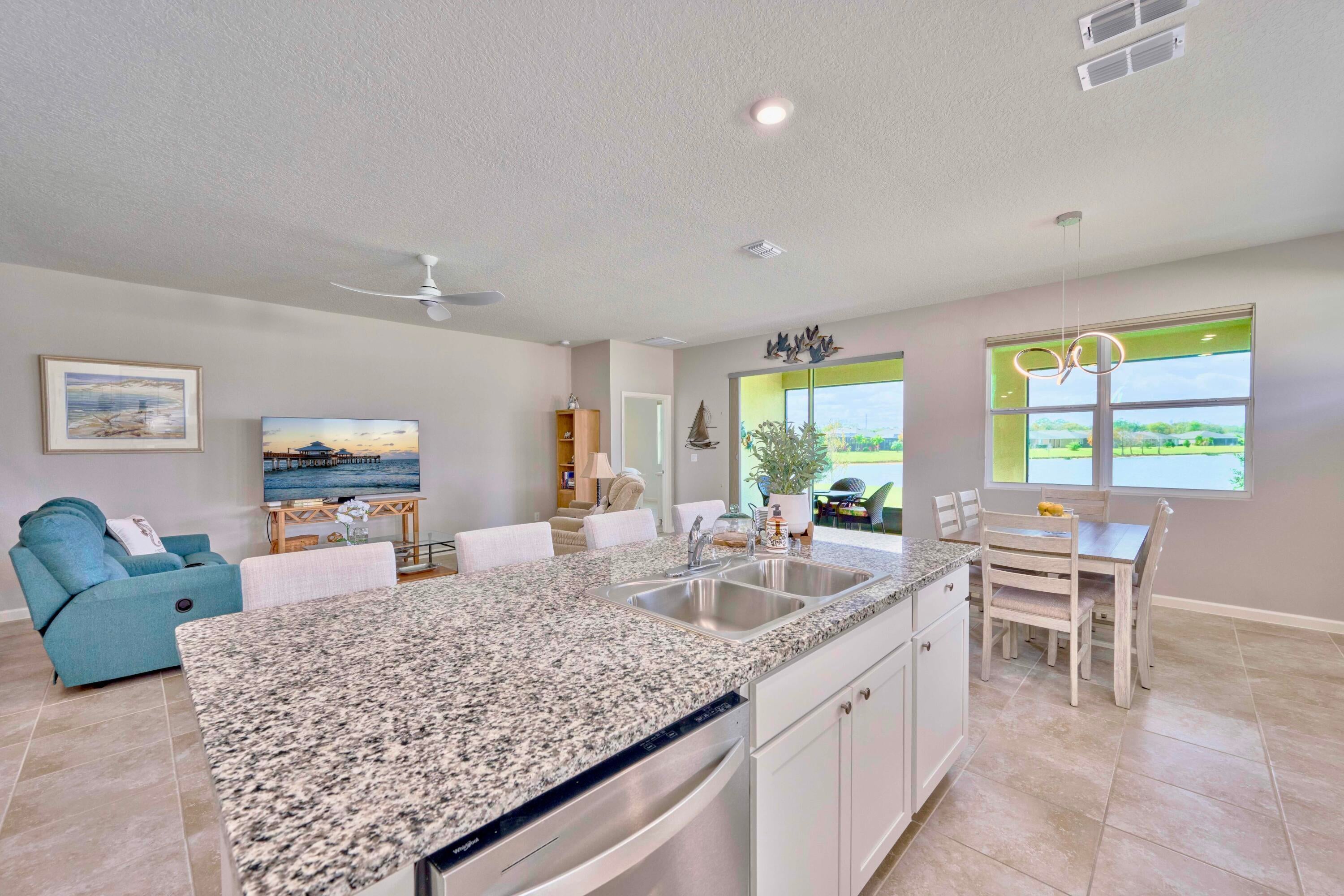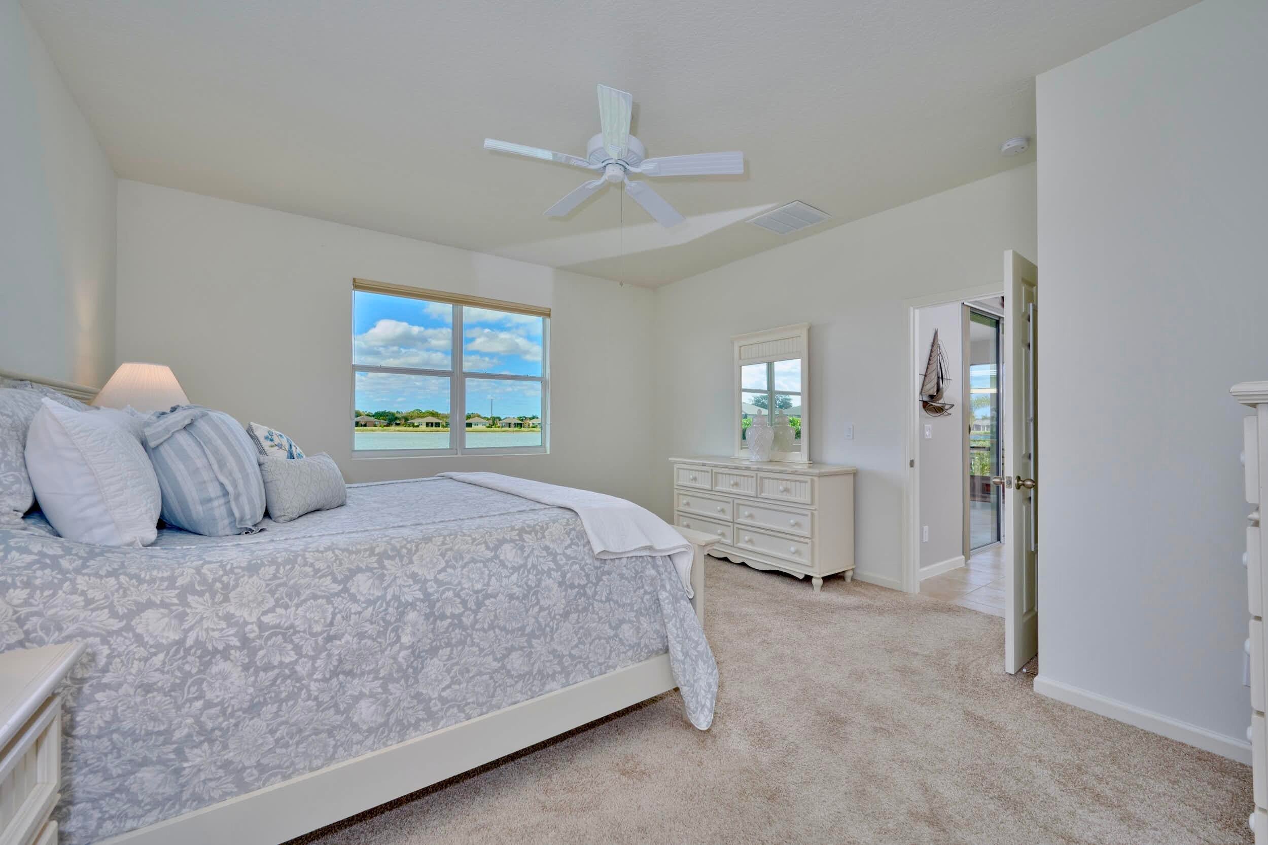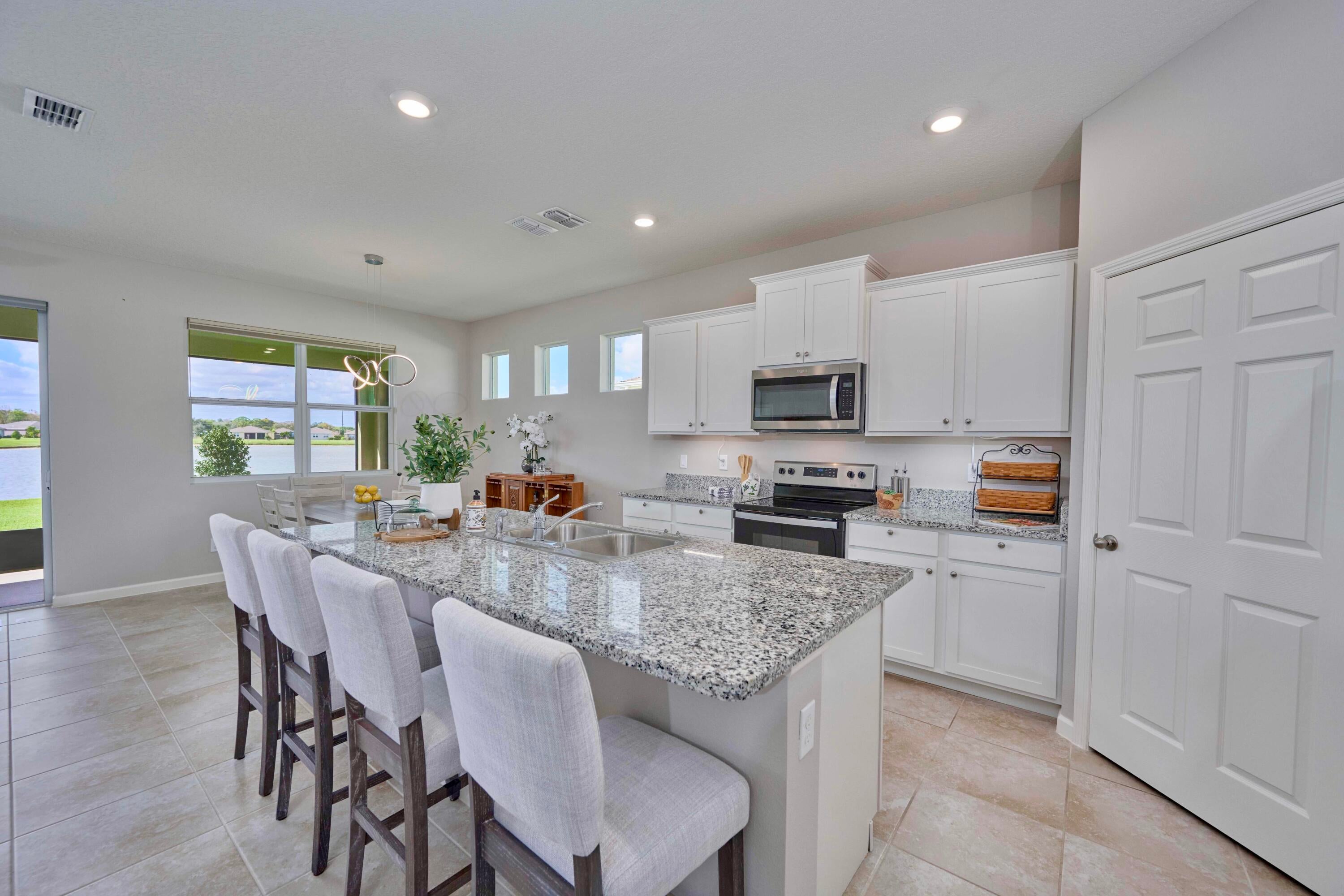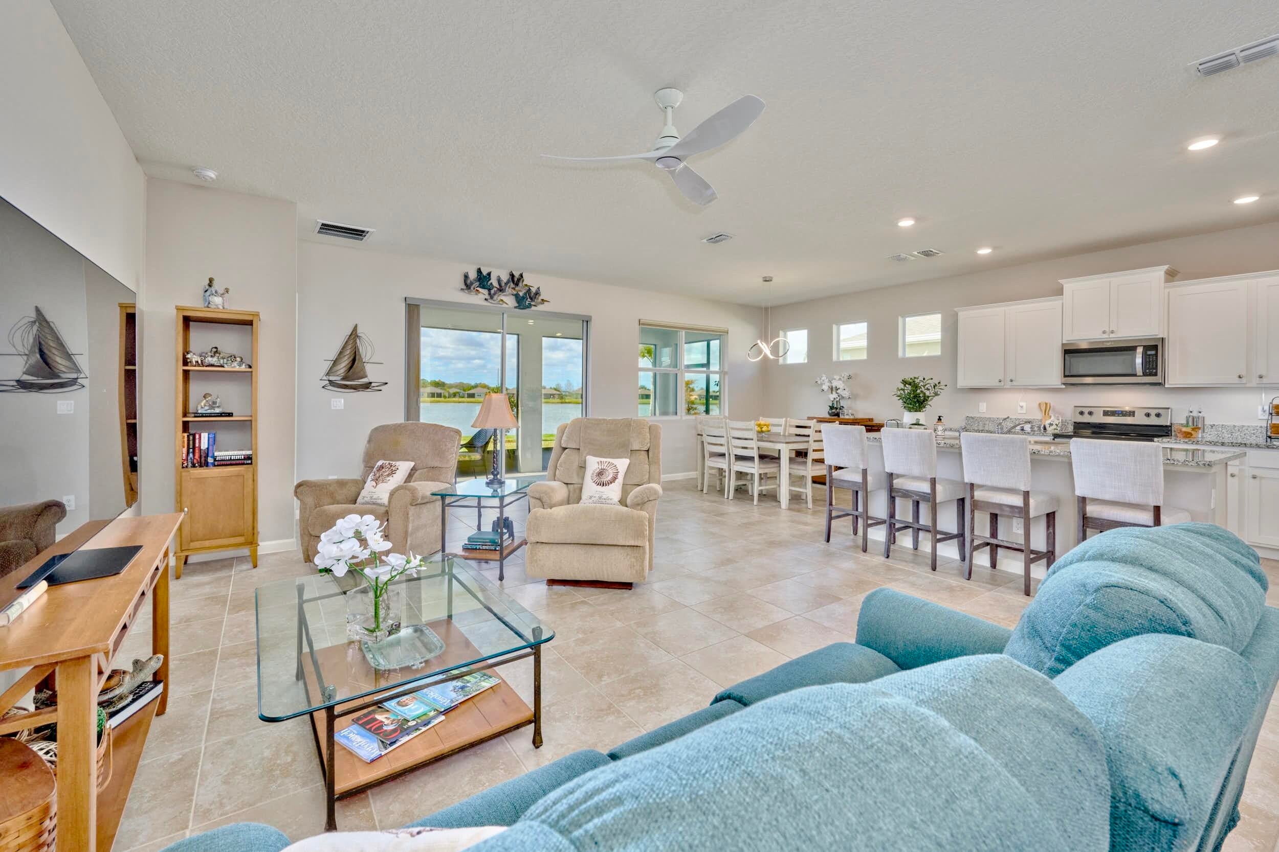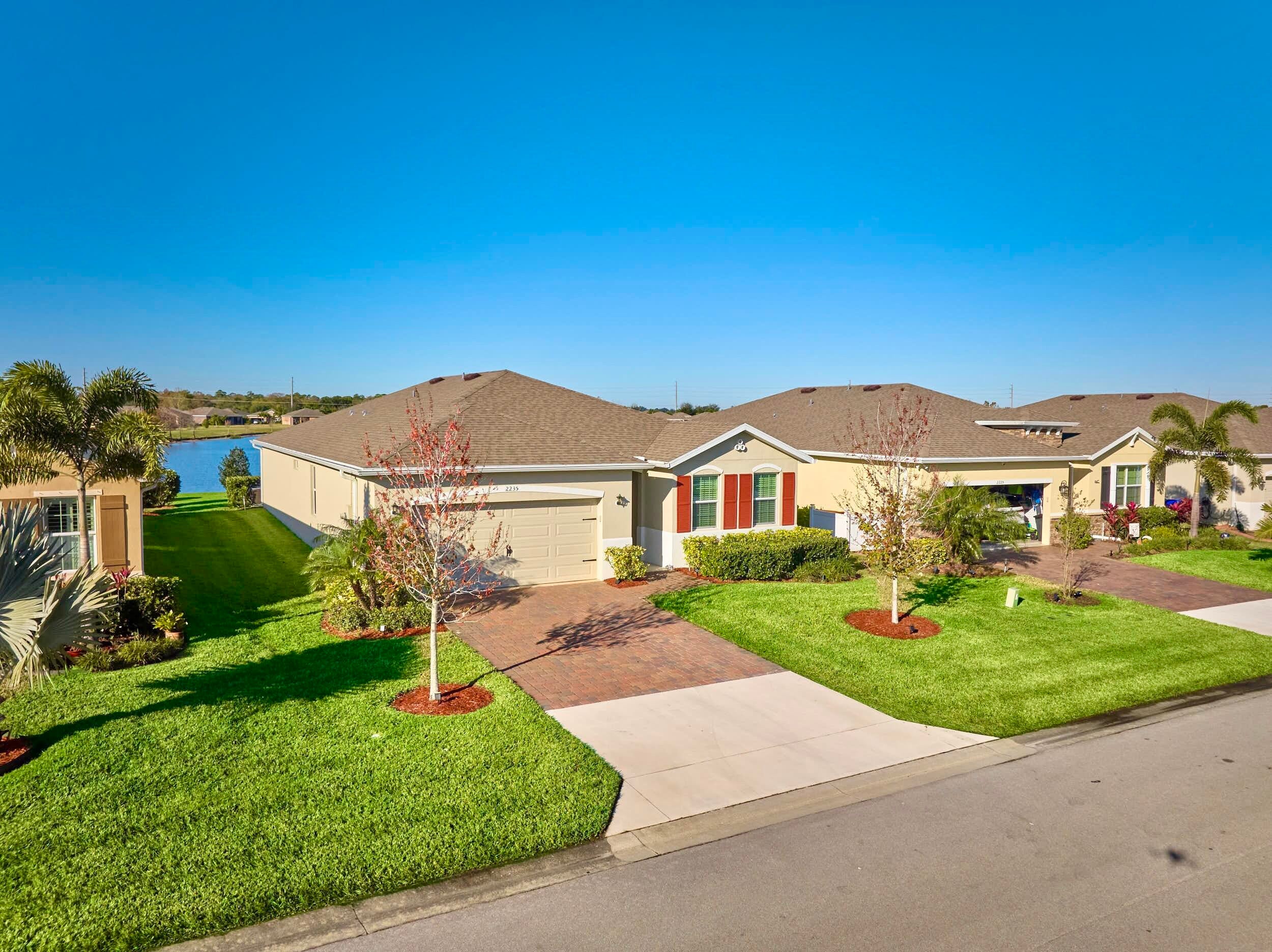 UNDER CONTRACT - 2021 BEAUTIFUL WATERFRONT HOME at The Cove at Falcon Trace -- a desirable community of newer concrete block homes w/fountained lakes & amenities in the coastal town of Vero Beach. Lightly occupied seasonally, this Delray OPEN CONCEPT home of over 2,000sf/ac, approx 2,700 gross sf, w/4BD, 2BA & 2CAR Gar. KITCHEN w/white cabs, granite c/t, walk-in pantry & island overlooking living/dining spaces. Tile floors in living & wet areas. Split floorplan includes a spacious BEDRMSUITE: 2 walk-in closets, ensuite bathrm, and tranquil waterviews. Relax on the covered, screened patio and enjoy backyard panoramas and stunning sunsets. Plenty of space to build a private pool. Low HOA includes lawn care, community pool, cabana+. Mins drive to Island & Mainland attractions. MUST SEE VIDEO