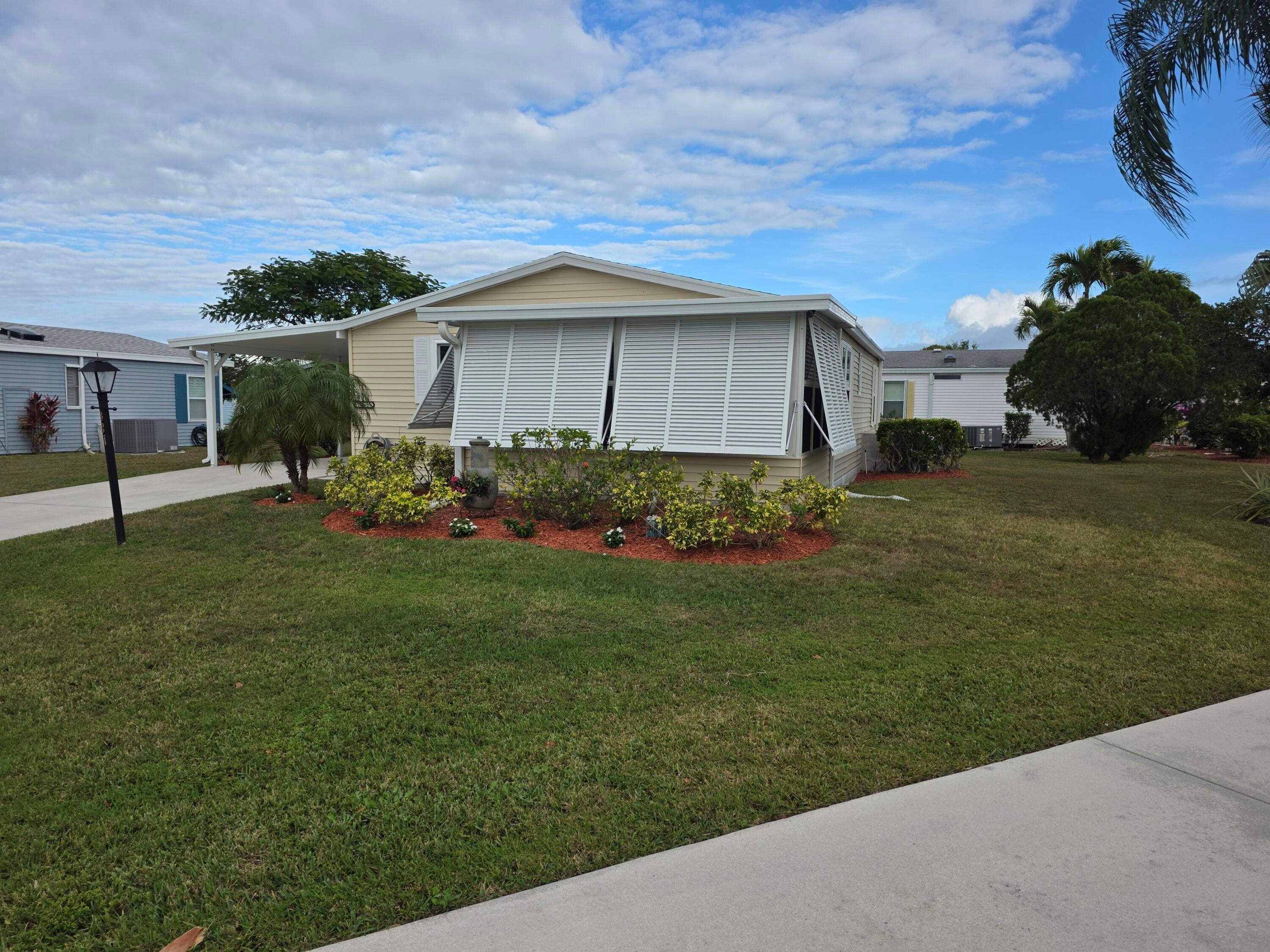 LAND OWNED! NEW to MARKET. Cozy, move in ready home. All laminate floors thru out. Stainless steel appliances. Extra-large kitchen with dining area. King size master bedroom. Roof -2019, no polybutylene piping, all replaced. Very large storage shed. This home is super clean. Being offered 90% furnished. Very neat Florida landscaping. Many upgrades. Call for easy showing.
