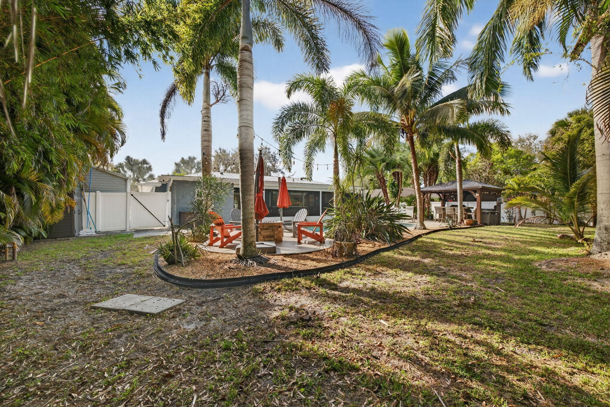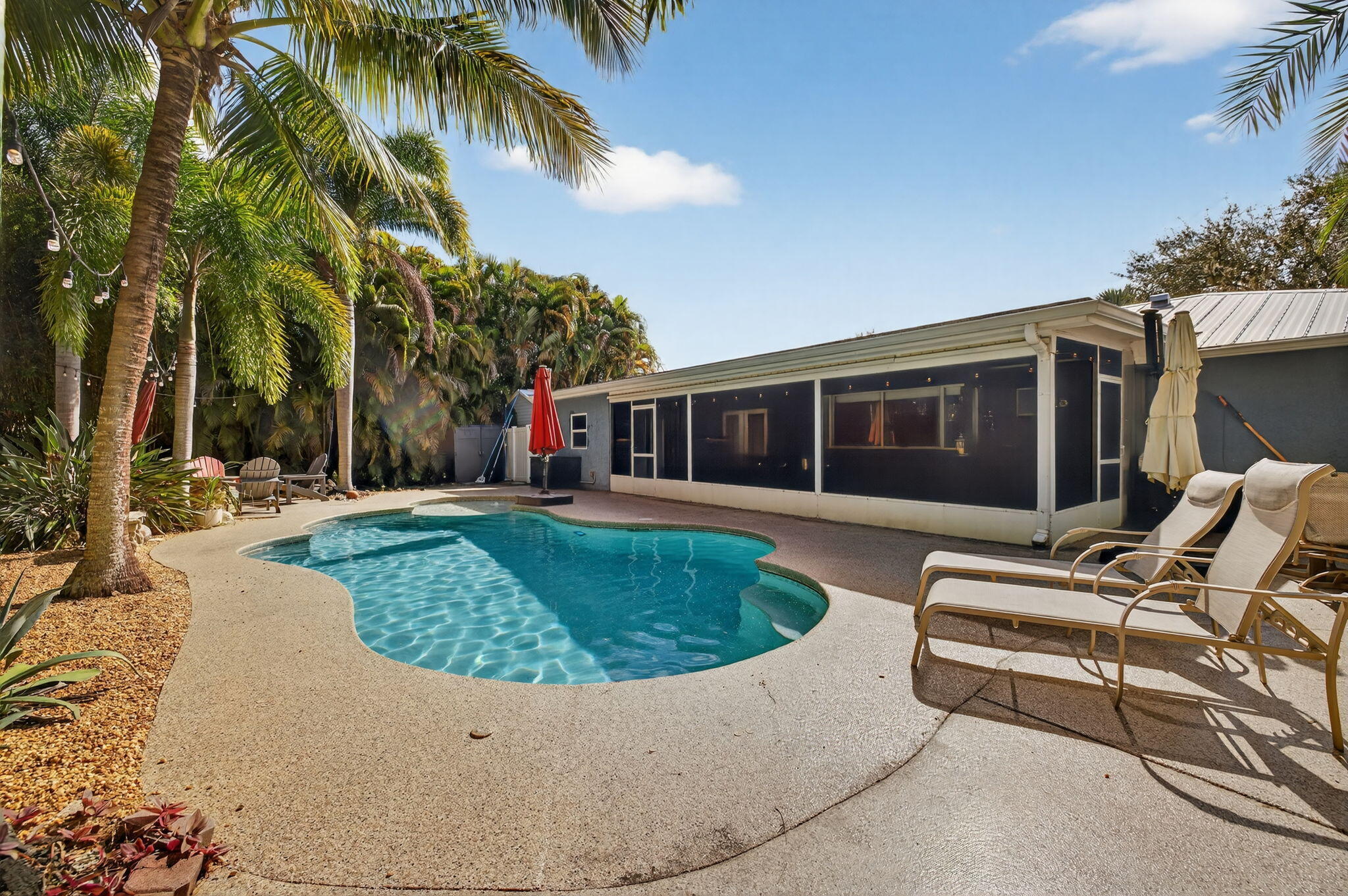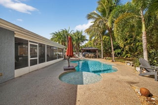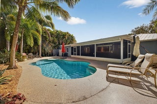 Fun & move-in-ready 3-BR + Office, 2-BA, 2-car garage home is packed with upgrades. Metal roof, storm windows, upgraded attic insulation, & updated electrical system with generator hookup bring peace of mind, while fresh interior paint, custom blinds, ceiling fans, & refreshed bathrooms add comfort & style. The remodeled kitchen is the heart of the home, featuring updated cabinetry & convenient pass-thru window opening to the expansive back porch--perfect for entertaining while overlooking the sparkling pool & bar area. Fully fenced yard, epoxy-coated garage & porch floors, paver entertaining spaces, cabana, & RV/Boat parking. Close to quaint downtown Fort Pierce, Treasure Coast beaches, parks, boating, dining, this home is made for enjoying family, friends, and unforgettable memories.