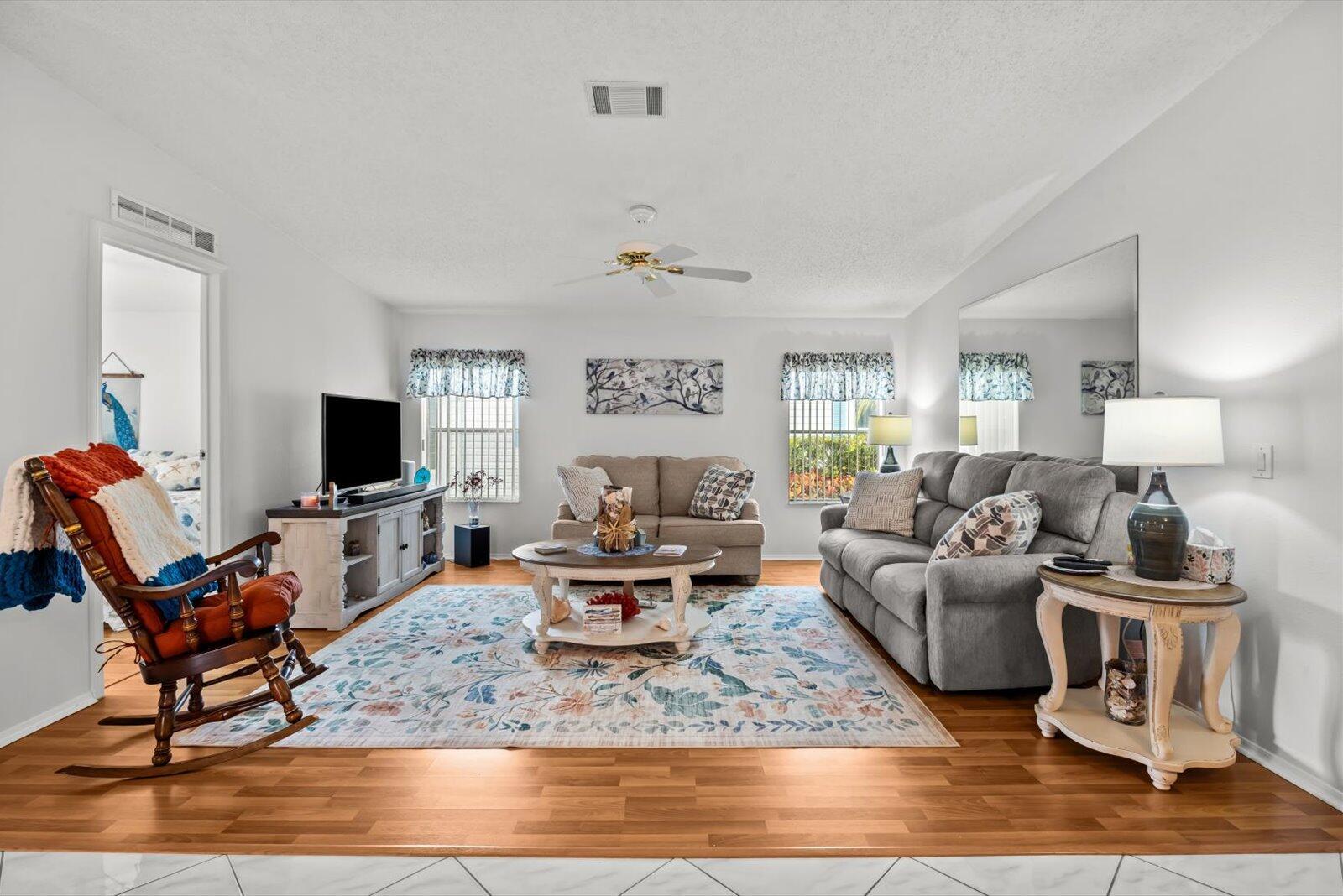 LAND OWNED OVERSIZED THREE BEDROOMS. OVER 1600 SF OF LIVING SPACE. OPEN FLOOR PLAN. BEAUTIFUL HOME FOR ENTERTAINING. FORMAL DINING ROOM. COMPLETE SET OF HIGH VELOCITY ACCORDIAN SHUTTERS NICE SIZE LANAI, WITH GREAT AREA OUTBACK FOR GRILLING OR HAVING FAMILY GET TOGETHERS. AMPLE PARKING. WELL FOR IRRGATION. THIS HOME WILL NOT LAST LONG. CABLE TV AND INTERNET & TRASH PICKUP INCLUDED IN HOA. LOTS OF AMENITIES INCLUDING THREE CLUBHOUSES THREE POOLS/ W HOT TUB THEATER, THREE EXCERCISE ROOMS, PICKLEBALL, TENNIS, SHUFFLEBOARD, HORSESHOES, GOLF, & MUCH MORE. VERY ACTIVE 55 AND OLDER COMMUNITY. RV & BOAT STORAGE ON SITE.