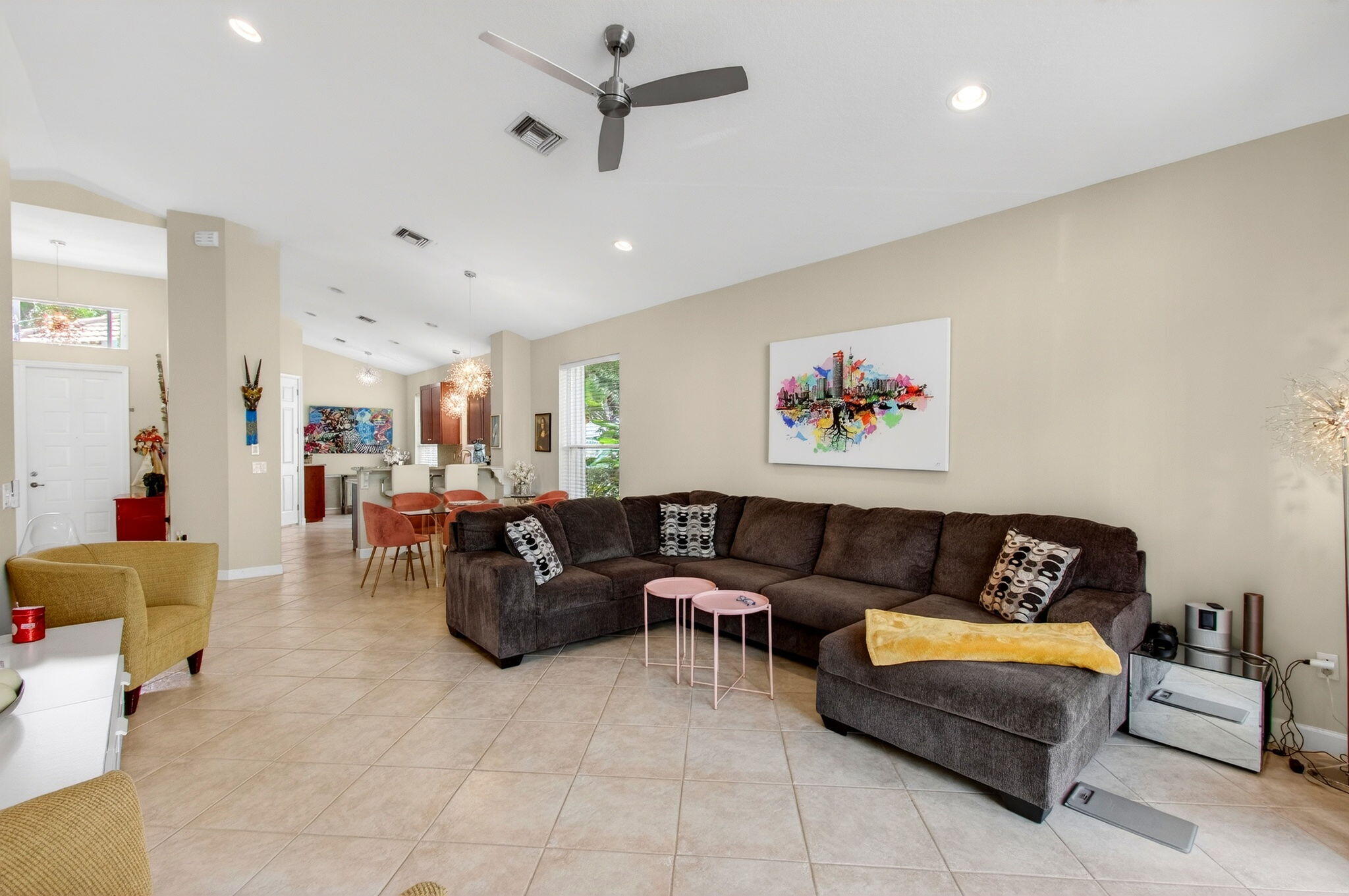 Addison Green 2BR plus den Heated pool, screened lanai Pie-shaped lot Accordion shutters Aberdeen Golf and Country Club membership required Approx 15 mi to PBI, 42 mi to FLLIn Addison Green at Aberdeen Golf and Country Club, 6737 Southport Drive in Boynton Beach, Palm Beach County delivers the kind of South Florida lifestyle that lives as well indoors as it does outside. The single-story plan offers 2 bedrooms plus a den and 2 baths, plus a 2-car garage and paver driveway. Tile flooring, vaulted living-room ceilings, and wide sliding doors keep the home bright and open, flowing straight to the screened lanai. Step out to a heated pool with a covered patio area ready for morning coffee, sunset dinners, and weekend gatherings.Comfort upgrades include accordion shutters, a newer A/C, a newer refrigerator, updated fixtures, and fresh interior paint. The pie-shaped lot provides extra outdoor breathing room, while the screened enclosure helps keep the pool area comfortable year-round. Aberdeen is a private, membership-required community featuring a Jim Fazio-designed 18-hole golf course, PGA-certified instruction and events, a racquet complex with 14 Har-Tru tennis courts and 6 pickleball courts, and multiple dining and social venues supported by an active activities calendar. The clubhouse is within walking distance, and the location is convenient to shopping and services, with the ocean nearby and airports approximately 15 miles to Palm Beach International Airport (PBI) and 42 miles to Fort Lauderdale-Hollywood International Airport (FLL). Membership fees per club schedule (2025-2026): joining fee Golf $100,000, Tennis $93,000, Social $90,500; annual dues Golf $21,095, Tennis $16,915, Social $15,165; monthly capital contributions Golf $115, Tennis $100, Social $95; annual food and beverage minimum Family $1,250 or Single $625, plus applicable taxes and fees. Age-restricted community (55+) with an 80/20 policy per association. Buyer to verify membership category, fees, and community rules directly with the club and association.