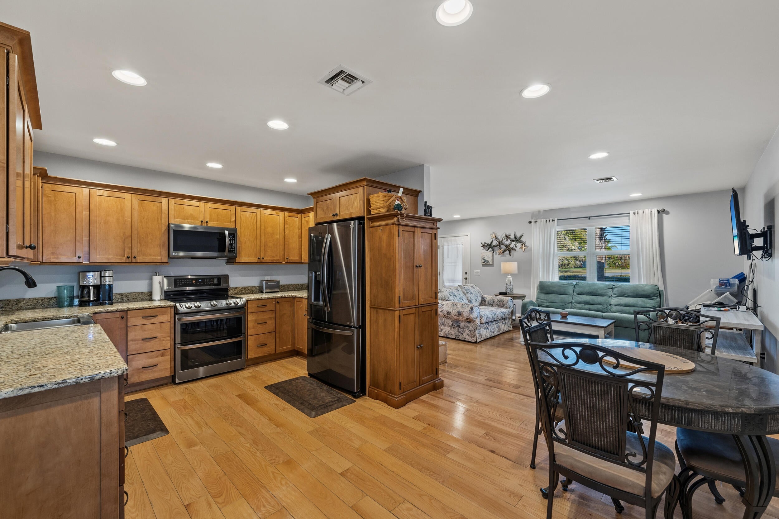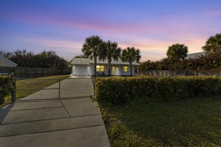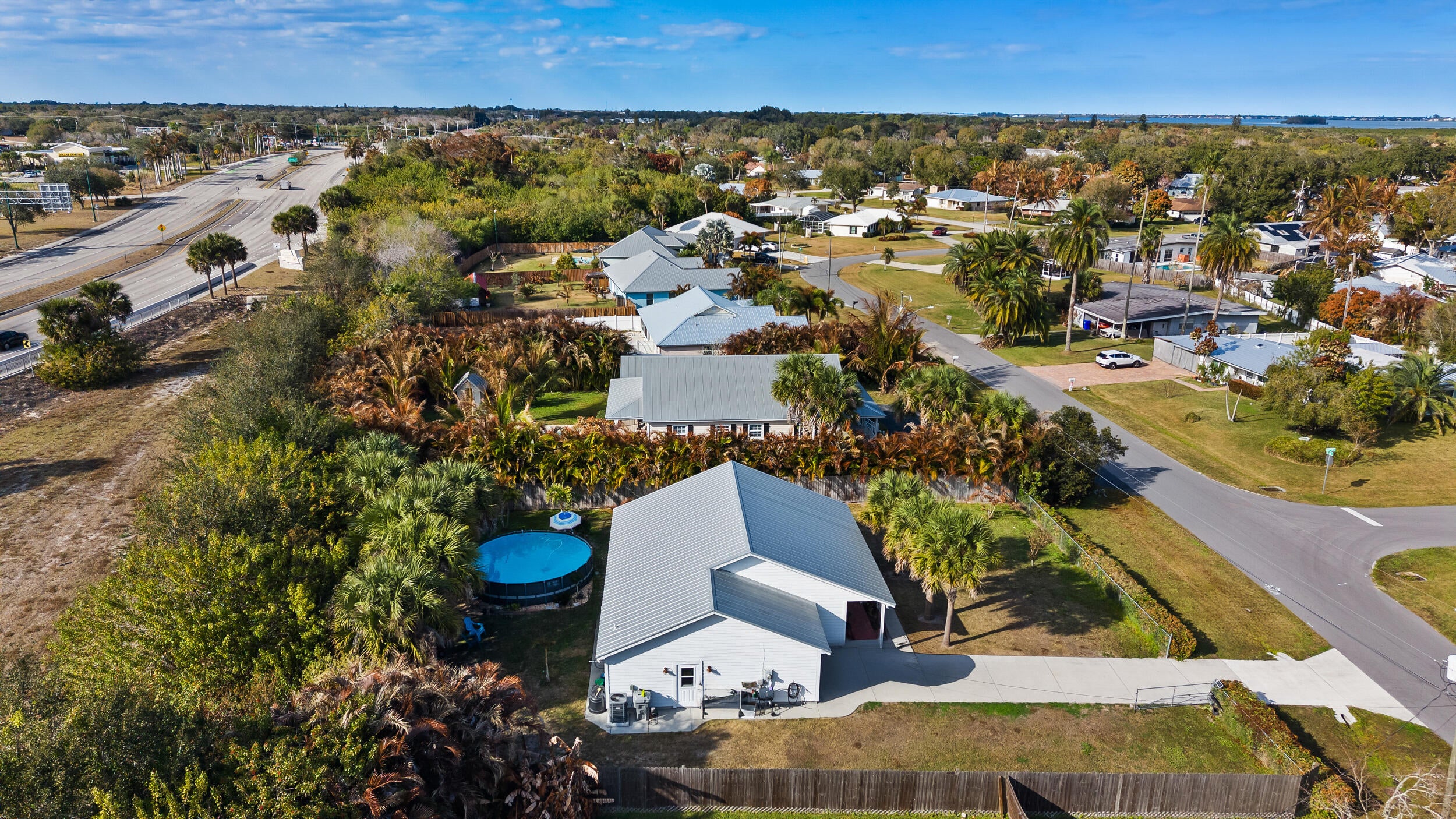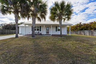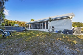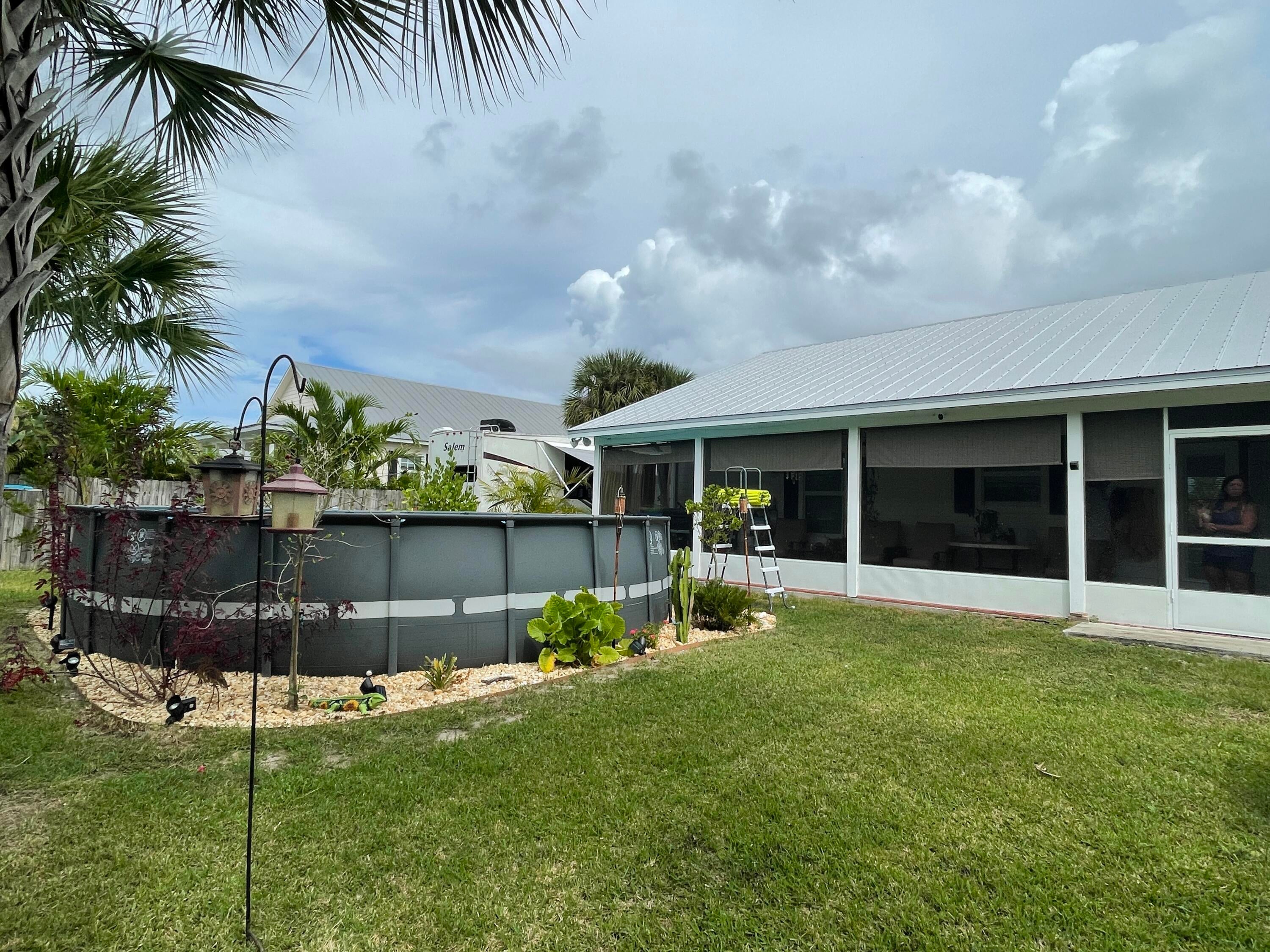 Built in 2017, this move-in ready home features a metal roof and impact glass windows with no HOA restrictions! The open floor plan offers hardwood flooring throughout, high ceilings with recessed lighting, walk-in closets, and wide doorways with pocket doors. The chef's kitchen features granite countertops, stainless steel appliances, and eat-in dining. The bathroom includes an oversized shower and granite vanity. On a fully fenced 13,000 sq ft lot with screened back porch overlooking private yard and pool, covered front porch, extra-deep one-car garage, and attic with plywood flooring and standing head height. Although modest in size, this home feels spacious and bright. Connected to Indian River water and sewer with additional hookup for RV waste