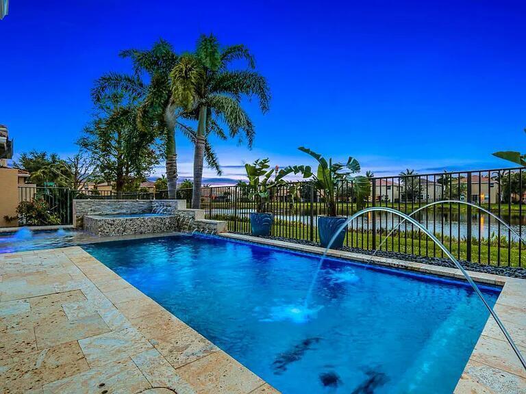 Welcome to 7942 Parsons Pine Dr in Boynton Beach, FL. Beautiful Opal model in the gated community of Greystone in Boynton Beach. Newly renovated kitchen with farmhouse sink, brushed gold hardware, green granite countertops. Renovated bathroom with stone counters, brand new glass shower door, and all new hardware and faucets in brushed gold. Travertine marble tiles downstairs and upstairs luxury vinyl plank flooring. Out back is a heated salt water pool and spa with full automation, fountains, jets, and laminar lights surrounded by Dominican Coral tile, overlooking a beautiful lake. Plantation shutters on the patio doors, Also 2-car air conditioned garage, 24 Hour manned gate, amenities include mini soccer field, basketball court, community pool, volleyball, tennis court, and more.