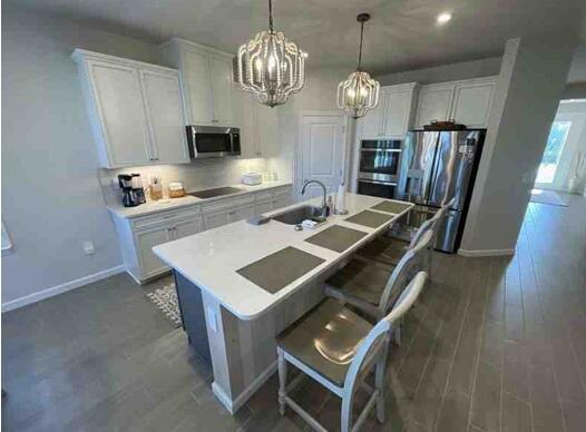 Professional photos to follow. A recent professional appraisal is attached, posted and available upon request confirms a value of $10,000 above the current asking price, reinforcing the exceptional quality and investment appeal of this residence. $10,000 in seller assist is available towards closing costs at FULL ASKING PRICE of $560,000. This meticulously curated luxury home offers three bedrooms, three bathrooms, with 2 on ensuites, a three-car garage, and a generously sized flex room easily convertible to a fourth bedroom. Set on an oversized premium lot, the property enjoys tranquil pond and lake views alongside a pristine natural preserve, delivering privacy, serenity, and picturesque surroundings.With over $165,000 in builder and post-construction upgrades, the home reflects uncompromising attention to detail. Enhancements include upgraded porcelain tiles throughout the entire home, high-end quartz kitchen Island, and quartz vanities in all bathrooms that compliments the exquisite Porcelain tiles work. This includes a high-end water softener and reverse osmosis system, along with 24 added designer recessed lighting fixtures that elevate the interior ambiance. The primary suite is offered with a high-end designer bedroom set, Tray ceiling with shiplap, Upgraded chandelier and hi hats, Raised Solid Wood Vanities, Quartz Counter tops ~Kohler shower rain head, Walk in Shower with sliding glass "barn door", Tile bath creating a seamless, turnkey opportunity. The gourmet kitchen is a statement of refined design, featuring premium wall-mounted double ovens, elegant crown molding, under-cabinet lighting, and soft-close custom cabinetryideal for both everyday living and elevated entertaining. Upscale finishes continue throughout, including soaring 9.5-foot ceilings, custom plantation shutters, refined brick exterior detailing, and a bespoke bar complete with a wine cooler. Outdoor living is equally impressive with a 655-square-foot screened Lanai, enhanced by Belgard pavers, offering a sophisticated space to relax or entertain year-round. But wait, there is more. This home is equipped with a full-house portable generator, that is big enough to run the entire home, with an electrical system on a separate 240 amp panel. There is even more... a full-house surge protection. This residence presents a rare opportunity to buy a thoughtfully upgraded home where luxury, craftsmanship, and setting converge effortlessly. Also, a beautiful Club House that includes Pickleball courts, Basketball, heated pool, and a weightlifting room.
