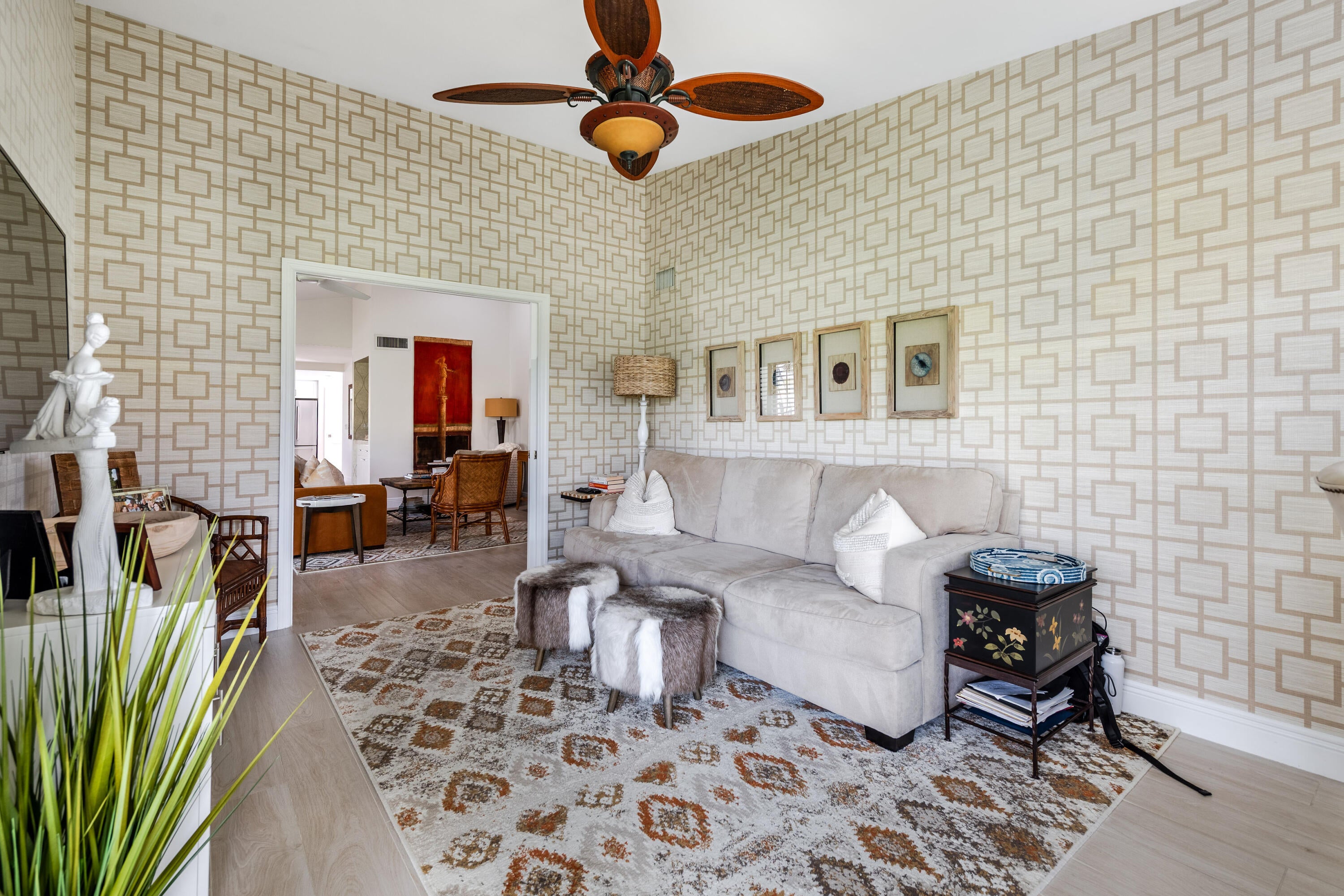 Welcome to this exquisitely renovated condo where refined finishes and effortless comfort come together. This spacious 2-bedroom, 2-bath residence with a den is filled with natural light and offers serene golf course views from a sun-drenched wraparound sunroom featuring floor-to-ceiling windows--perfect for morning coffee or evening entertaining. Thoughtfully upgraded throughout, the home showcases elegant porcelain plank flooring, quartzite countertops throughout with a quartz counter in the guest bath, custom closets in every room, and all new impact windows and impact front door. Ideally located just moments from the main clubhouse, this move-in-ready condo also features a new A/C (2021) and a new roof (2025).Offering a rare opportunity to enjoy luxury, comfort, and convenience in Gleneagles Country Club. Located in the heart of Delray Beach, Gleneagles Country Club is a mandatory residential all-ages community that offers a fantastic lifestyle with 3 dining rooms, 2 lounges, cards rooms, 19 tennis courts, 8 pickleball courts, 2 18-hole golf courses which one of them was recently renovated, 8 pools plus a State-of-the-art Fitness Center and Spa.