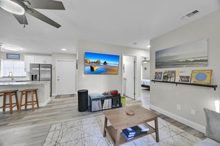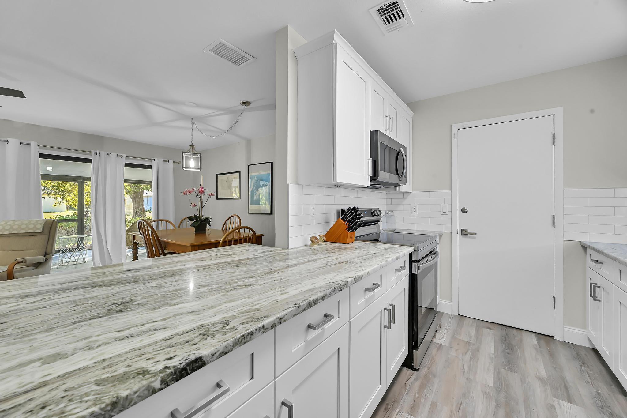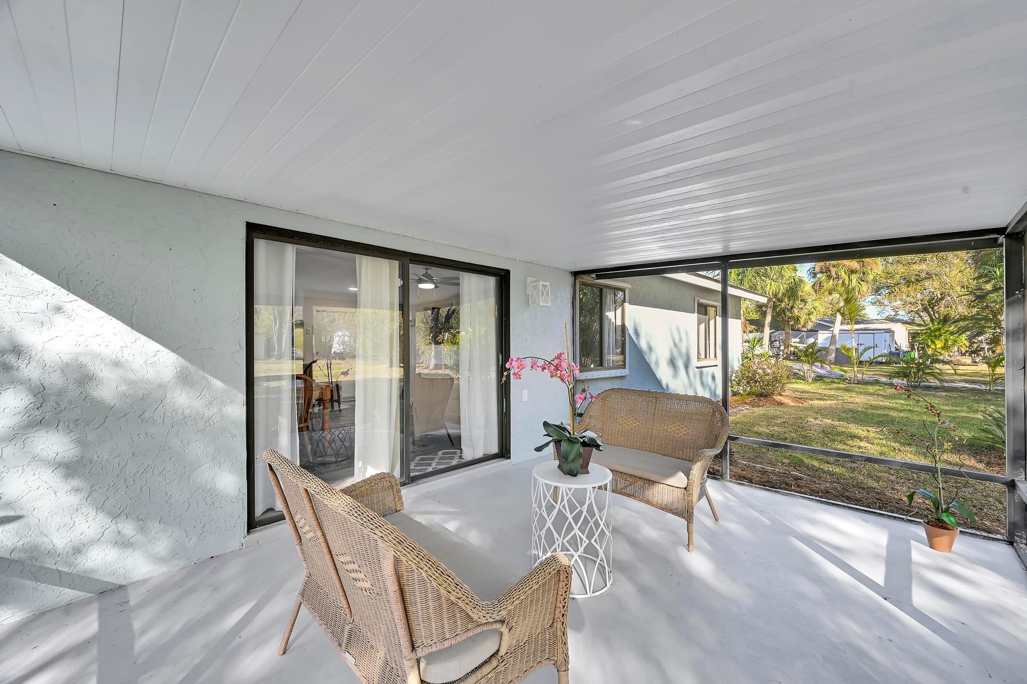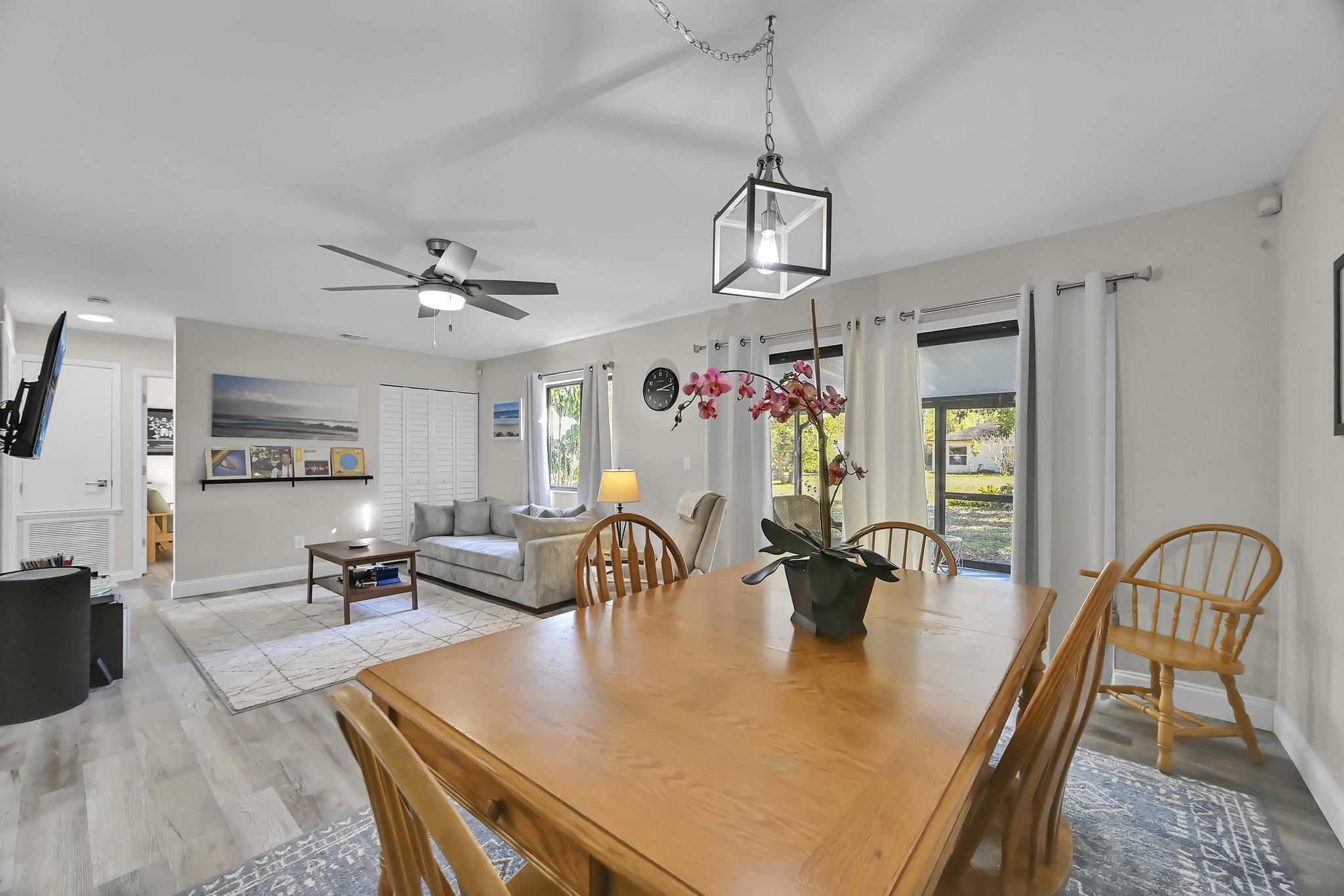 Welcome home to this beautifully renovated 2/2/1 home featuring loads of newer features! Large back yard and spacious covered screened porch--perfect for relaxing, entertaining. Enjoy peace of mind with major updates already done including a metal roof, AC, bathrooms, kitchen, appliances, waterproof vinyl floor, all new lights, fans & faucets. Located in a quiet community with a low HOA, you'll love that this neighborhood still welcomes trucks, boats, and other recreational vehicles--a rare find! Inside, enjoy an open and inviting floor plan with bright natural light and a spacious living area.