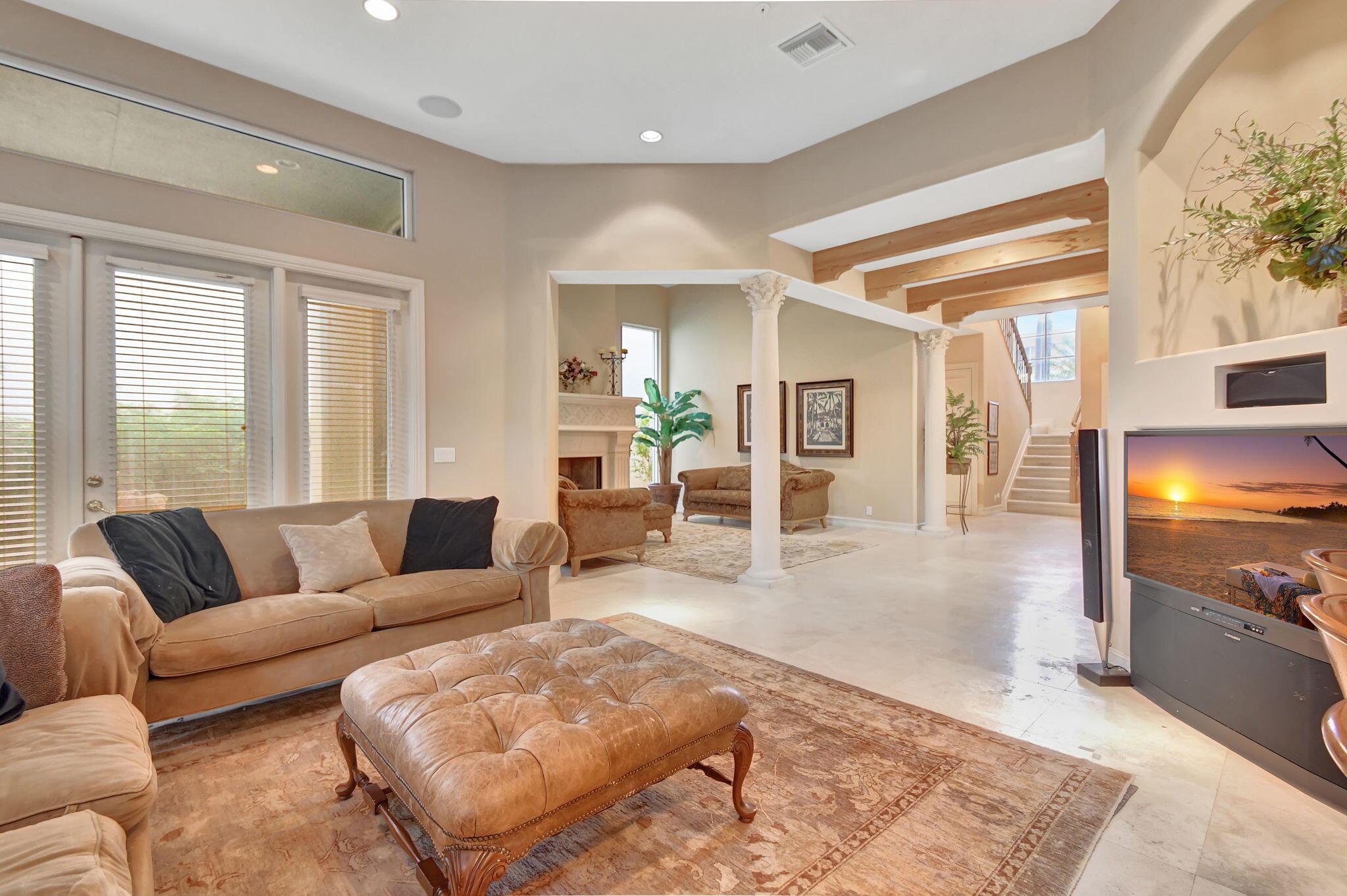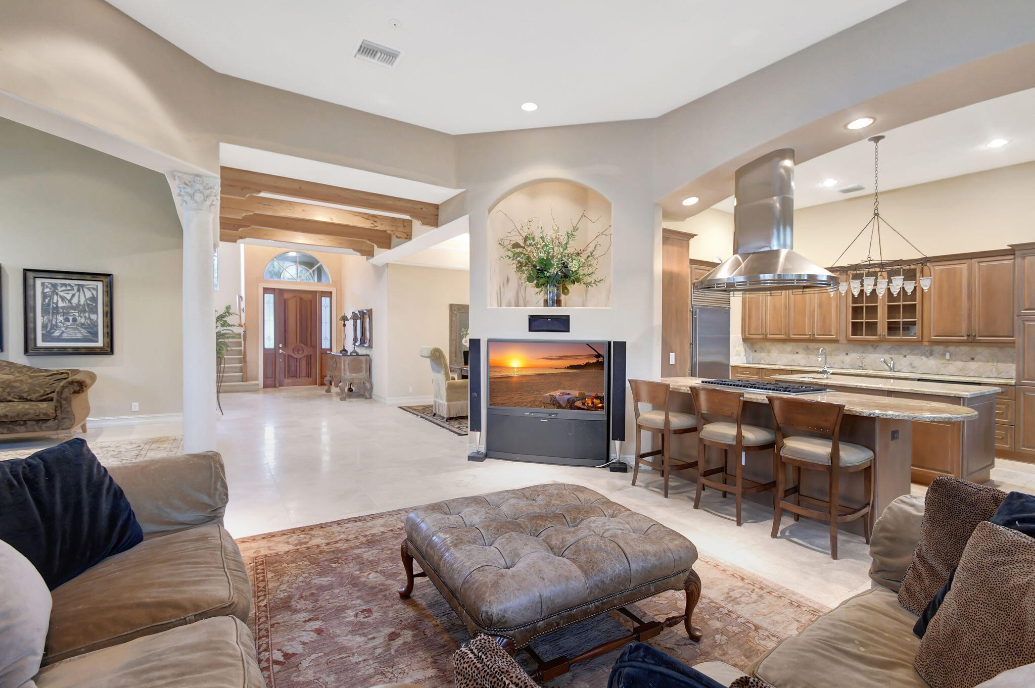 An exceptional rental opportunity in Highland Beach, just across from the Atlantic Ocean with private, deeded beach access. This stunning 2-story home, the largest model in a gated community of only 17 homes, features an open floor plan with elegant upgrades throughout. The gourmet kitchen boasts dual ovens, a gas grill, and ample counter space. The spacious living room includes a gas fireplace, while the dining room showcases a beautiful pecky cypress ceiling with exposed beams. The owner's suite offers custom closets and a luxurious master bath with a Jacuzzi tub. With pecky cypress details in the foyer and designer finishes throughout, this home is a rare find, just seconds to your private beach. Come enjoy Boca Raton & Delray Beaches Atlantic Avenue both only moments away!