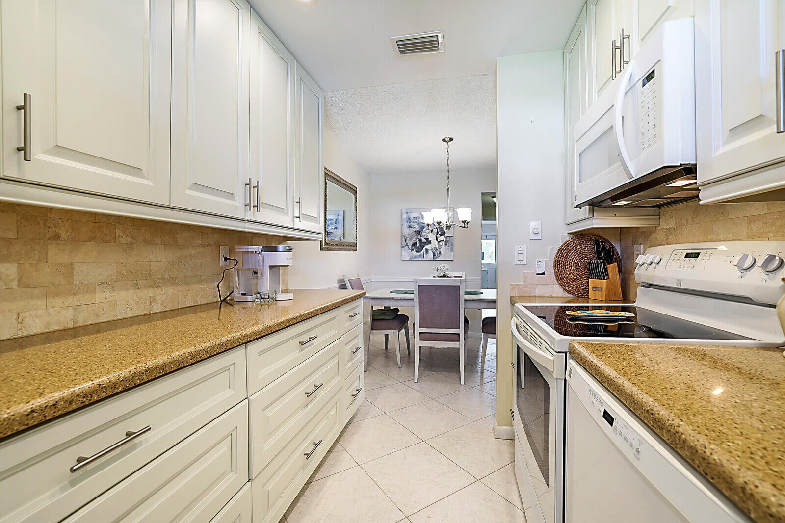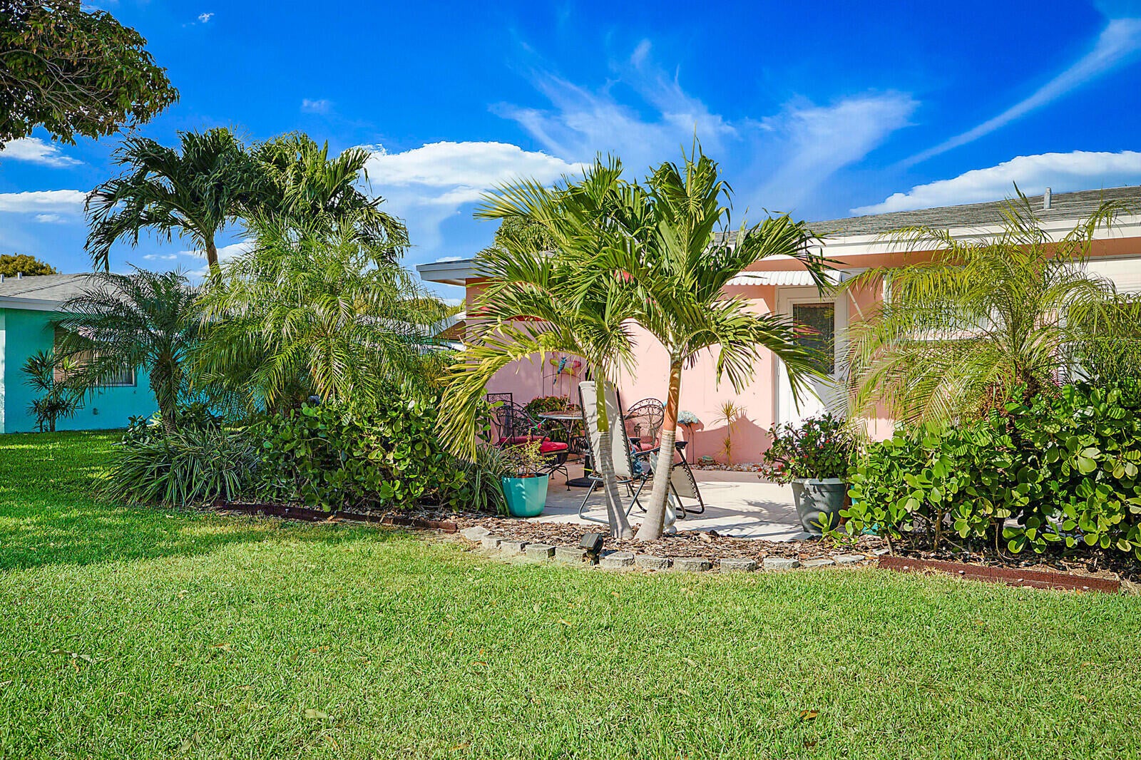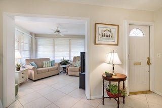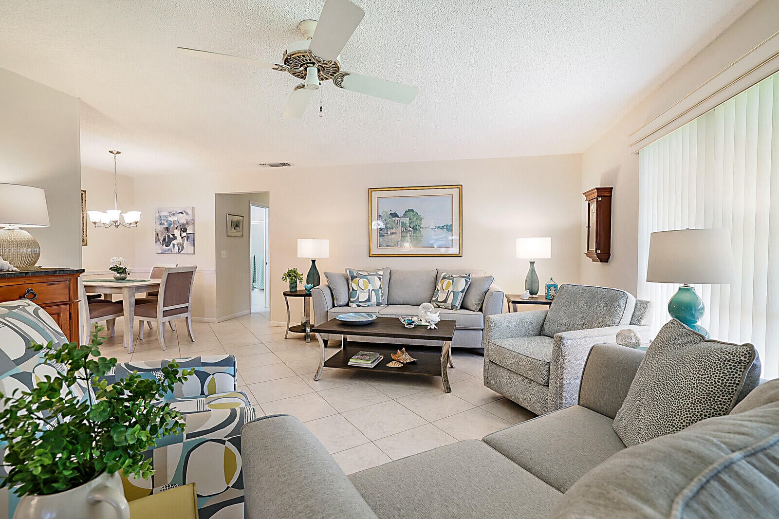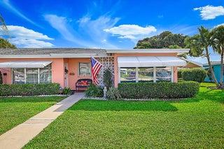 Welcome to this inviting corner-unit villa located in a desirable 55+ community in East Boynton Beach. Offering extra privacy and abundant natural light, this well-maintained home features a spacious and functional layout ideal for comfortable Florida living. The updated kitchen opens seamlessly to a large living and dining area, making it perfect for everyday living and entertaining. Tile flooring enhances the main living spaces, while the carpeted bedrooms provide warmth and comfort. The bathrooms, while not updated, have been nicely maintained and well cared for, offering a clean and timeless feel. Updated electrical adds peace of mind. Enjoy the added bonus of a generously sized sunroom, perfect for relaxing, reading, watching TV or enjoying morning coffee year-round. Step outside toa beautiful private patio surrounded by lush landscaping and uplighting, creating a serene outdoor retreat with excellent privacyideal for entertaining or unwinding in the evenings. Conveniently located near shopping, dining, and everyday conveniences, this corner villa offers a wonderful opportunity to enjoy low-maintenance living in a welcoming active adult community. This lovely unit can be offered furnished or partially furnished.