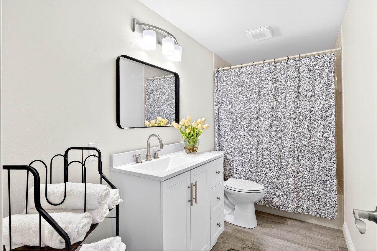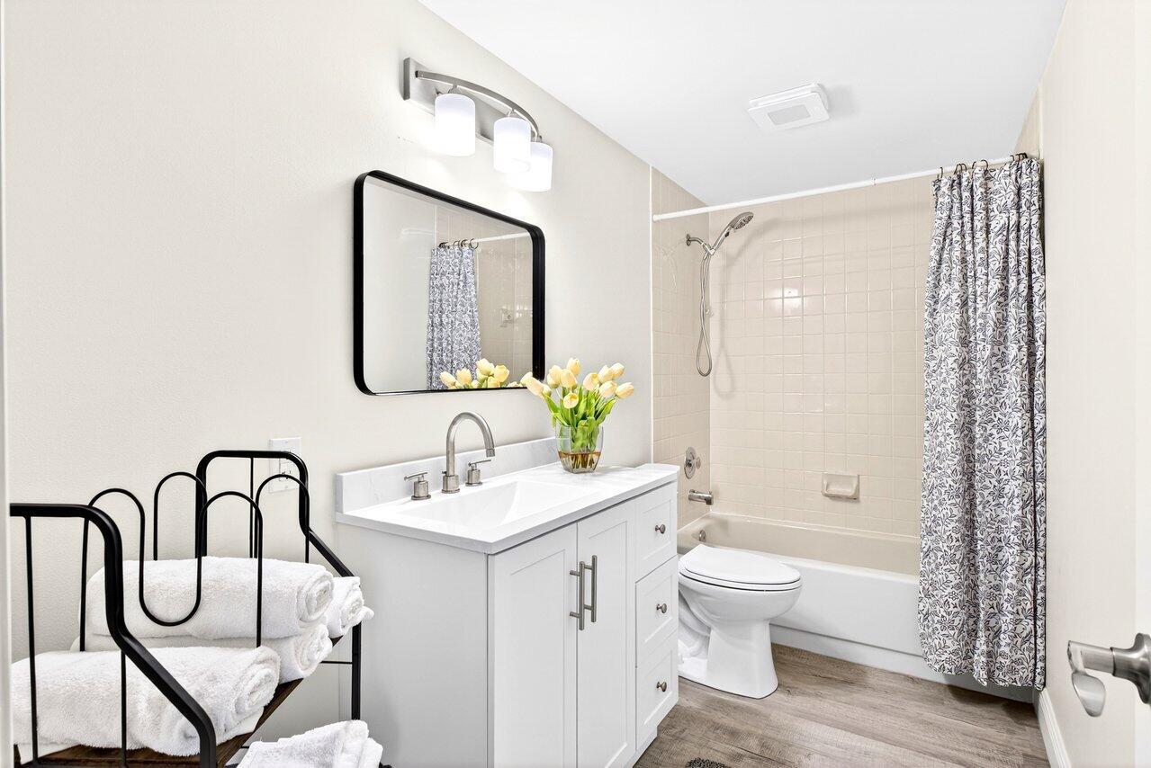 Highly sought-after Sandalwood at Boynton Beach! This all-ages, pet-friendly neighborhood offers an unbeatable convenience to shopping, dining, beaches, and PBI.This renovated 2-bedroom, 2.5-bath townhome is truly move-in ready. Both spacious bedrooms feature private en-suite baths and overlook a large, private, fenced courtyard through screened sliding impact doors--perfect for relaxing or entertaining.The open-concept layout showcases luxury vinyl plank flooring throughout, white shaker cabinets, quartz countertops, and an undermount farmhouse sink, complemented by brushed nickel accents. A complete 4-piece appliance package, updated vanities, lighting, ceiling fans, faucets, mirrors, exhaust fans, and new plumbing valves complete the fresh, modern look.The home is freshly painted, offering a neutral canvas for the new owner's personal style. Major updates include HVAC (12/2021), primary shower (2022), washer/dryer (11/2023), and additional updates completed 12/2025. Hurricane-impact sliders and front door provide peace of mind. Enjoy two assigned parking spaces directly at your front door, ample guest parking, and lake views from the upstairs, just a two-minute walk to fishing. The HOA covers exterior building insurance and maintenance, including fences, gates, landscaping, extermination, exterior paint, roofs (scheduled for 2026 replacement with no assessment), common areas, and HD cable. Community amenities include an Olympic-size heated pool, spa, picnic area, tennis, basketball, and racquetball courts (pickleball potential!), plus an on-site, responsive property manager.