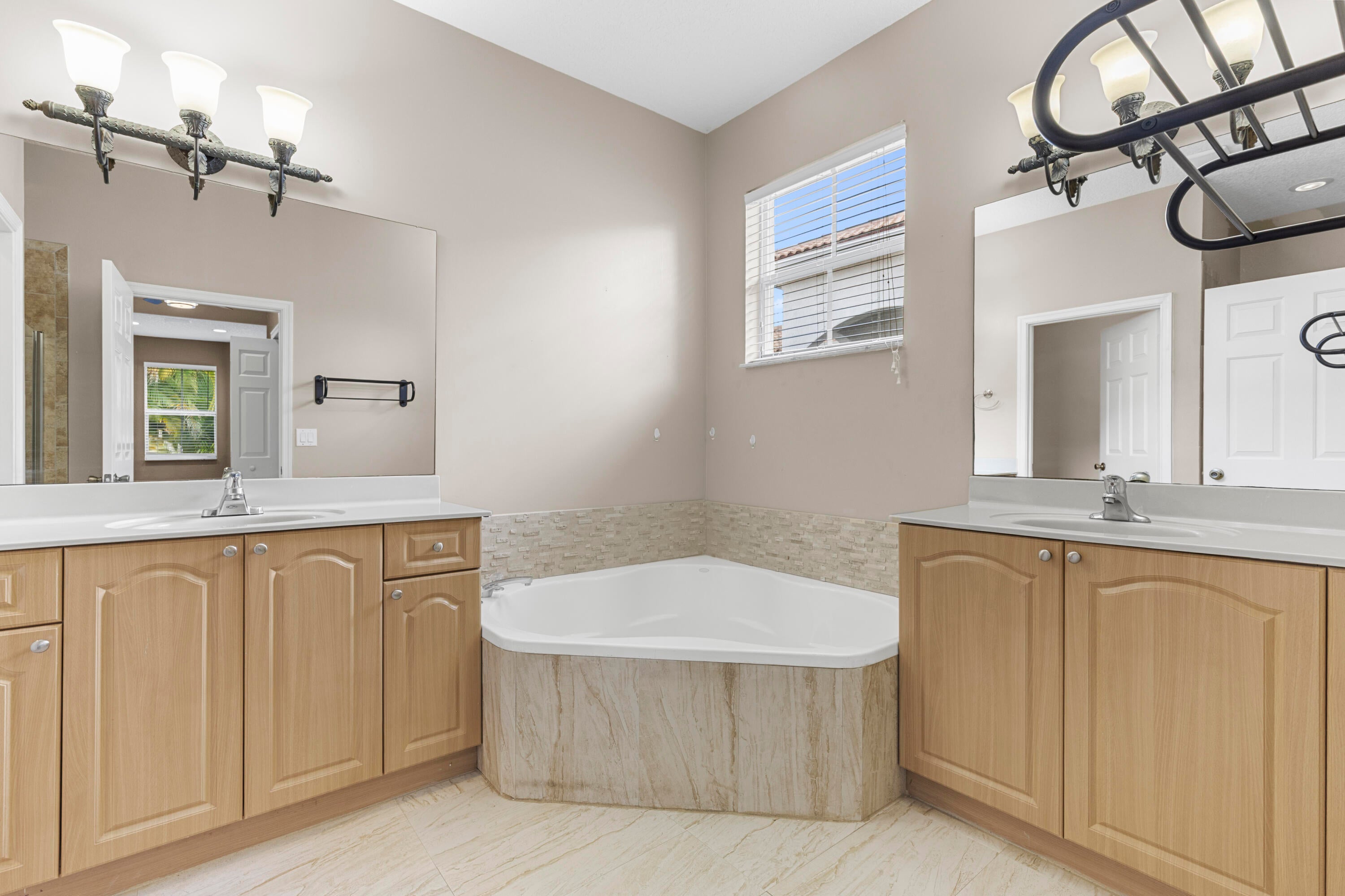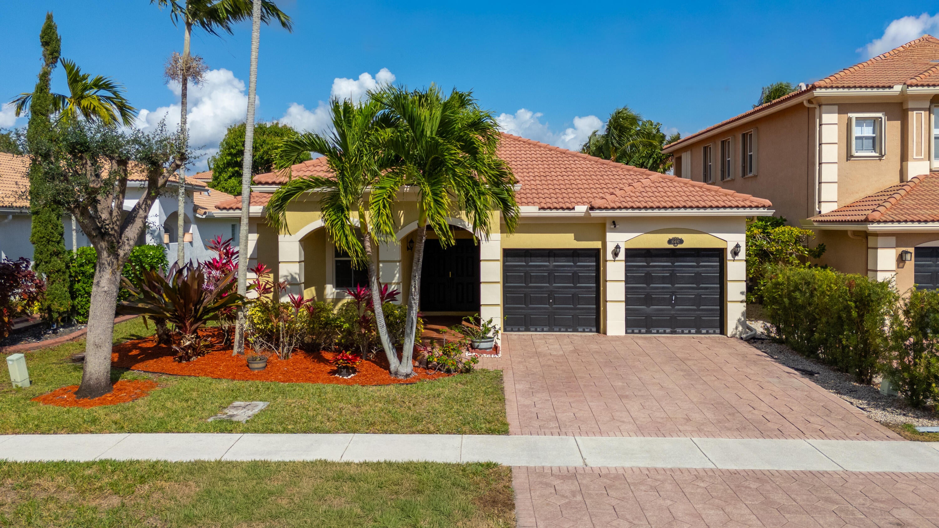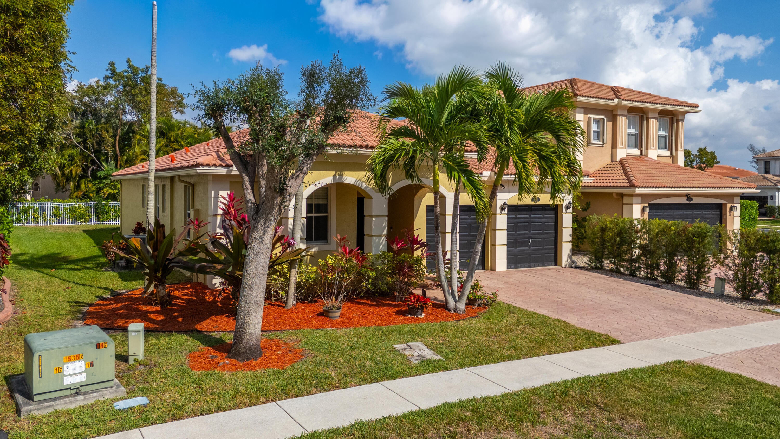 Step into one of Black Diamond's most desirable single-story layouts, boasting over 2,200 sq ft of impeccably maintained living space in prime Wellington.This 3-bedroom, 2.5-bath concrete-built home with a 2-car impact-rated garage has been meticulously cared for by the owners as a primary residence, and it shows in every detail. Step inside to discover a light, open layout with luxury vinyl flooring (2025) in all bedrooms and elegant finishes throughout. The kitchen is spotless and functional, featuring stainless steel appliances, a Waterdrop filtration system, and plenty of space for everyday living and entertaining. The spacious master suite offers a true retreat with newer tile flooring in the primary bathroom and a sleek frameless glass shower that creates a spa feel.The half bath was stylishly updated in 2021 with new tile and vanity, while both guest bedrooms and the guest bathroom were freshly painted last month. Backyard can be easily fenced, ideal for kids and pets. Major updates provide peace of mind: A/C replaced in 2018 with Nest thermostat, Natural gas water heater replaced in 2023, Exterior, front door, and garage door painted in 2023. Additional features include: Drapes & blinds included, All light fixtures included, Washer & dryer included, Ring doorbell included (interior/exterior cameras do not convey), Schlage keypad keyless. The home is also equipped with natural gas for the range, water heater, and dryer. Low HOA fees include: 24/7 manned security & patrol, High-speed internet, ADT security, Lawn care for each home includes individual yard mowing as well as irrigation water and system maintenance, all covered by the association. Access to tennis & pickleball courts, heated pool, fitness center, game room, playground, and scenic jogging/bike paths and monthly community events and activities. Prime Wellington Location: This home sits in the heart of Wellington, surrounded by A-rated schools and just minutes from shopping, dining, and entertainment. Nestled near the exciting new developments of Lotis Wellington and Tuttle Royale, you're steps from upscale restaurants, cafes, and retail all while being tucked away from the noise in a peaceful, private community. Located in the highly sought-after Black Diamond community, this home combines quality construction, thoughtful upgrades, and pride of ownership all at a price positioned strongly within the market. Schedule your private showing today.