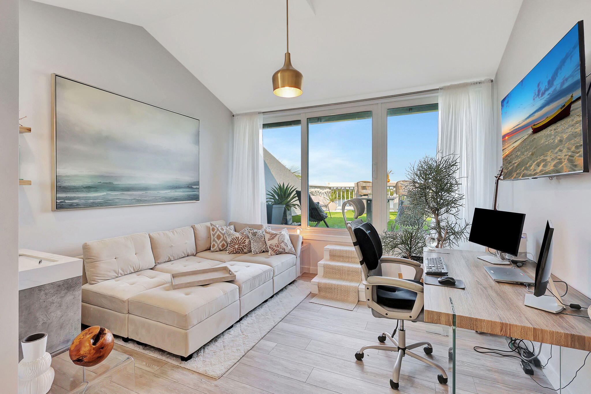 This showstopping, fully renovated riverfront townhome -- featured on HGTV's Beachfront Bargain Renovation -- is now available for lease, offering a rare opportunity to live inside a true designer showcase on North Hutchinson Island. Spanning three levels of sophisticated, turnkey living, this residence delivers jaw-dropping Intracoastal views and a lifestyle that feels straight out of a luxury travel magazine.Every inch of the home blends high style with lasting quality, from the brand-new roof to all-new impact glass and doors. The open-concept main level is pure wow-factor, centered around a gourmet kitchen with bespoke smart appliances, sleek Dolomite countertops, and a layout designed for both entertaining and effortless everyday living. Two spacious bedrooms and two beautifulTwo spacious bedrooms and two beautifully remodeled bathrooms provide spa-like comfort, while three expansive decks create your own private viewing boxes to paradise. The crown jewel? A secluded deck off the primary suite where sunrise coffees and sunset cocktails come with uninterrupted, front-row Intracoastal views. This isn't just a rental it's a fully curated waterfront lifestyle. A rare find for those who want luxury, serenity, and the feeling of being permanently on vacation... without ever checking out.