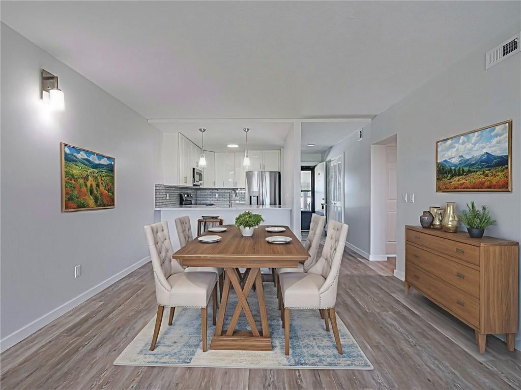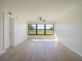 Scenic golf course views, completely remodeled. NEW: ceiling fans & light fixtures, interior doors, GE SS appliances, quartz countertops, white shaker cabinets, tiled showers & luxury vinyl flooring throughout. Enjoy your Florida quiet retreat or capitalize on as a high-demand rental in a vibrant 55+ community. Low-maintenance living w/ resort-style amenities, 2 heated pools, tennis, pickle ball & shuffleboard. Impact glass, assigned covered parking, washer & dryer included, offering comfort, convenience & an exceptional lifestyle. Great location !!! Beach is 15 minutes drive. Near shopping.