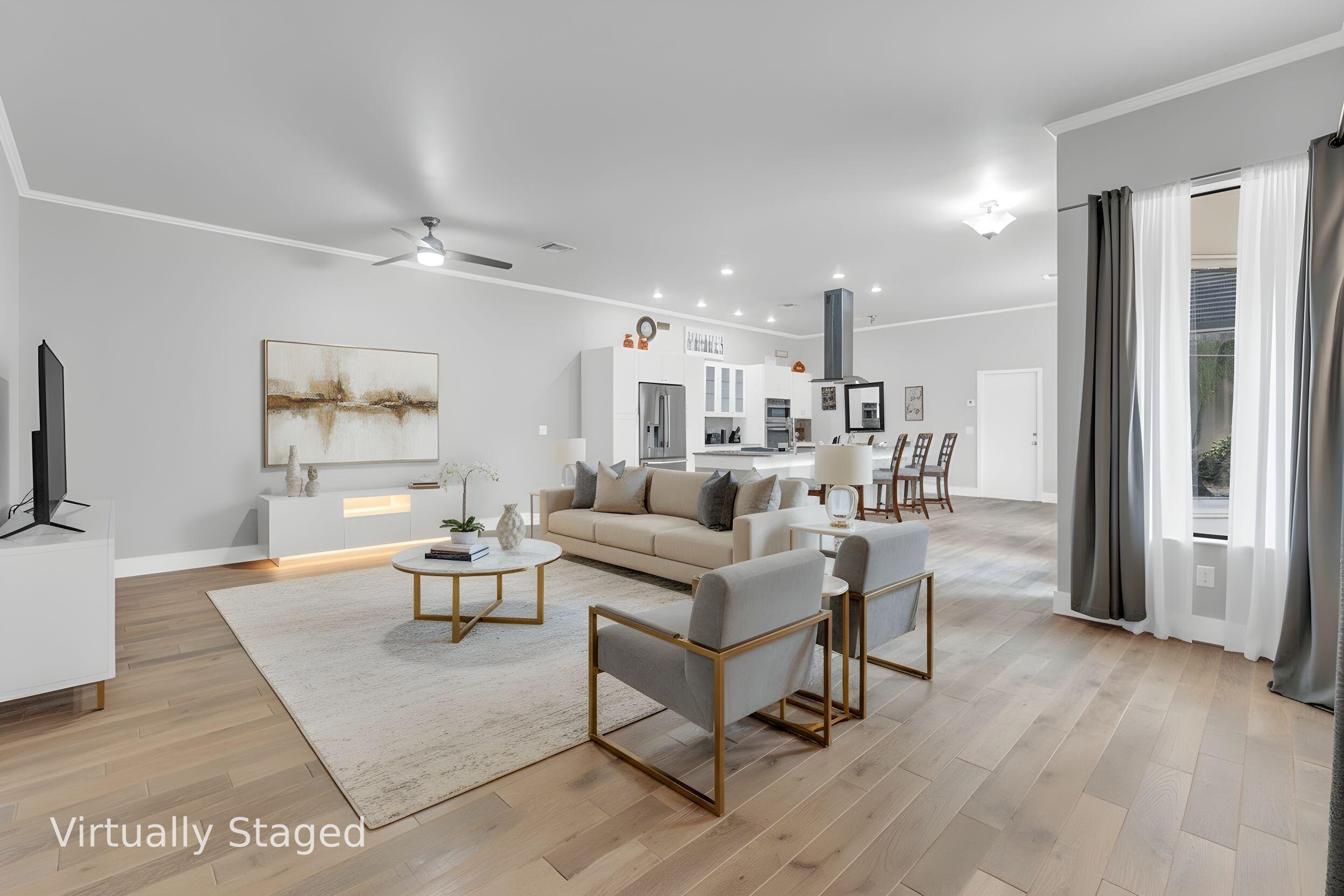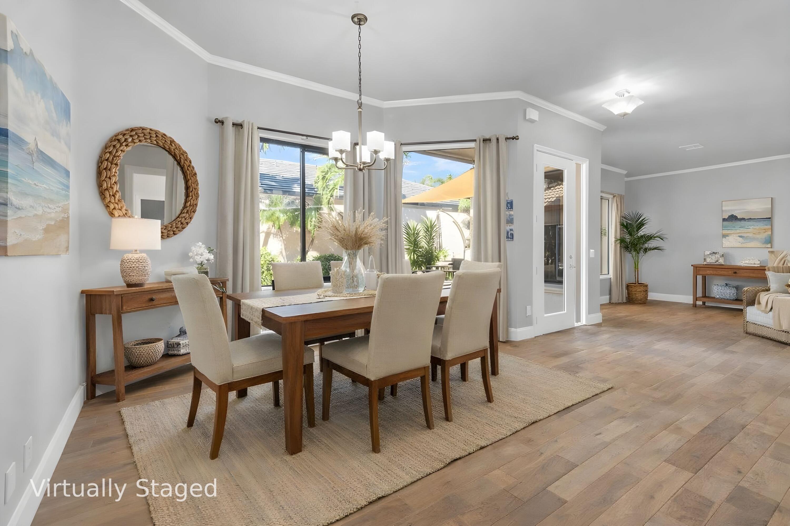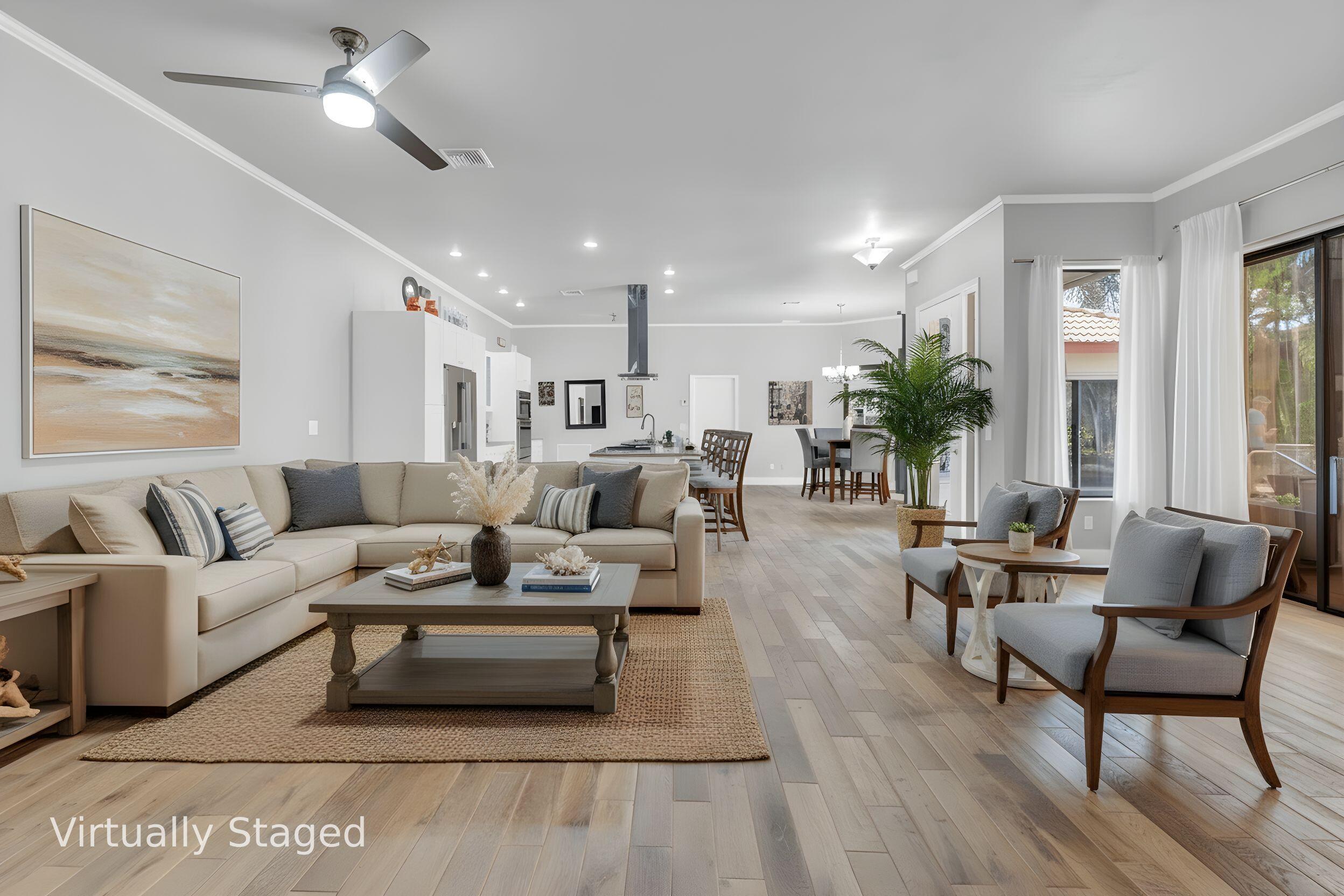Welcome home to this beautifully updated pool residence in the gated community of Citrus Glen. Some rooms were Virtually staged. This open-concept home features wood flooring throughout and a renovated kitchen with new appliances, perfect for modern living and entertaining. The split floor plan offers privacy, with a spacious primary suite featuring walk-in closets and an in-suite bath with dual vanities. One guest bedroom overlooks the pool, with a guest bath adjoining the third bedroom.Enjoy year-round relax, offering serene views of the pool. The fully fenced backyard and side yard provide ample outdoor space for entertaining, pets, or play.Recent upgrades include a new AC (2024) and water heater (2022). Located in a desirable gated community. Cable, internet, front lawn on HOA.