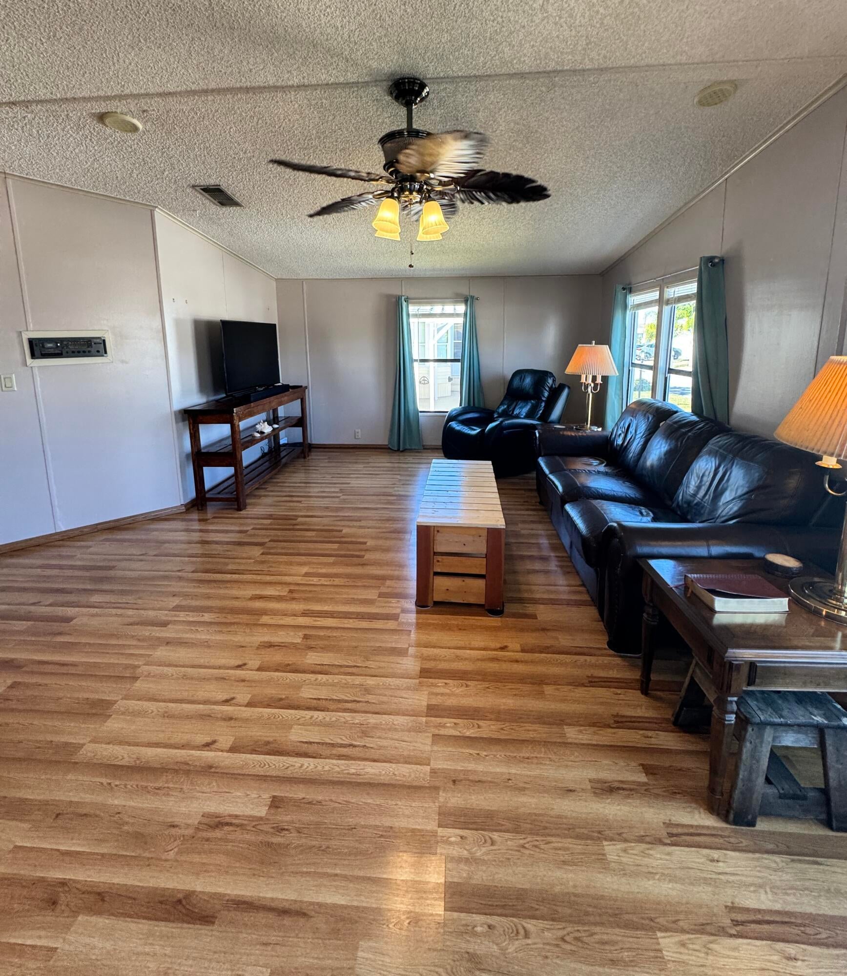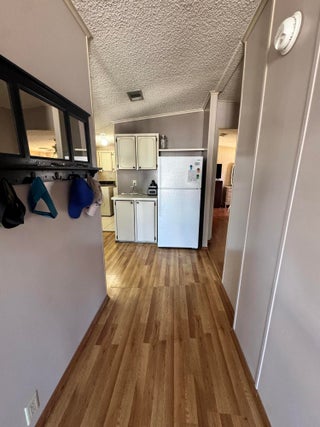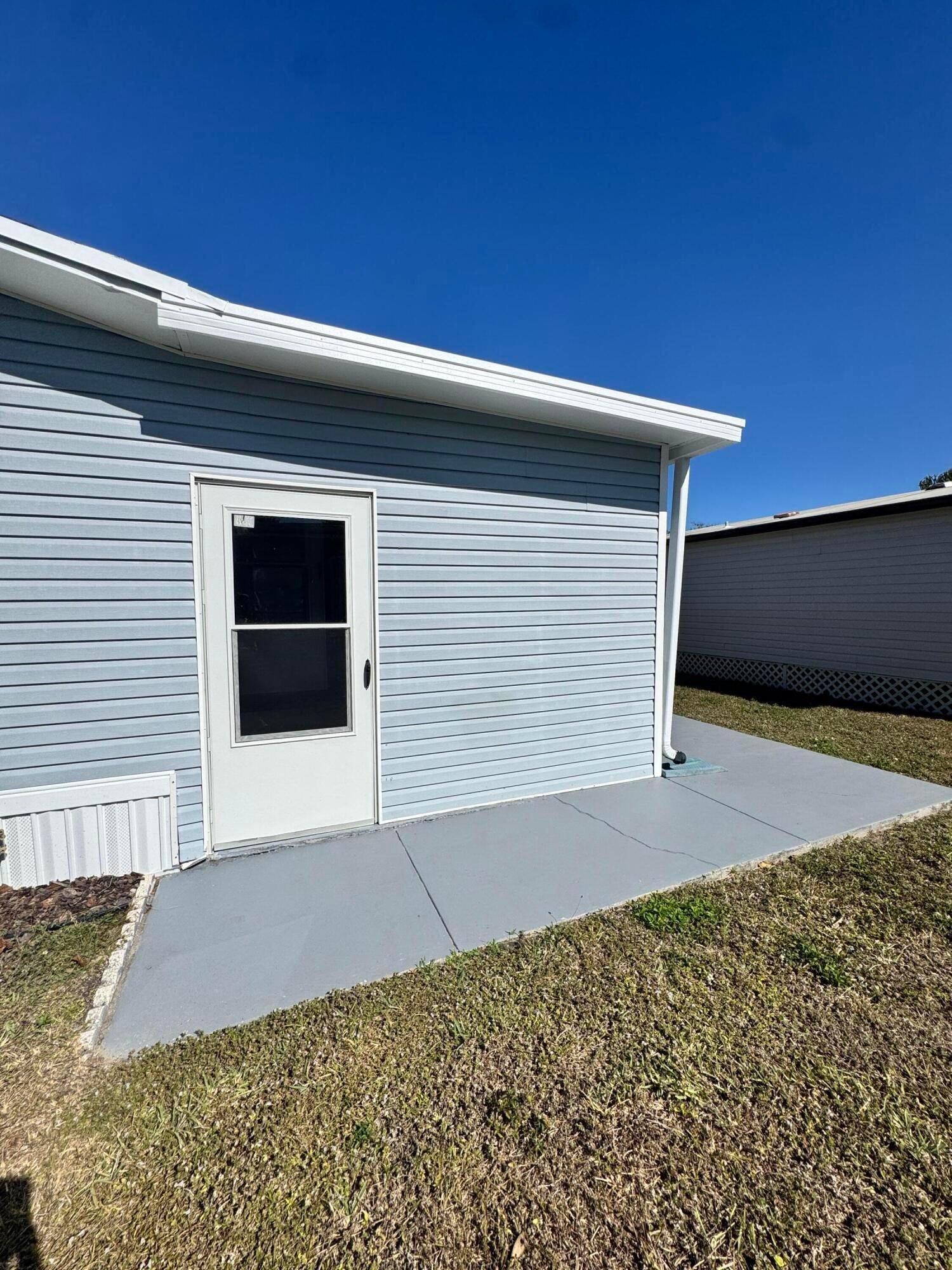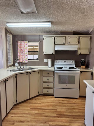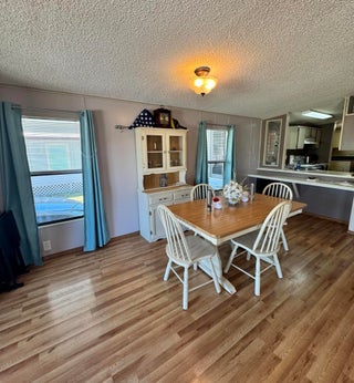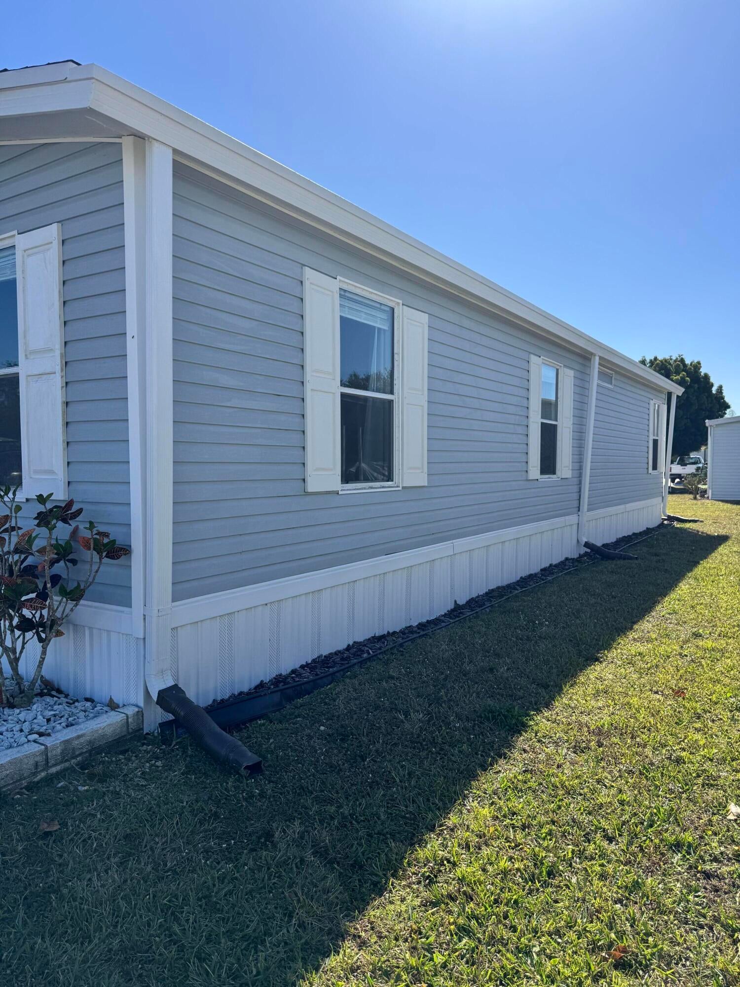 Well-maintained 2-bedroom, 2-bath home in the desirable 55+ Spanish Lakes Fairways community. This home is very close to the park entrance and sits on a quiet street. The home has no carpet and laminate floors throughout. This home is being sold furnished. The home's roof was replaced in 2021, the A/C in 2021, and the vapor barrier in 2021. The kitchen stove is 2024. The home has a lovely lanai, perfect for morning coffee or evening cocktails. Lania has windows, and the room has a working air conditioning unit. Great for the summer months. Lawn care, trash removal and golf included in lot rent.18-hole golf course,2 pools, tennis, pickleball, bocce ball, shuffleboard, and much more. Must See!