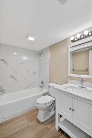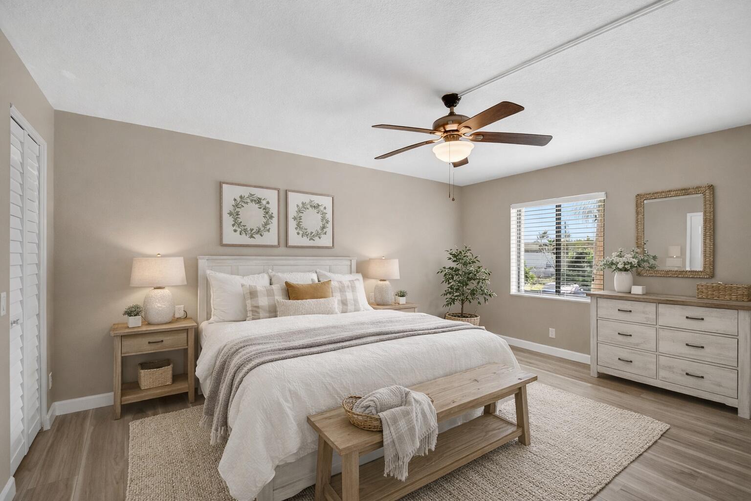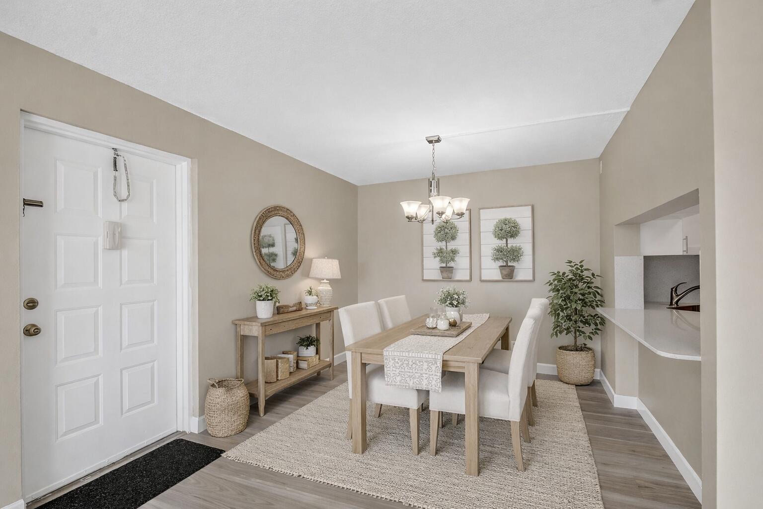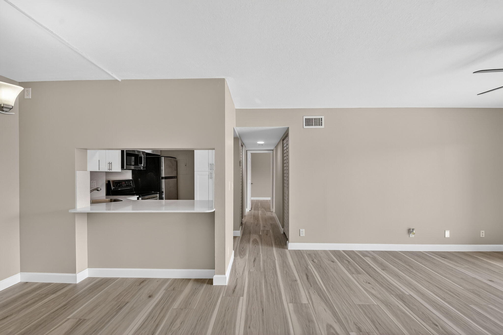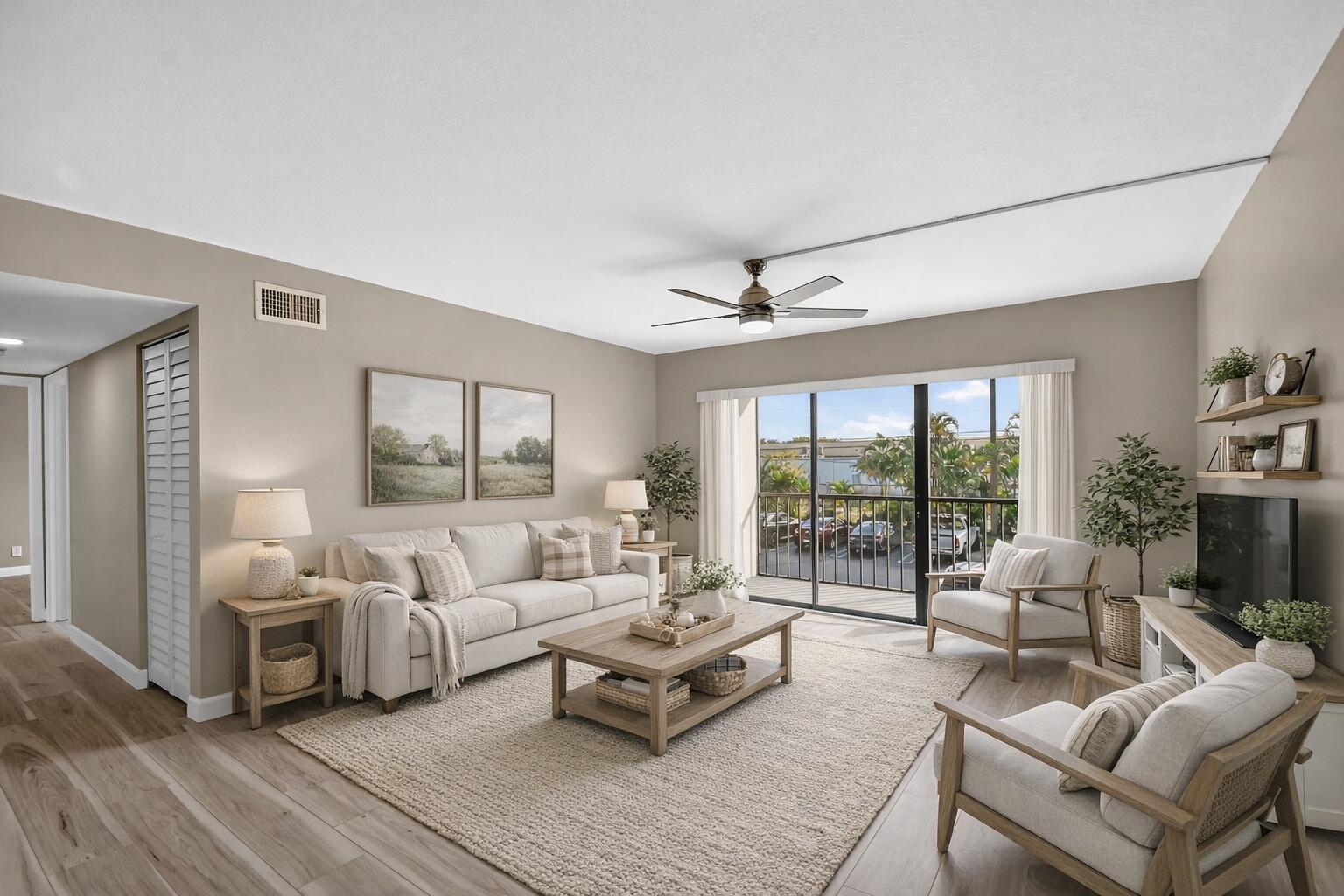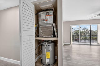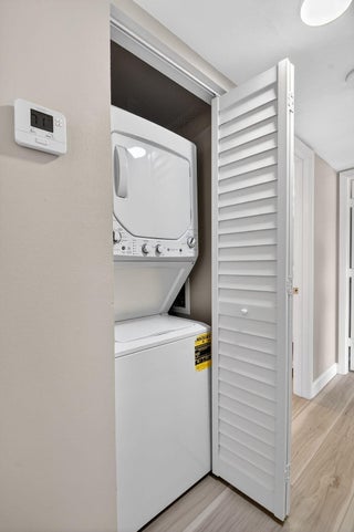 Welcome home to this beautifully renovated 2-bedroom, 2-bath condo where modern style meets everyday comfort. This complete remodel features wide plank luxury vinyl flooring throughout, brand-new kitchen and bathrooms with white cabinetry, sleek quartz countertops, and a fresh, clean aesthetic that feels both stylish and timeless. Large sliding glass doors flood the living space with natural light, creating a bright and inviting atmosphere. Sliders and windows and are equipped with accordion hurricane shutters for added protection and peace of mind. This condo includes a washer and dryer and additional storage located just outside the unit, adding everyday convenience. Additional upgrades include a new hot water tank and new A/C, offering peace of mind and energy efficiency. Enjoy thebenefits of a low HOA, a no-investor community, and a convenient location close to shopping, dining, and everyday essentials. Completely move-in readyjust unpack and enjoy.