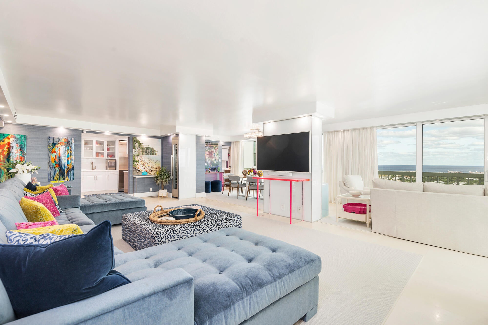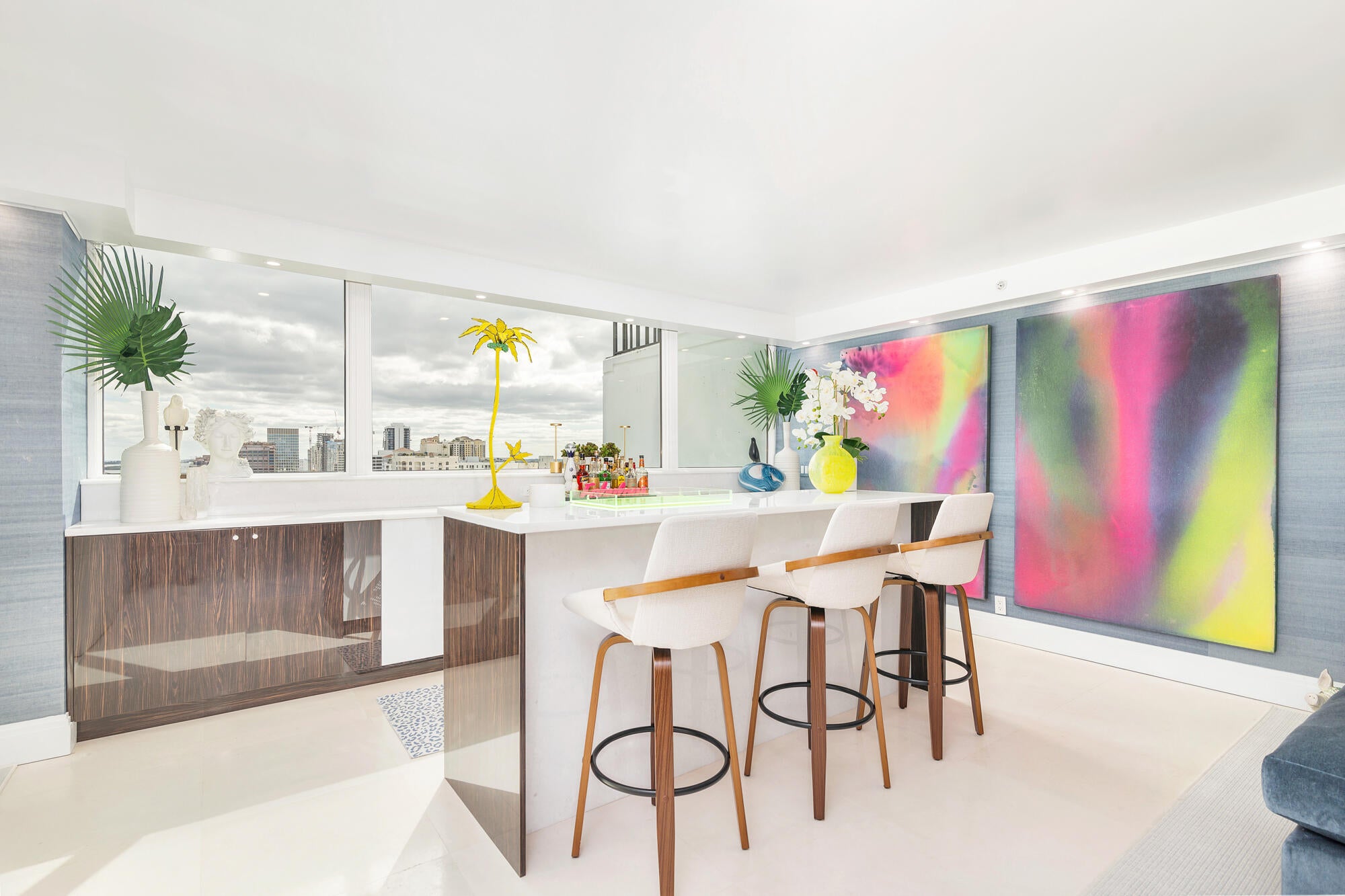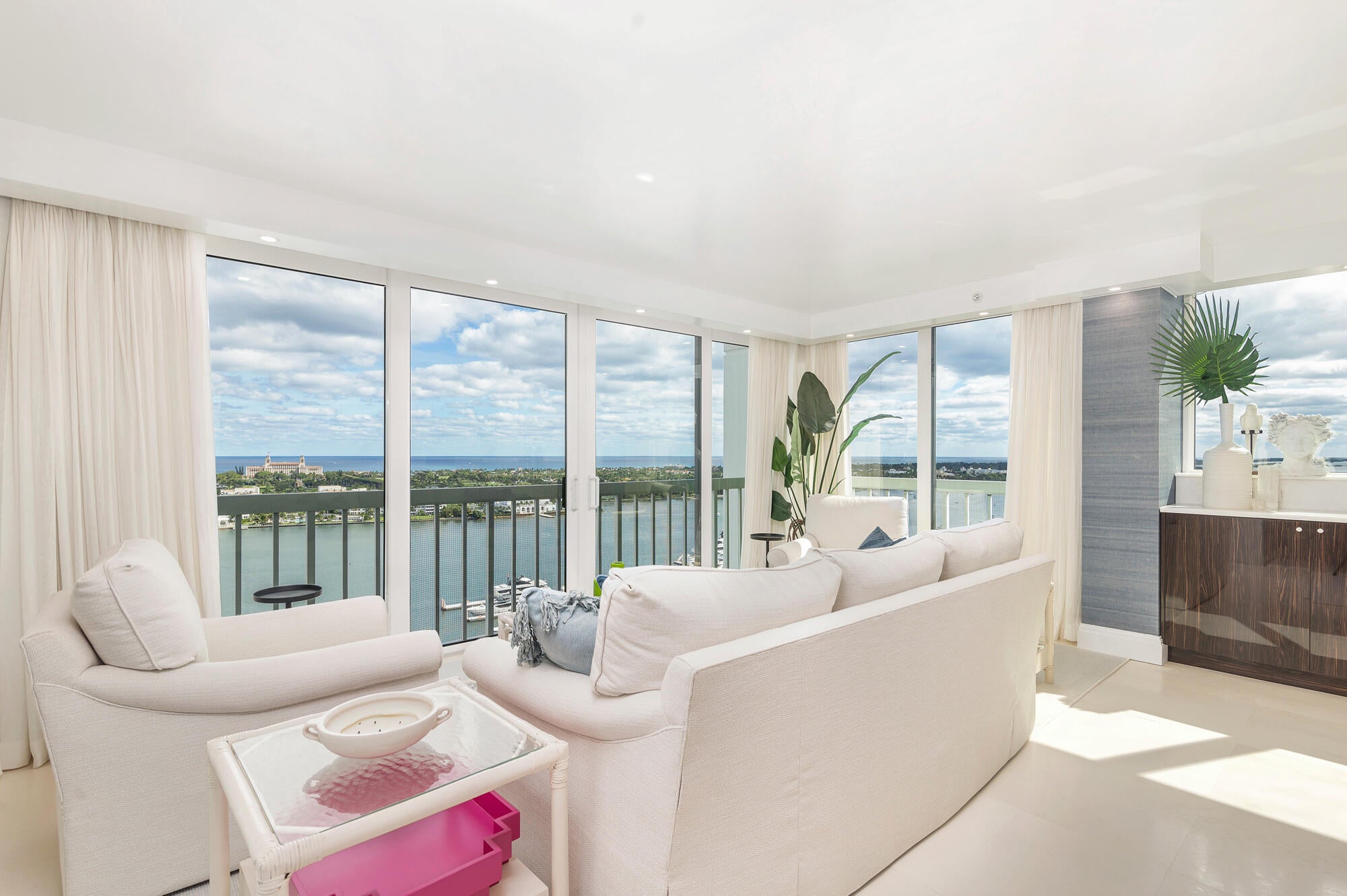 Located in one of only four direct waterfront buildings in downtown West Palm Beach, this penthouse offers sweeping, mesmerizing water views from every room, including the Intracoastal, ocean, marina and city vistas. The residence has undergone a complete high-end renovation, featuring a quartz entertaining bar with under-mount LED lighting, a modern kitchen, Thermador wine refrigerator, multiple living and entertaining areas, spacious bedrooms, and a large walk-in closet in the primary suite. Ideally located near the North Bridge, Royal Poinciana Plaza, Palm Harbor Marina, shopping, and dining. Includes two garage parking spaces. Full-service, pet-friendly building with 24/7 doorman and security, valet parking, swimming pool, fitness center, tennis, and pickle-ball courts.DISCLAIMER: The written and verbal information provided including but not limited to prices, measurements, square footages, lot sizes, calculations and statistics have been obtained and conveyed from third parties such as the applicable Multiple Listing Service, public records as well as other sources. All information including that produced by the Sellers or Listing Company are subject to errors, omissions or changes without notice and should be independently verified by any prospect for the purchase of a Property. The Sellers and Listing Company expressly disclaim any warranty or representation regarding all information. Prospective purchasers' use of this or any written and verbal information is acknowledgement of this disclaimer and that Prospects shall perform their own due diligence. Prospective purchasers shall not rely on any written or verbal information provided when entering a contract for sale and purchase. Some affiliations may not be applicable to certain geographic areas. Copyright 2023 Listing Company. All Rights Reserved.