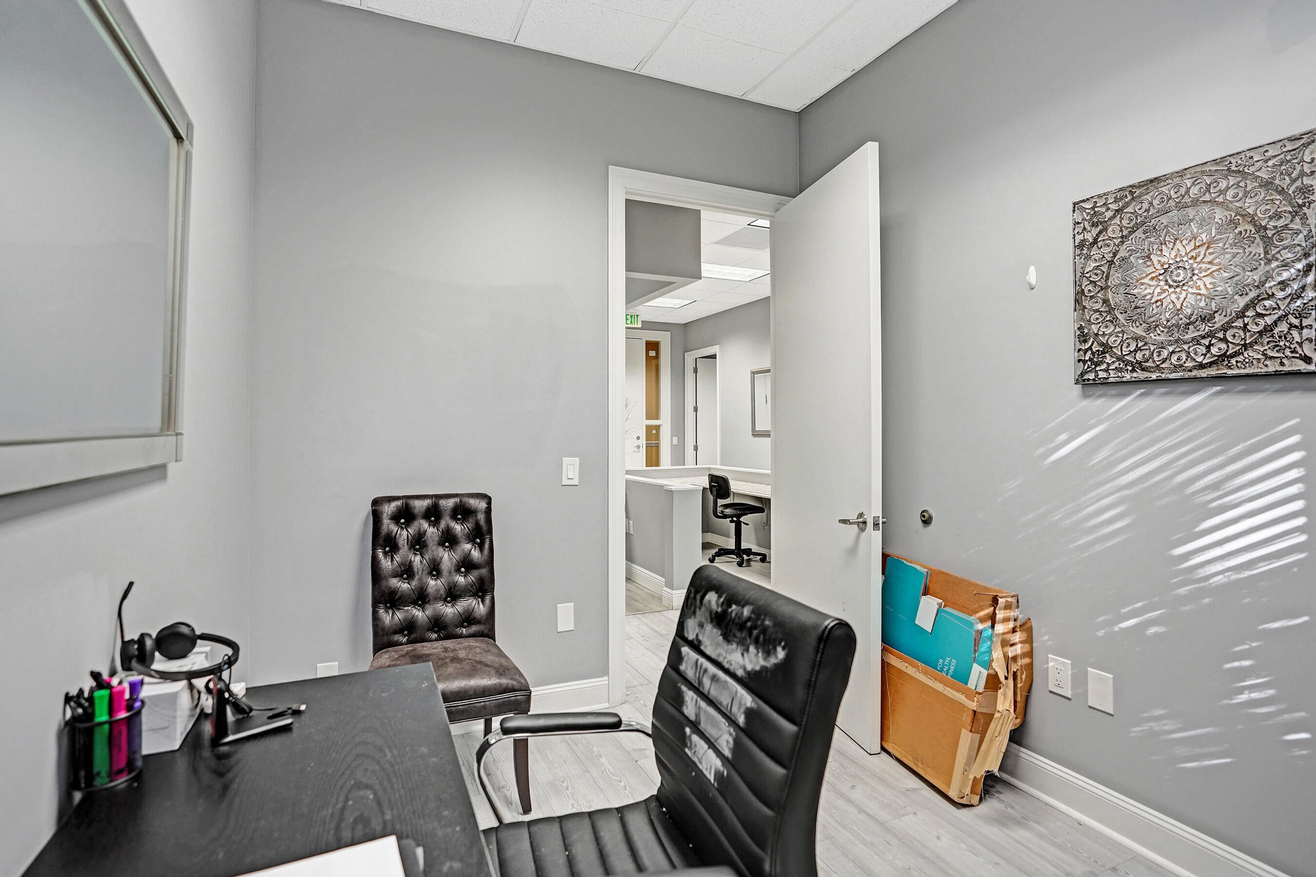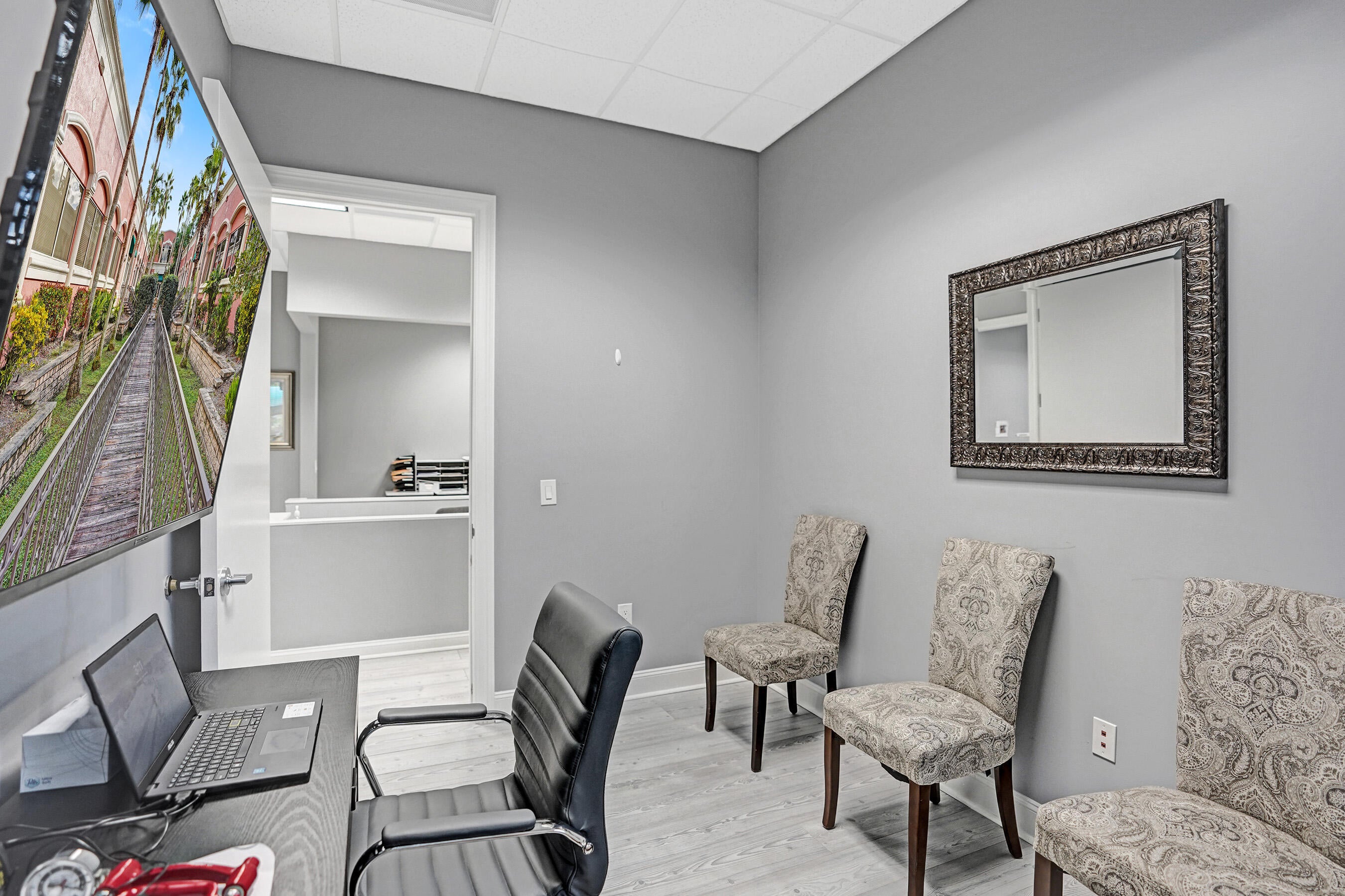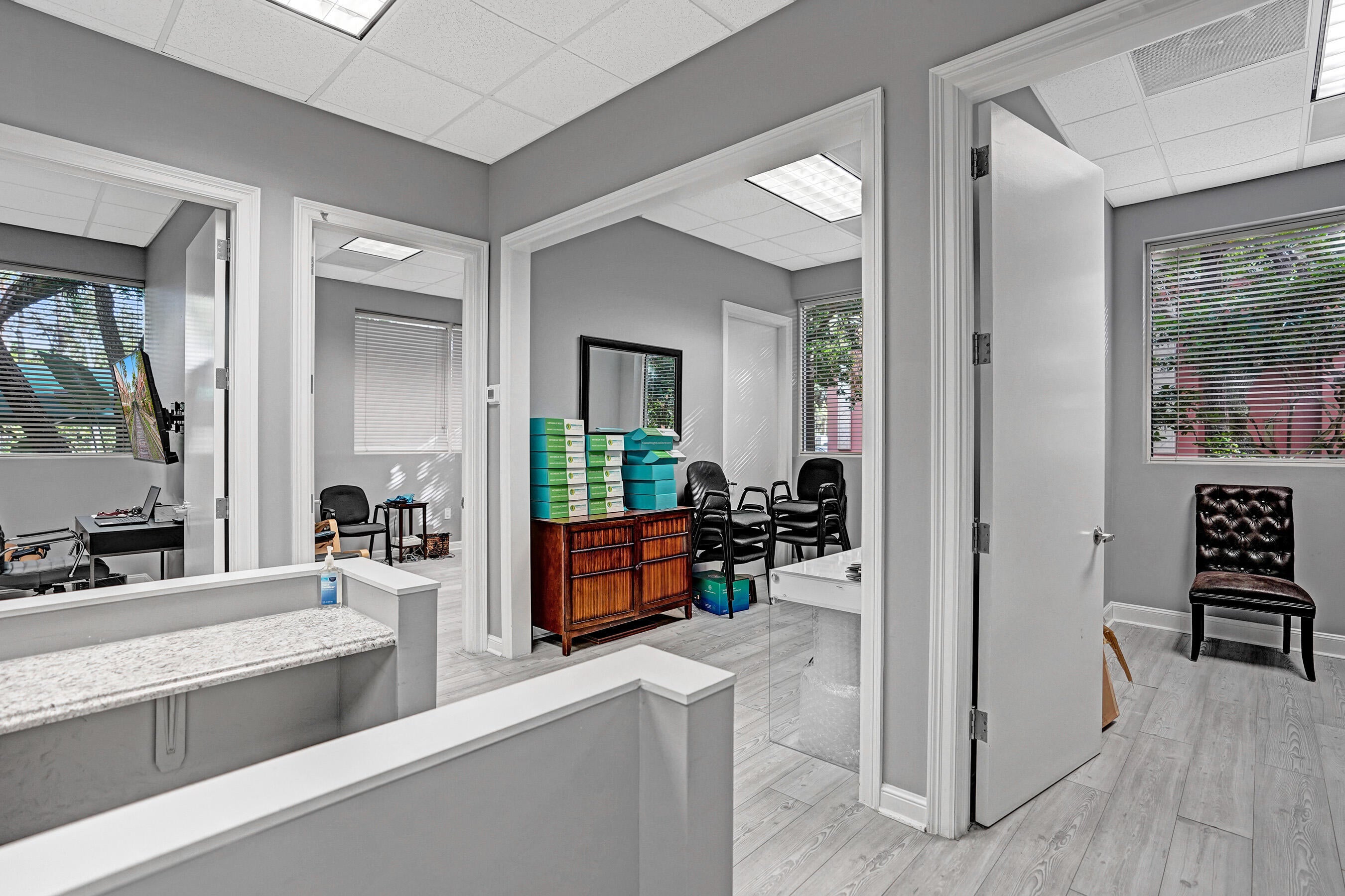 Boutique Professional or Medical Office Space available for immediate Sublease.Only $3690 per month !!! This fully built-out, turnkey medical or professional office suite at The Addison of Delray Beach, features 4 private offices with additional open space or conference room, plus dedicated reception desk, waiting area, & sink station. The space has been improved with updated flooring, lighting, doors, paint, & trim. The suite includes one (1) assigned and covered parking space, along with 100s of additional employee & visitor parking spaces. Restrooms and mailboxes are just steps down the hall and the campus grounds are kept in excellent condition (by onsite mgmt.) with scenic waiting areas, appropriate lighting, walkways and seating areas.Great for any small business.