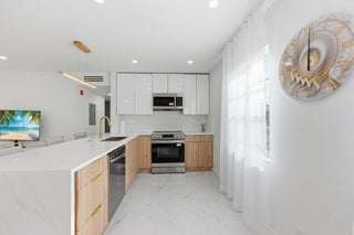 Welcome to 618 Normandy M - a beautifully renovated 2nd-floor condo in the highly sought-after 55+ Kings Point community. This stunning unit features porcelain floors in living areas, engineered laminate in bedrooms, and an open, oversized designer kitchen with extra storage, stainless steel appliances, and recessed lighting. Both bathrooms are fully remodeled with modern showers, and the unit includes new permitted electrical panel, AC (2020), and a new washer & dryer. Enjoy peaceful garden views and resort-style amenities including golf, tennis, pickleball, multiple clubhouses, indoor/outdoor pools, and a courtesy bus to shopping and dining.