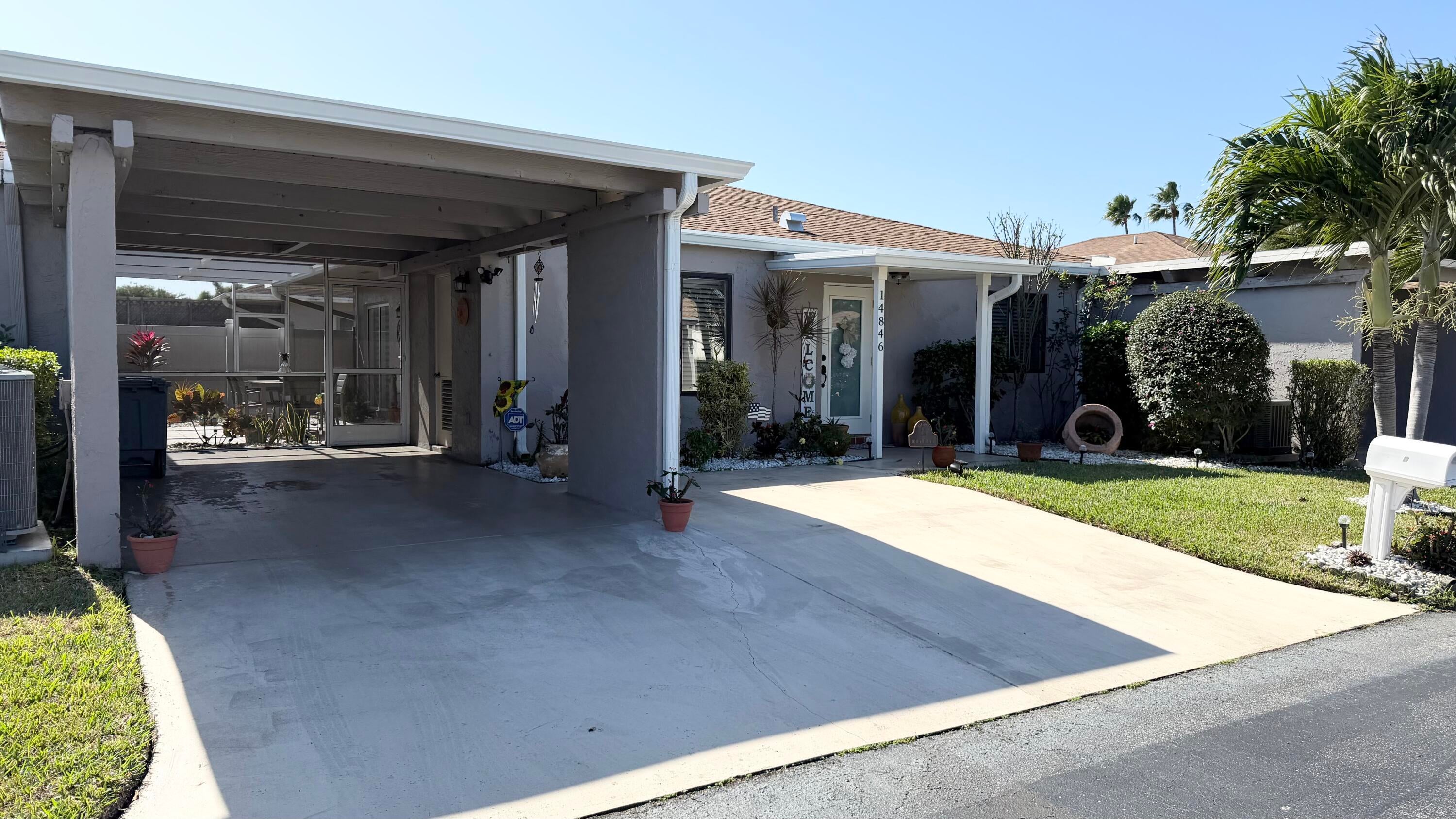 Owner is flexible and will consider a 6-month lease or annual rental, offered furnished, partially furnished, or unfurnished to suit tenant needs. This beautifully renovated villa-style residence is light-filled and fully tiled throughout with no carpet, featuring custom window treatments and a clean, modern aesthetic. The spacious living room flows into a dining area and eat-in kitchen, creating a comfortable and functional layout. The primary suite offers a walk-in closet and updated en-suite bath, while the second bedroom is ideal as a guest room, TV room, or home office. A full guest bath and private in-unit laundry complete the interior. The home also includes a private driveway, covered carport, and screened-in patio/lanai. Located in the highly sought-after 55+ Camelot Village,just one minute to Atlantic Ave and surrounded by shopping, dining, medical facilities, clubhouse, pool, fitness, tennis, and sidewalks.