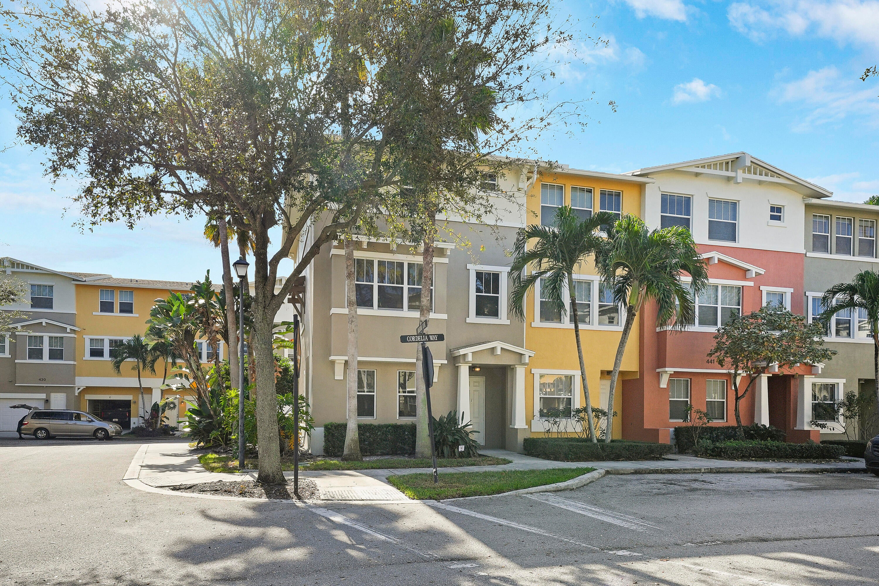 Beautifully updated CitySide End Unit residence featuring 4 bedrooms, 3.5 baths, and a 2-car garage. The ground level offers a private bedroom with a full bath--ideal for a home office, guest suite, or separate living space. The main level showcases an oversized living area, dining space, and a well-appointed kitchen with new refrigerator and dishwasher, plus a convenient high-top seating area.The third level features a spacious primary suite with a walk-in closet and en-suite bath with dual vanities, along with two additional bedrooms, a full bath, and a laundry room with new washer and dryer. Recent upgrades include new carpet, new water heater, and new window treatments.Community amenities include a heated pool, BBQ and patio area, 24-hour fitness center with complimentaryclasses and yoga, clubhouse with kitchen, running track, and 24-hour manned gated security. Ideally located near I-95, Palm Beach Outlets, Downtown West Palm Beach, and the airport.